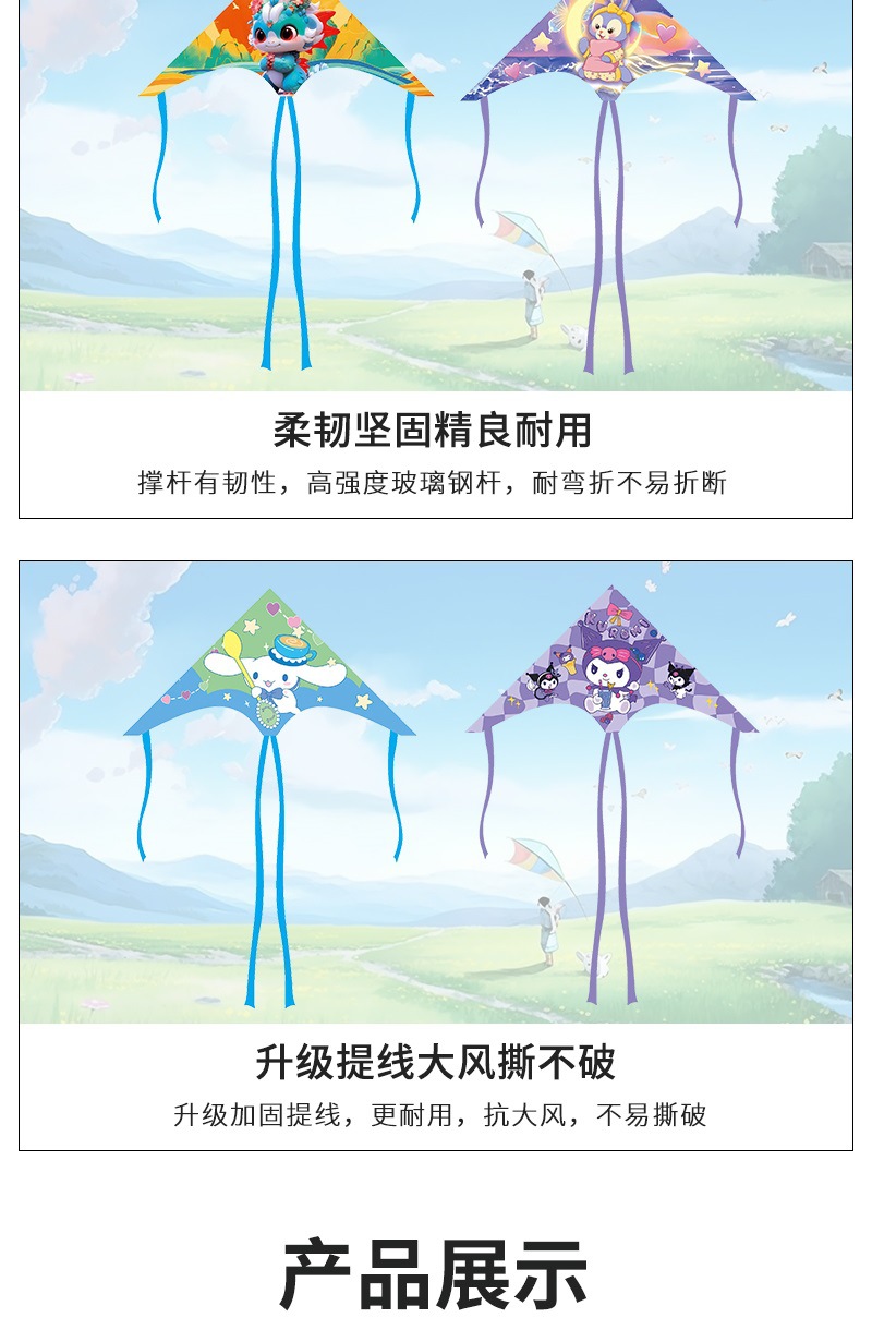 1.4米小弯边风筝 景区公园地摊儿童潍坊风筝初学者易飞卡通小风筝