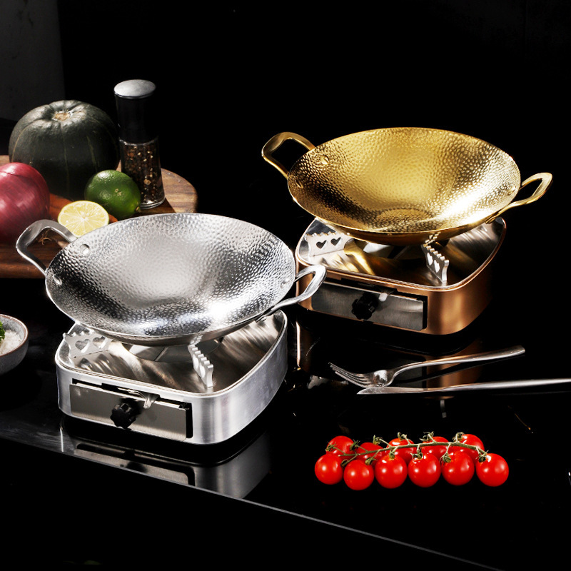 锤纹双耳商用加厚不锈钢干锅酒吧鼎海鲜安锅创意酒精炉专用锅