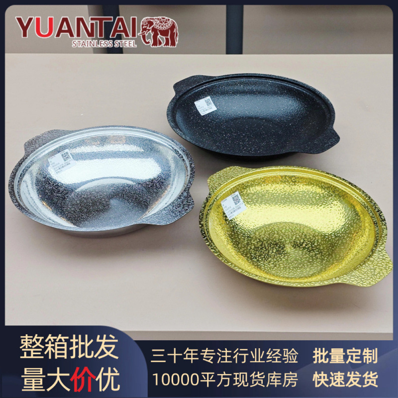 锤纹锅盖干锅不锈钢锅盖加厚金色煎锅商用酒精炉寿喜烧平底海鲜盘