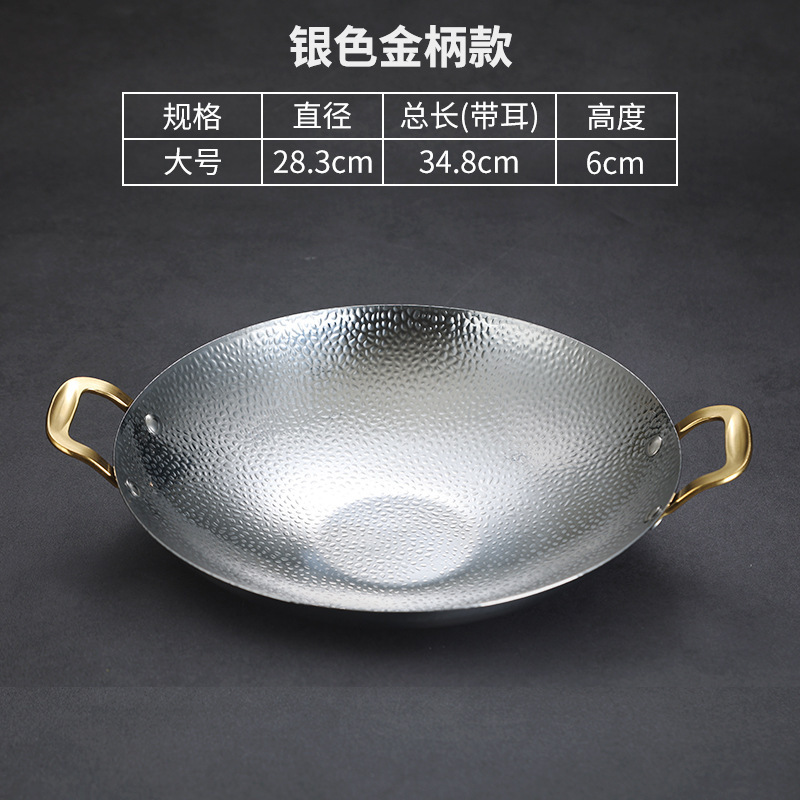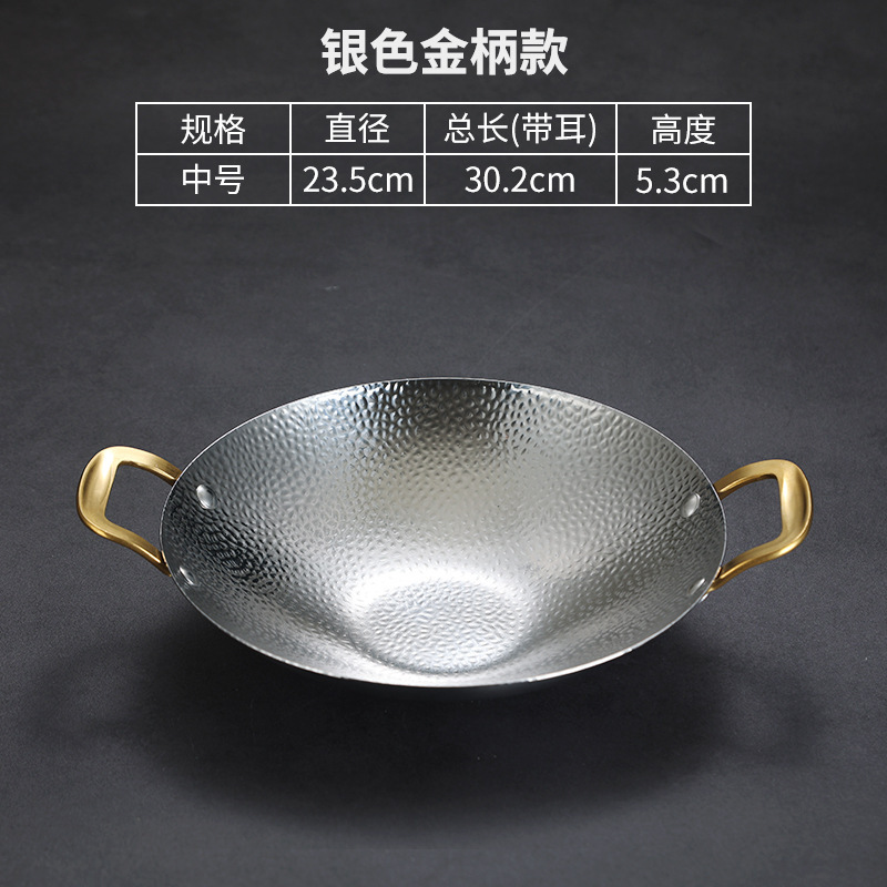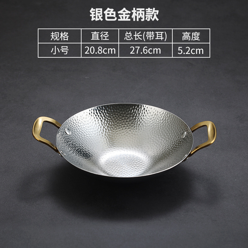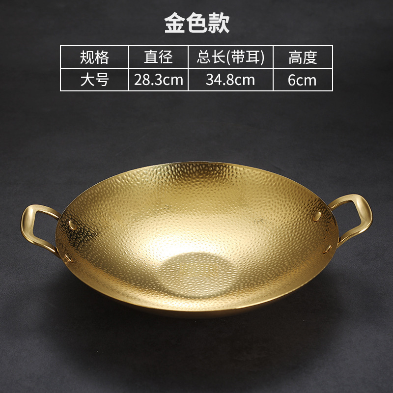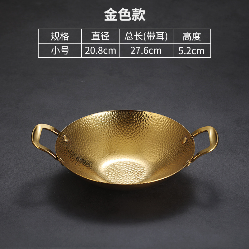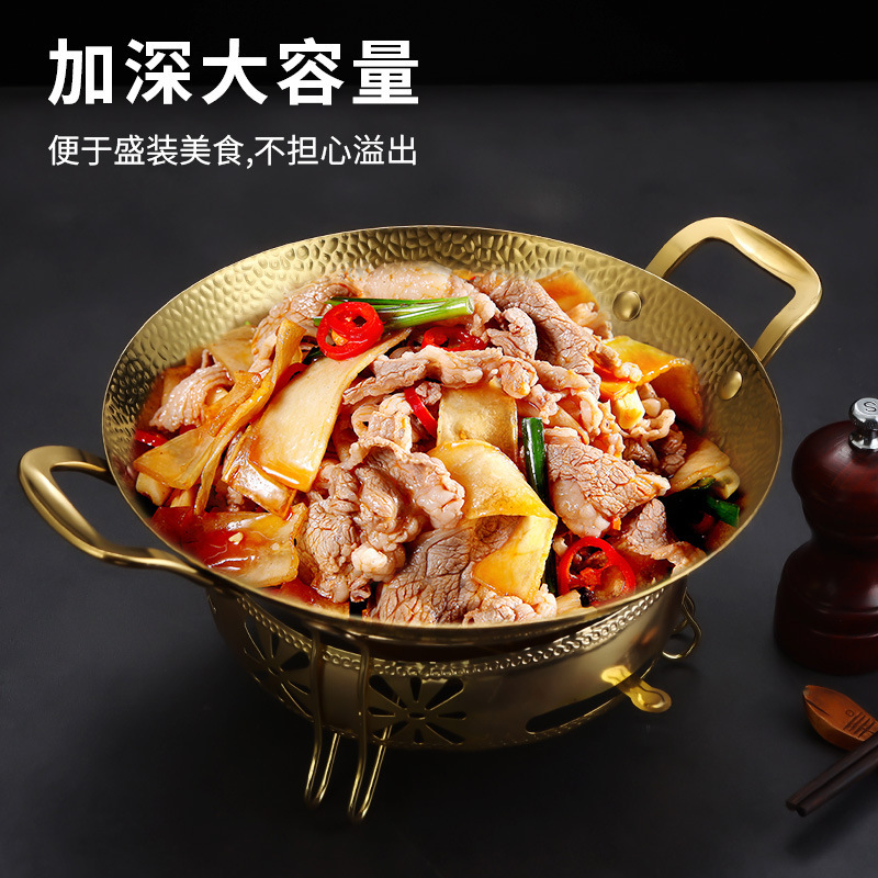 锤纹干锅盘小火锅锅仔酒精炉专用锅金色双耳酒吧鼎商用海鲜锅炉