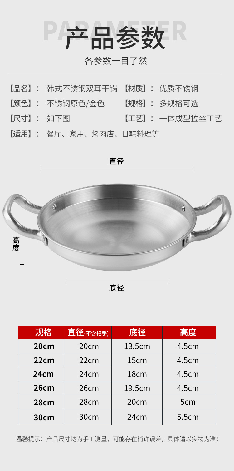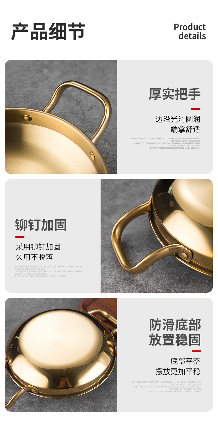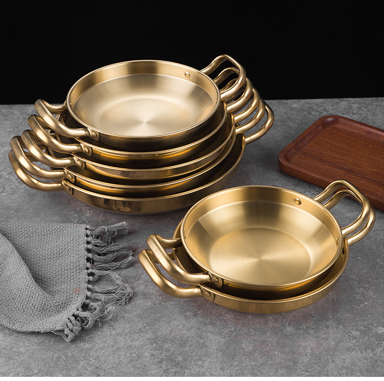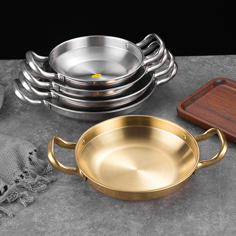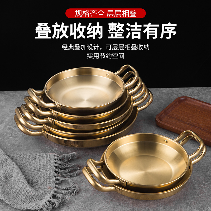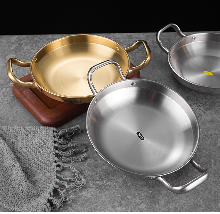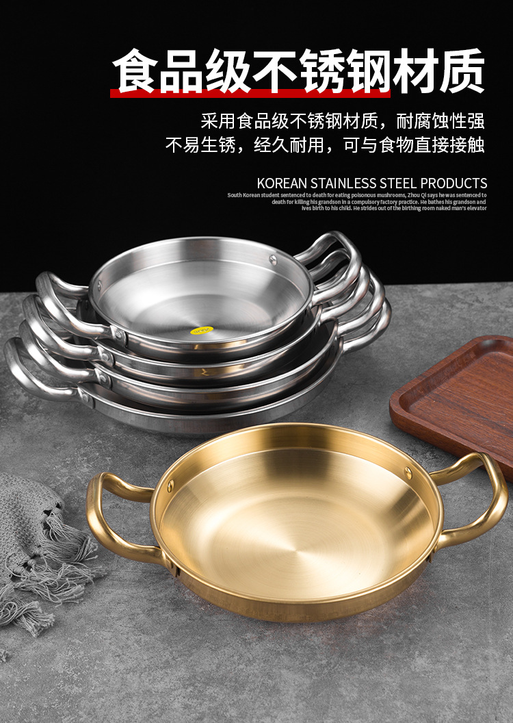 不锈钢港式干锅平底酒精炉浅干锅盆海鲜用炸鸡盘金色韩式战术火锅