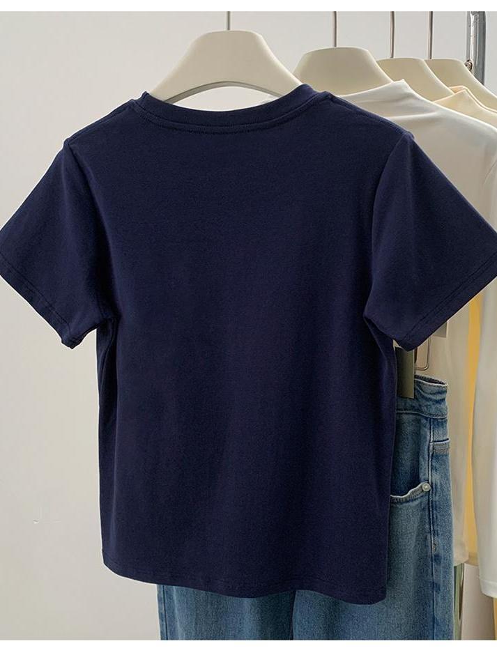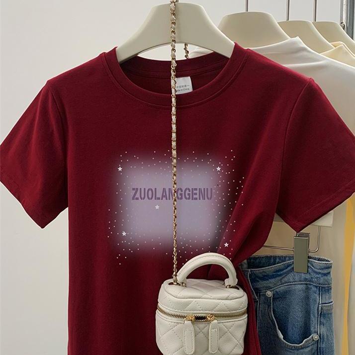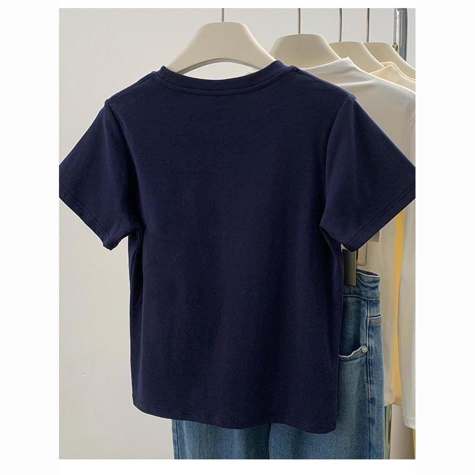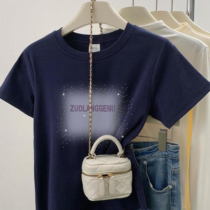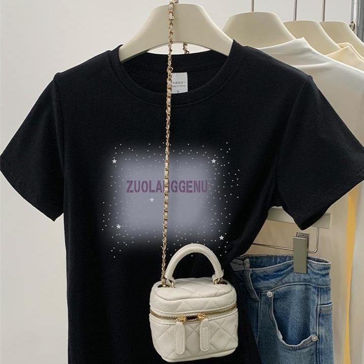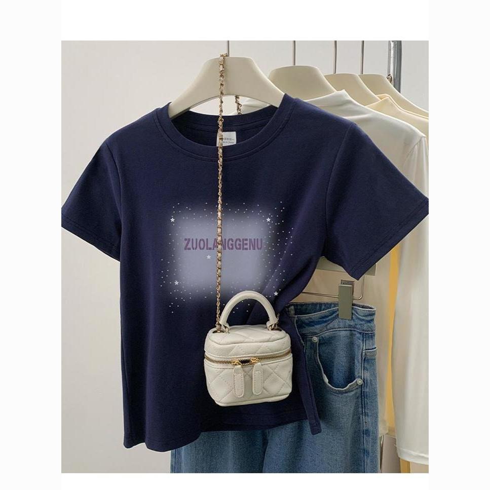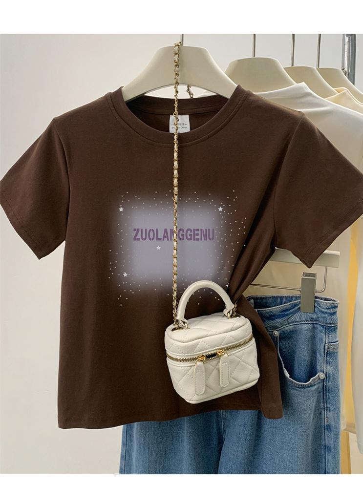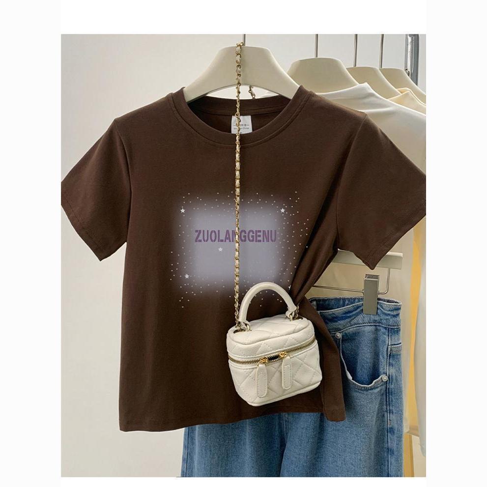 品牌外贸剪标尾单专柜撤回_不起球新款短袖女t恤圆领字母印花上衣