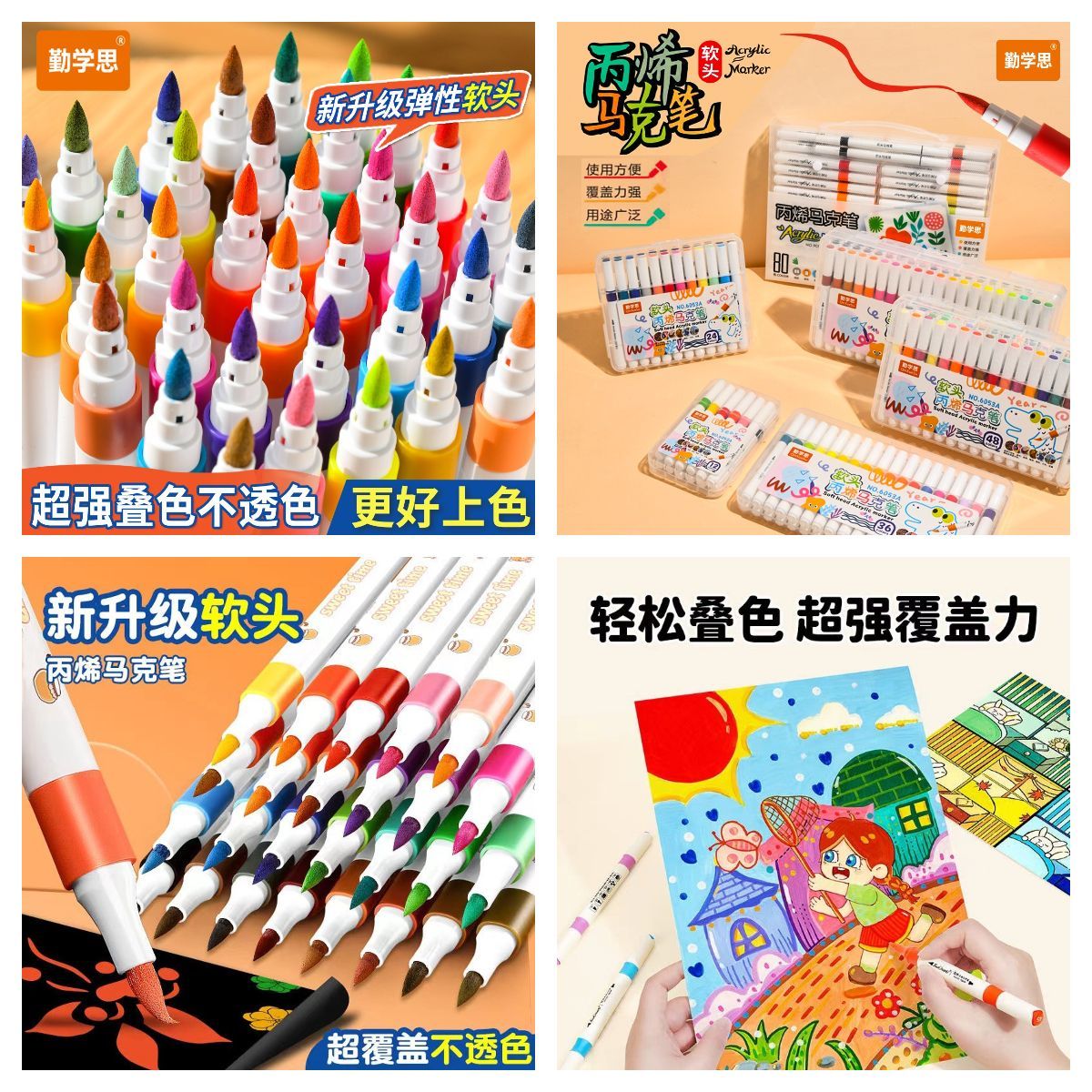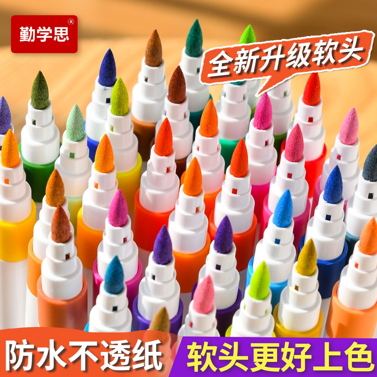 软头正版丙烯马克笔不透纸可叠色儿童学生专用美术24色可水洗彩笔