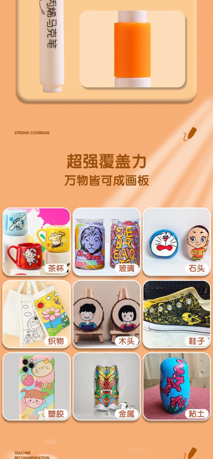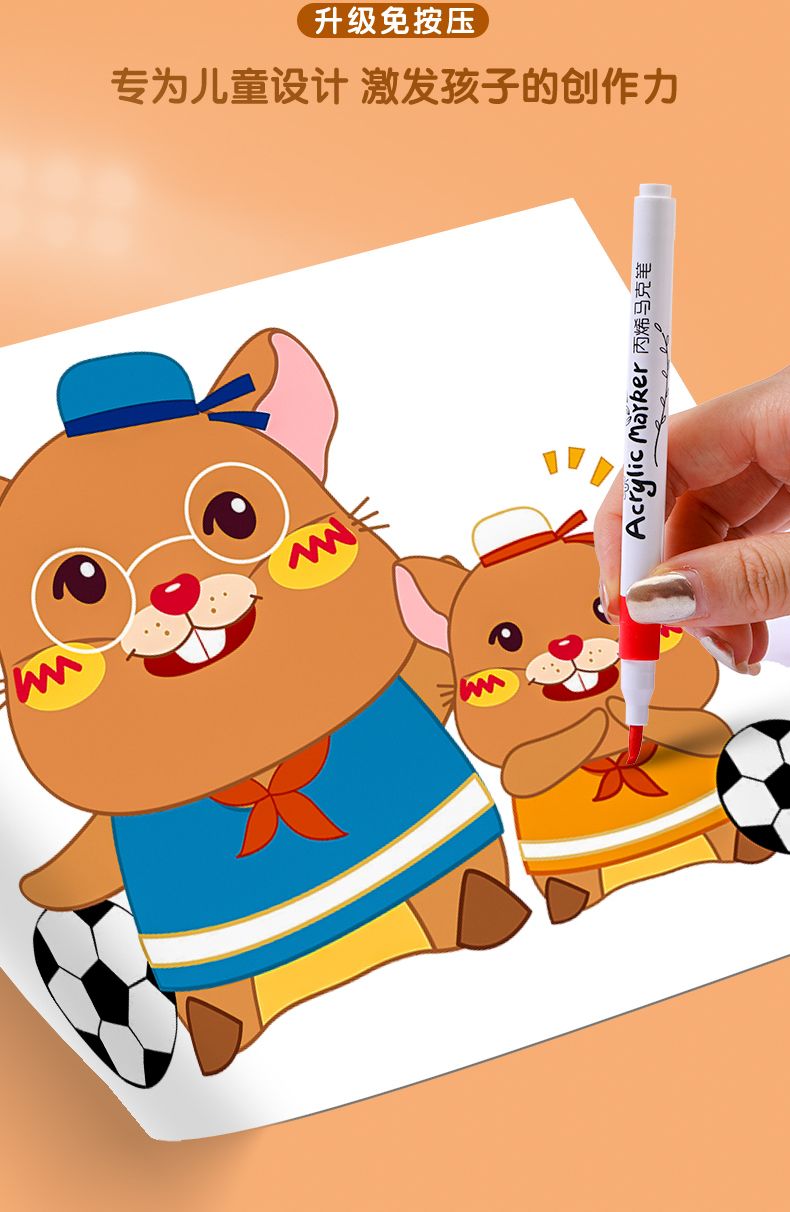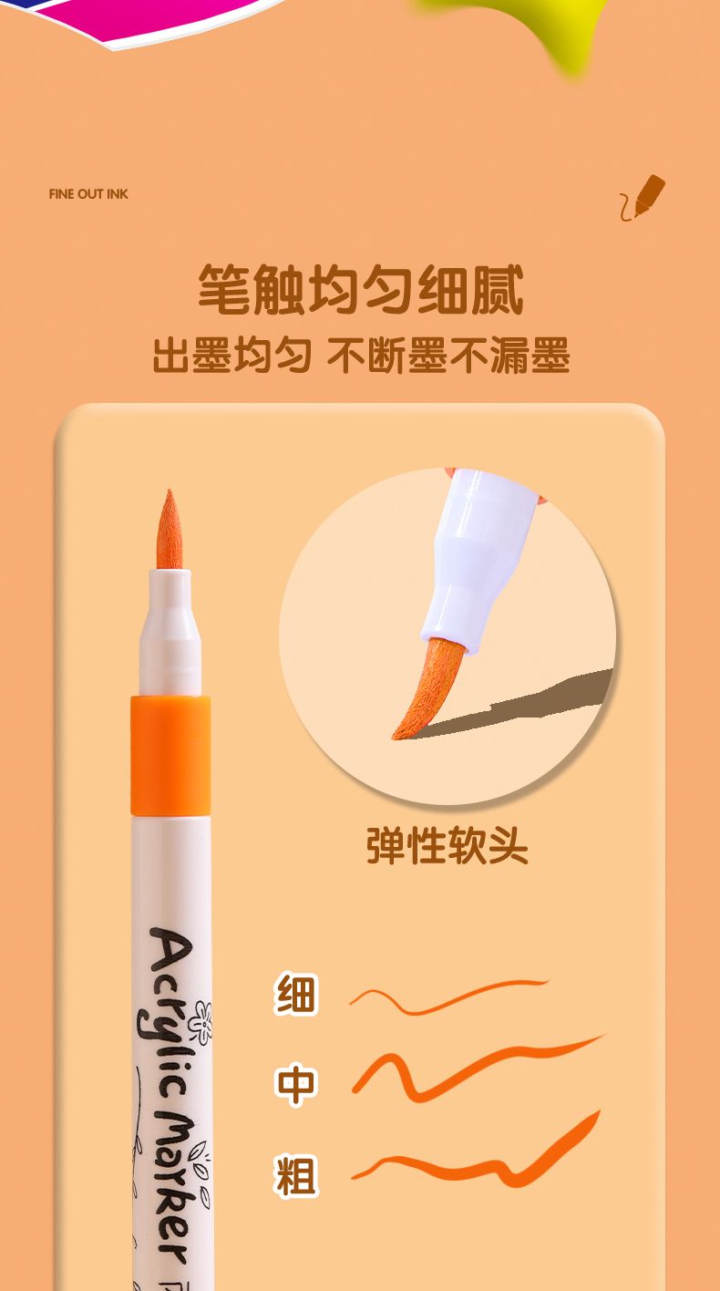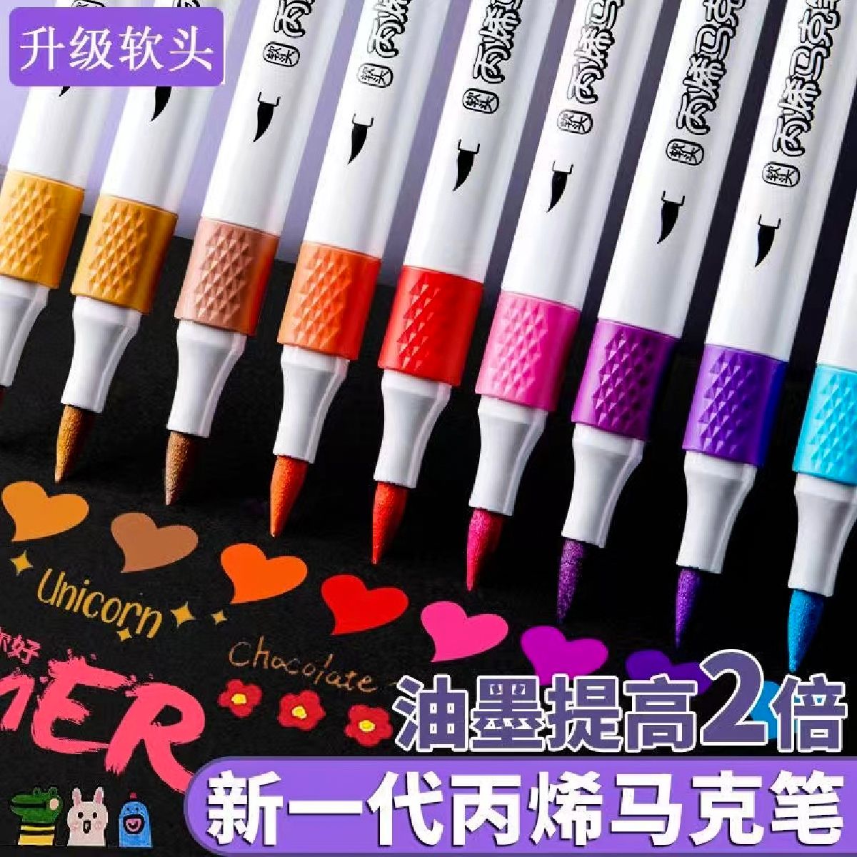软头丙烯马克笔儿童专用学生美术防水不透纸可叠色可水洗彩笔