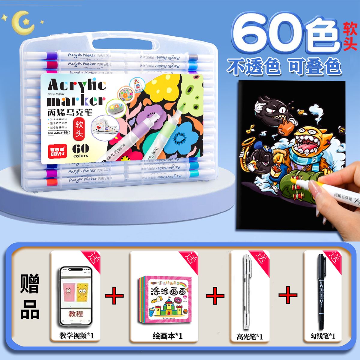 | #软头60色+高光笔+记号勾笔+绘画册+视频 | USD $6.27 | 999999 piece available |