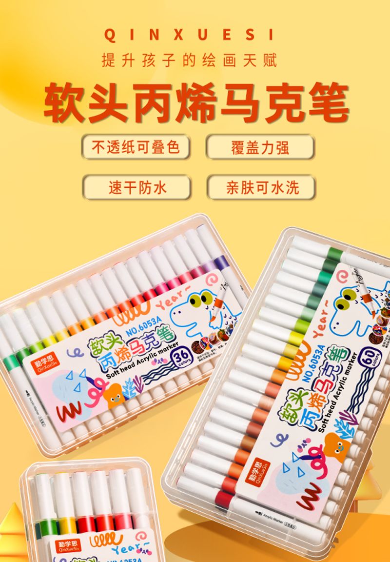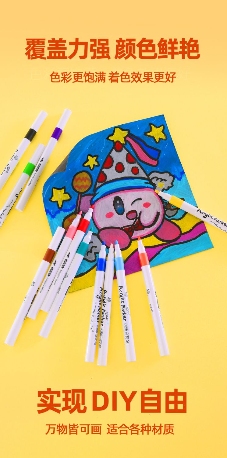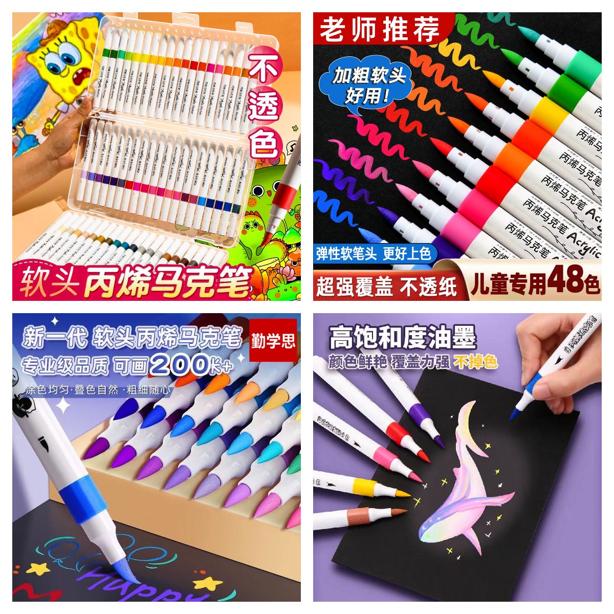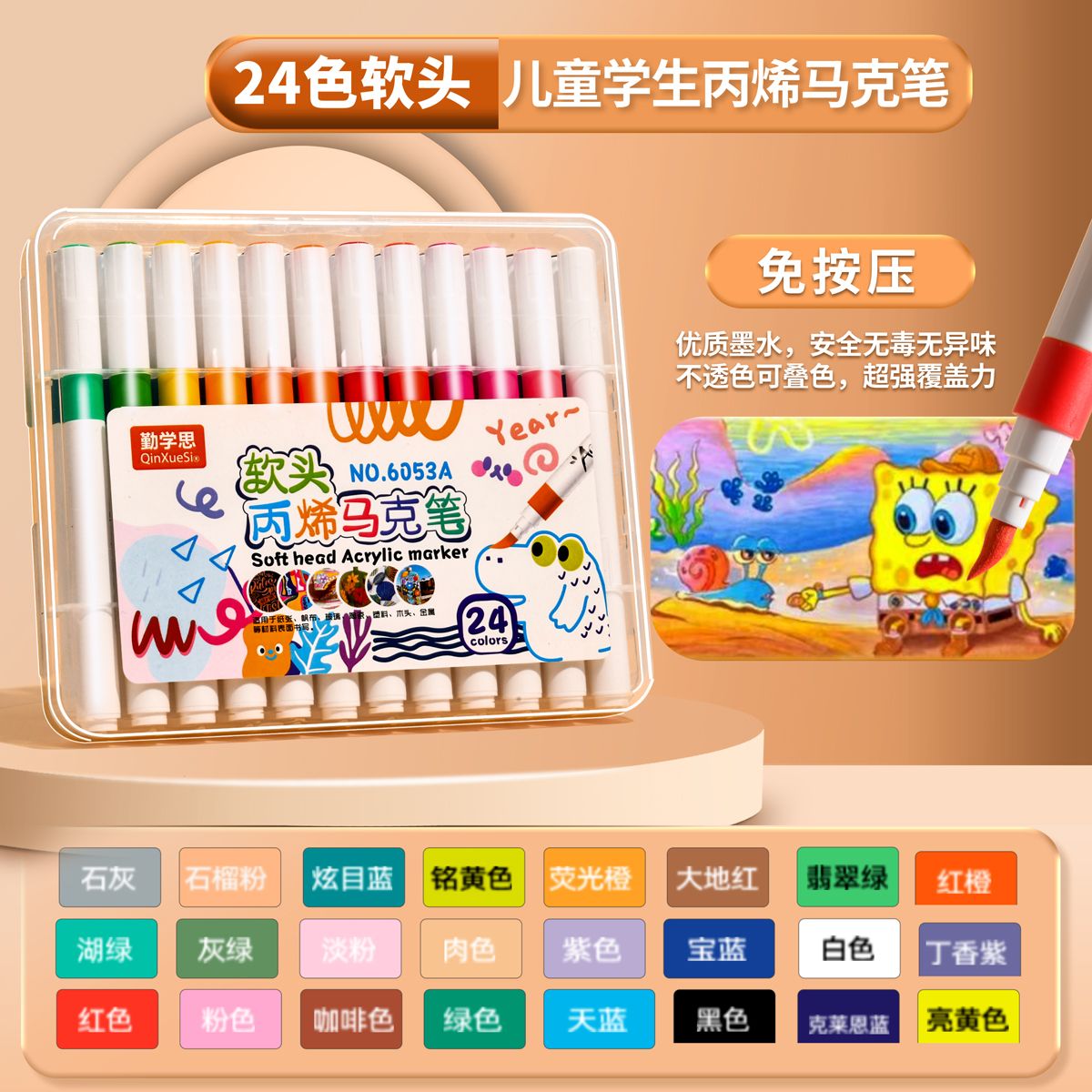 软头正版丙烯马克笔防水不透纸可叠色儿童学生专用可水洗彩笔