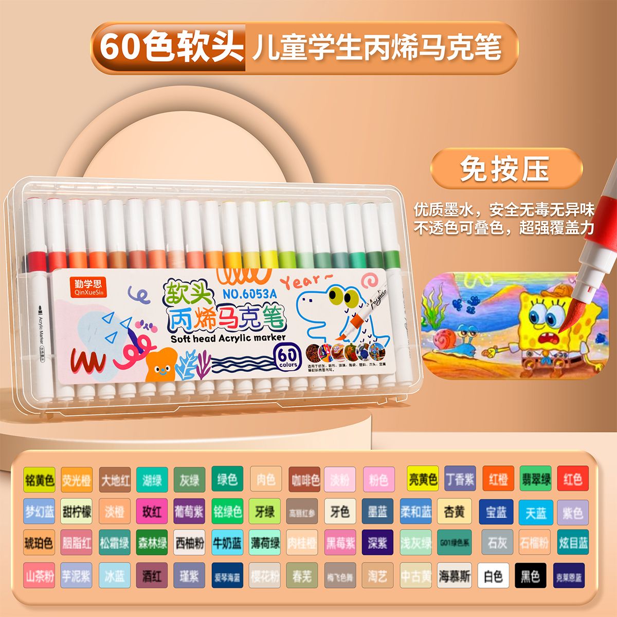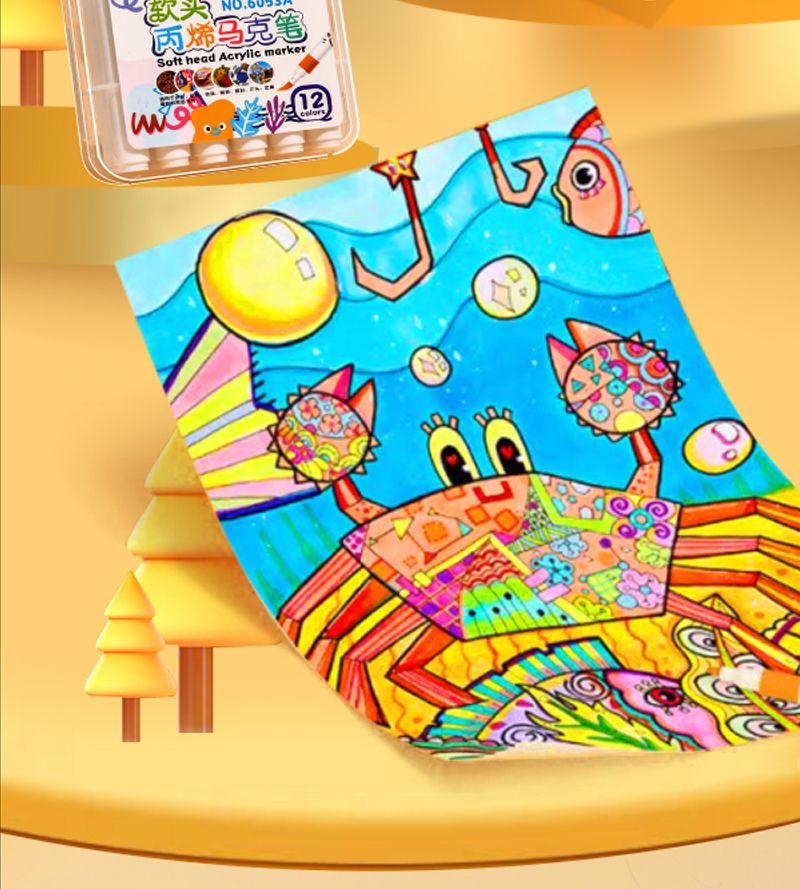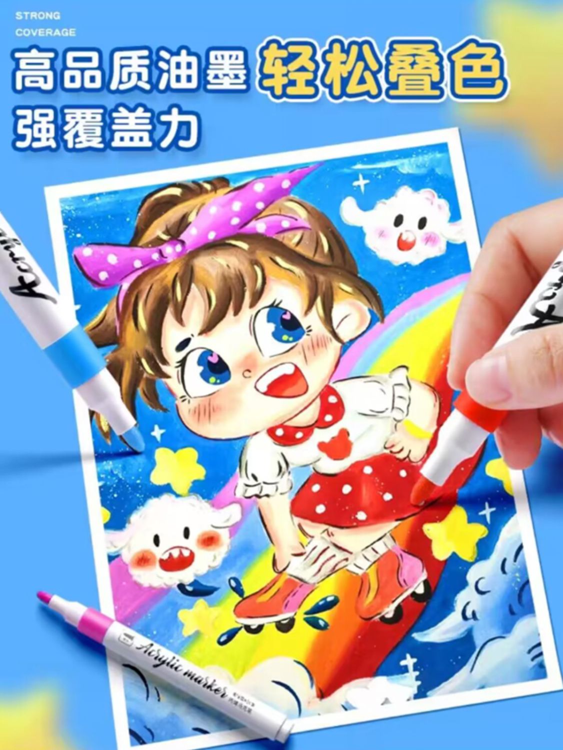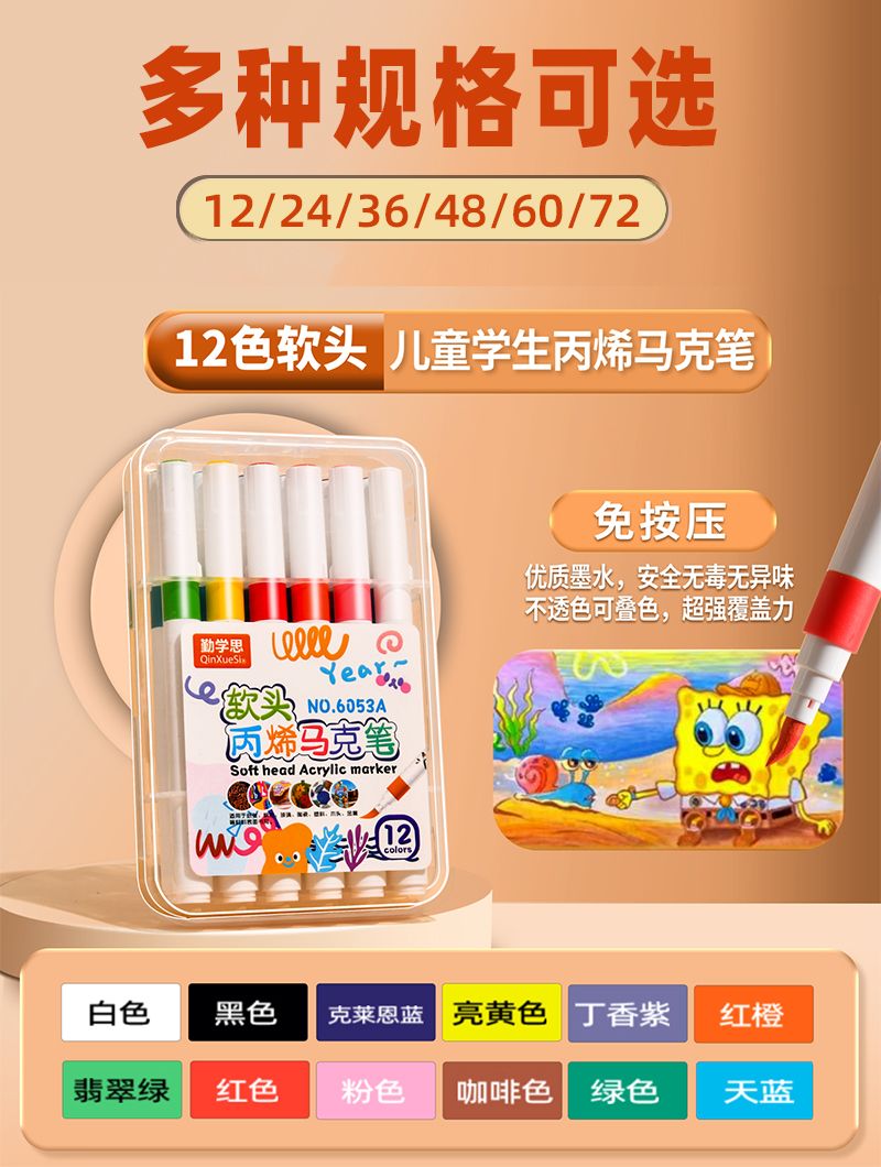 软头正版丙烯马克笔防水不透纸可叠色儿童学生专用可水洗彩笔