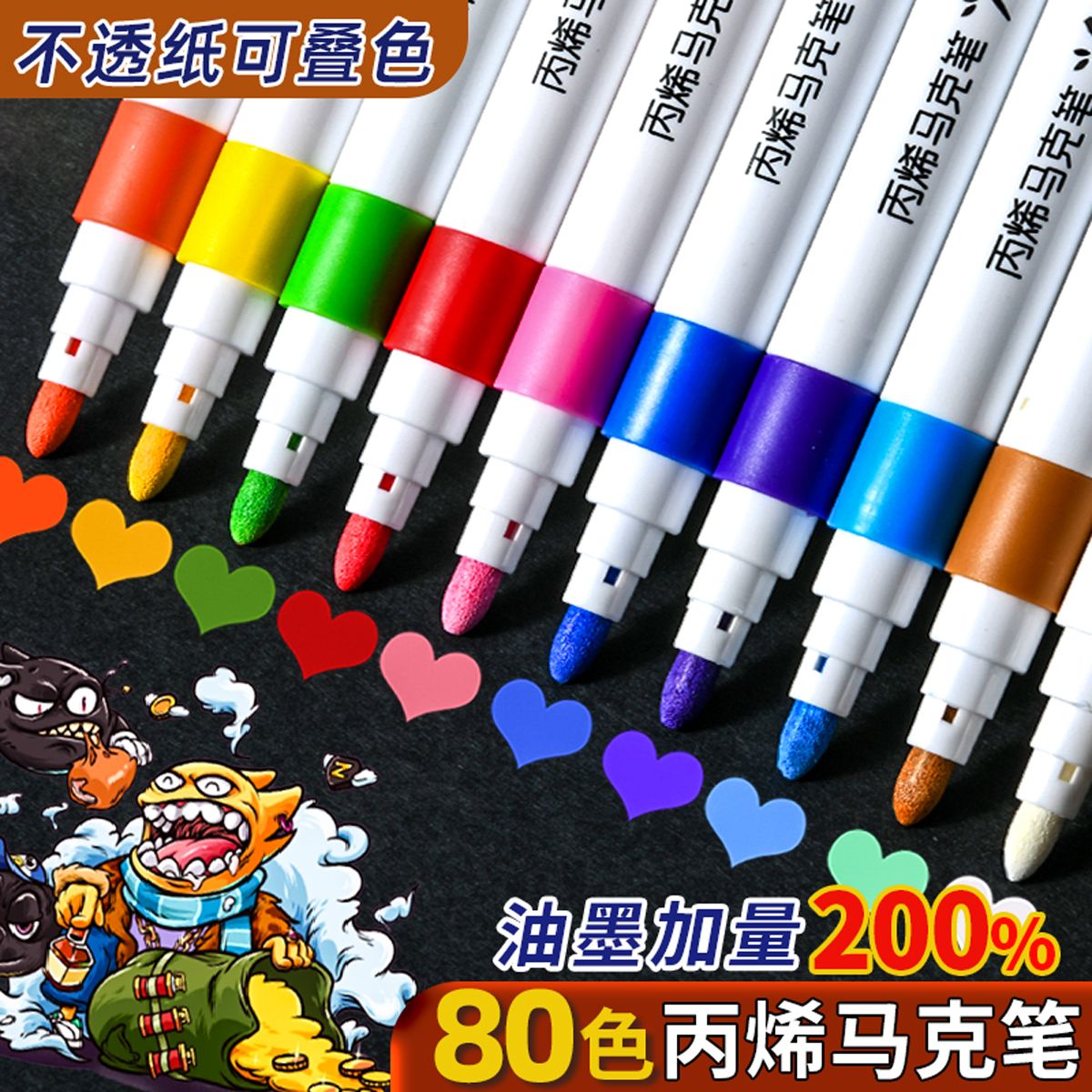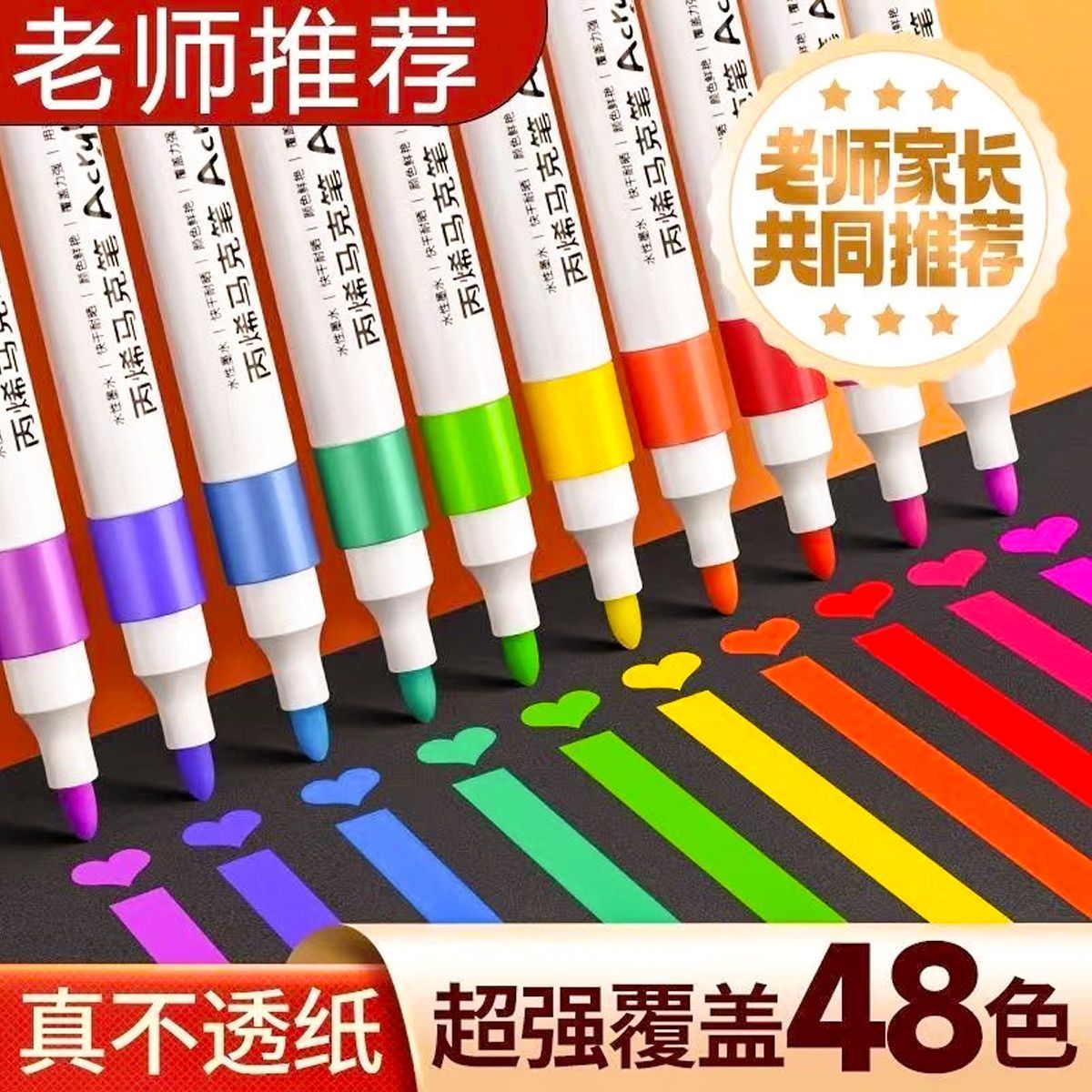 正版丙烯马克笔不透纸可叠色儿童学生专用美术幼儿园可水洗彩笔
