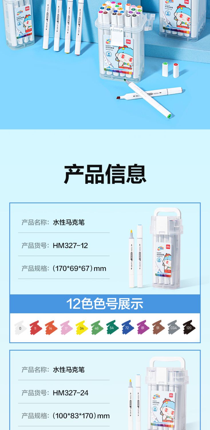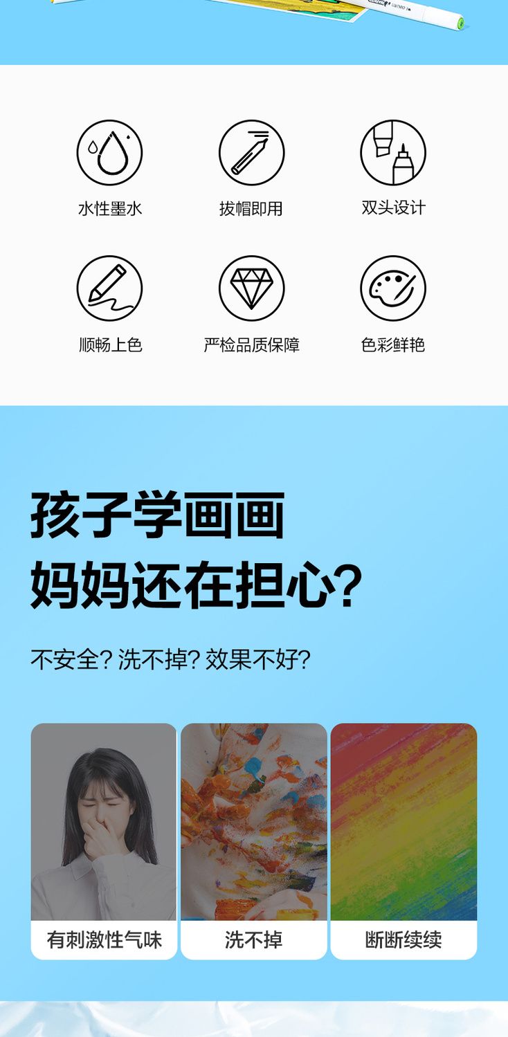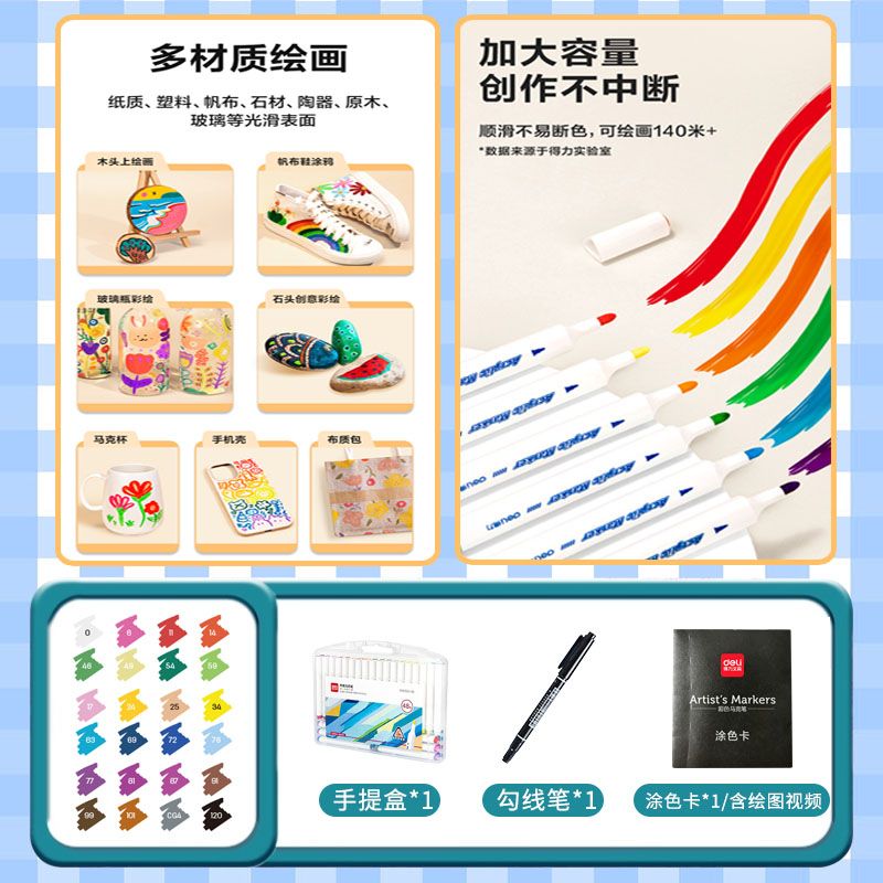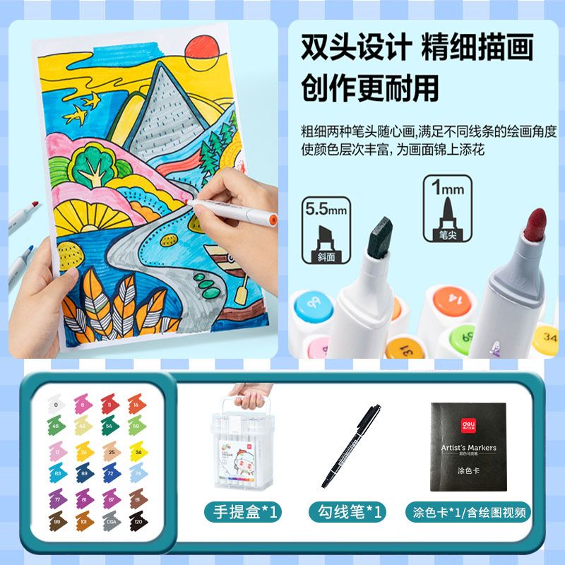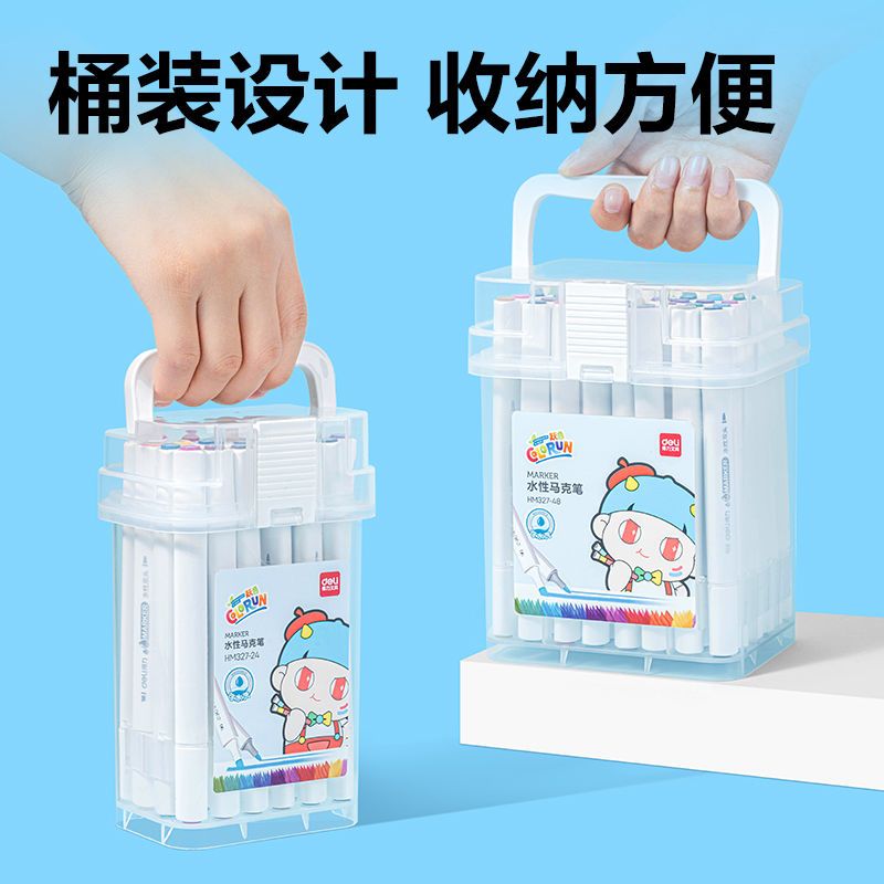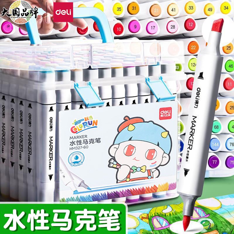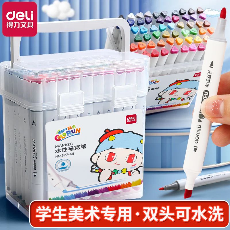 得力马克笔学生专用儿童可水洗水彩笔美术幼儿园双头水性绘画48色