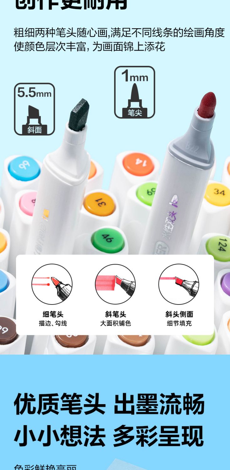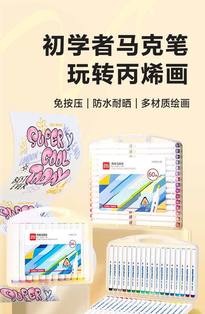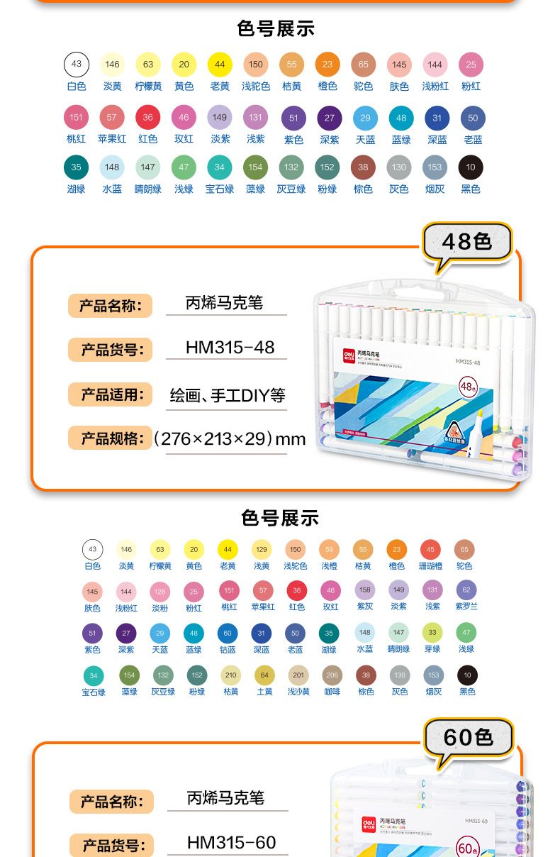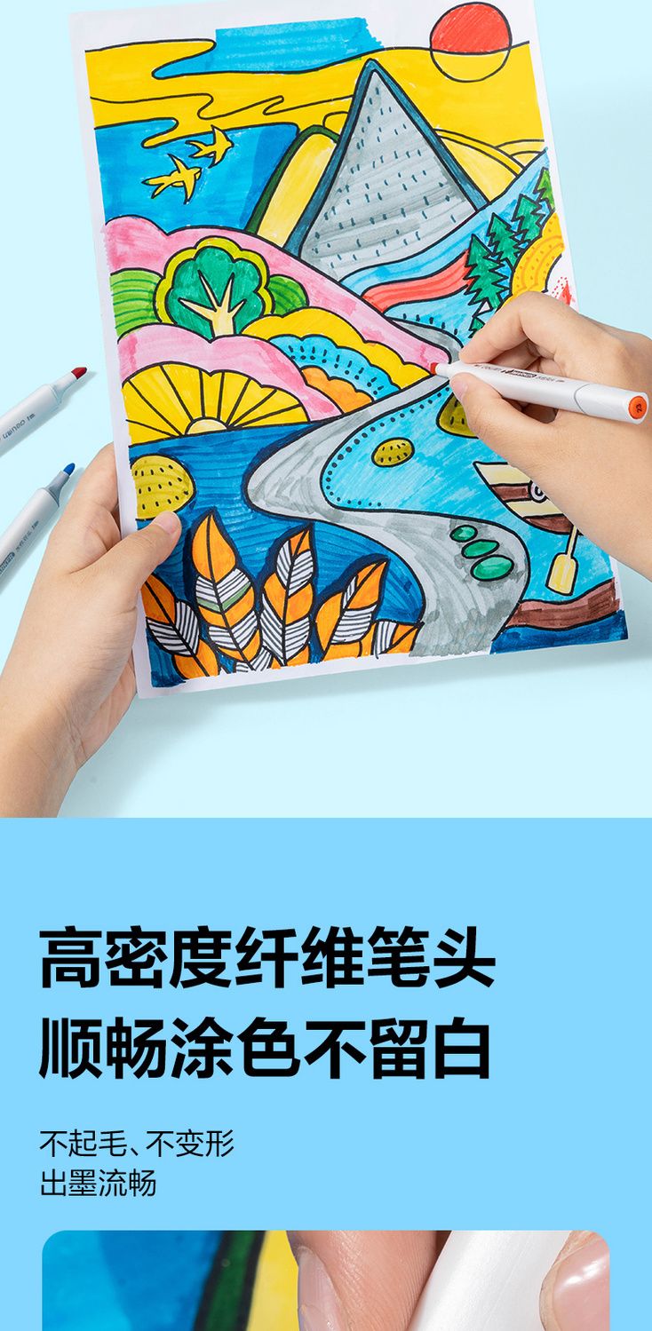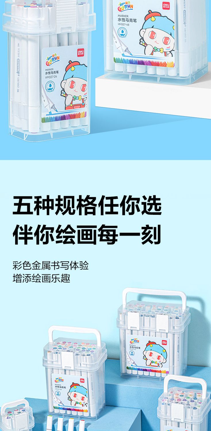 得力马克笔学生专用儿童可水洗水彩笔美术幼儿园双头水性绘画48色