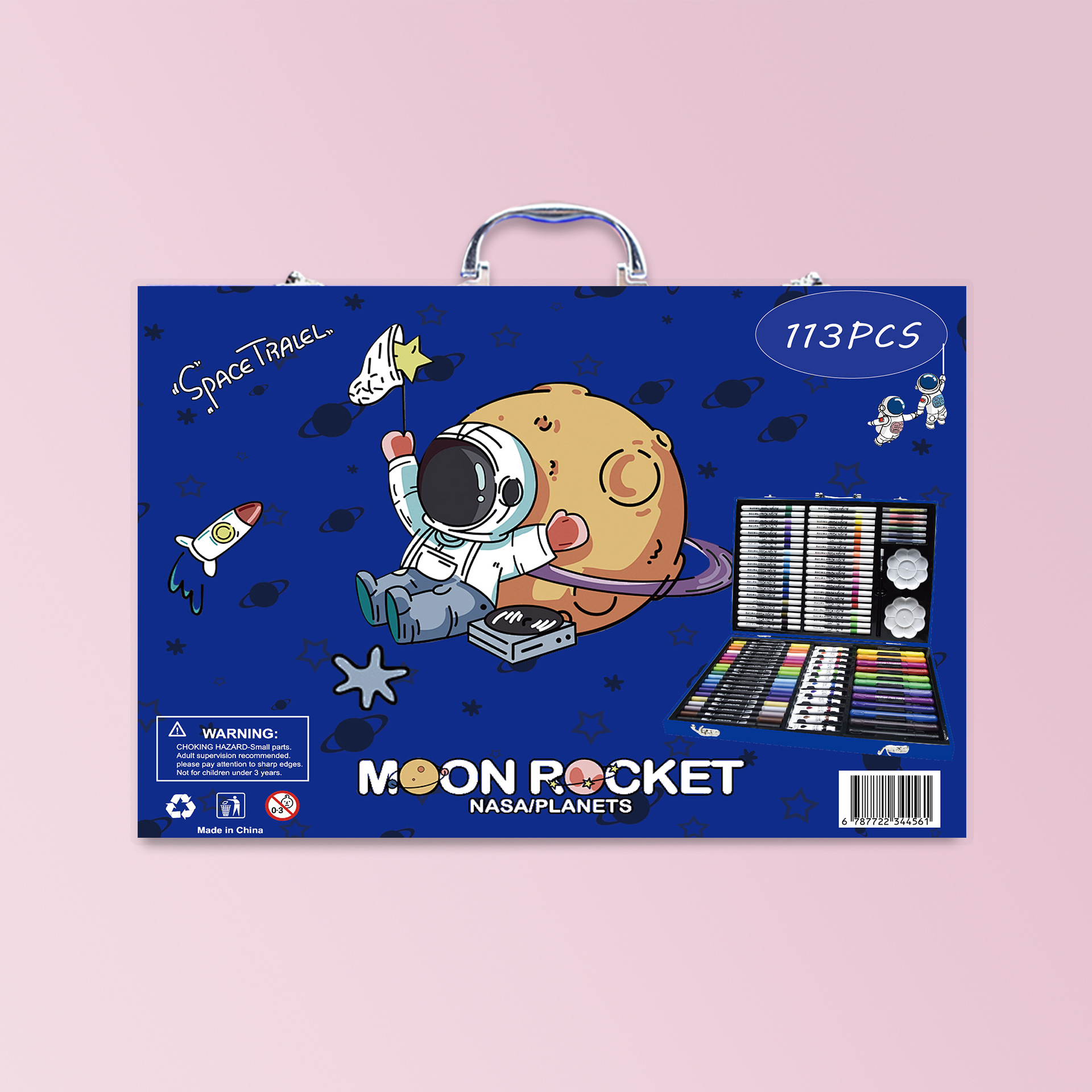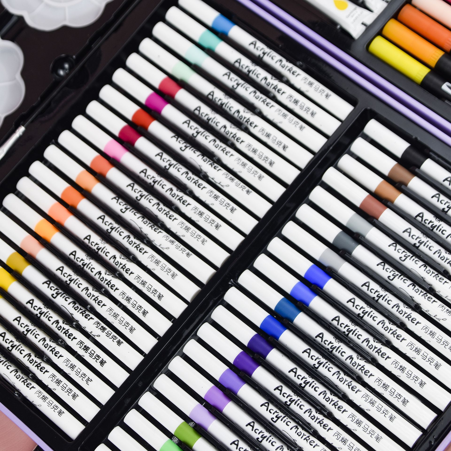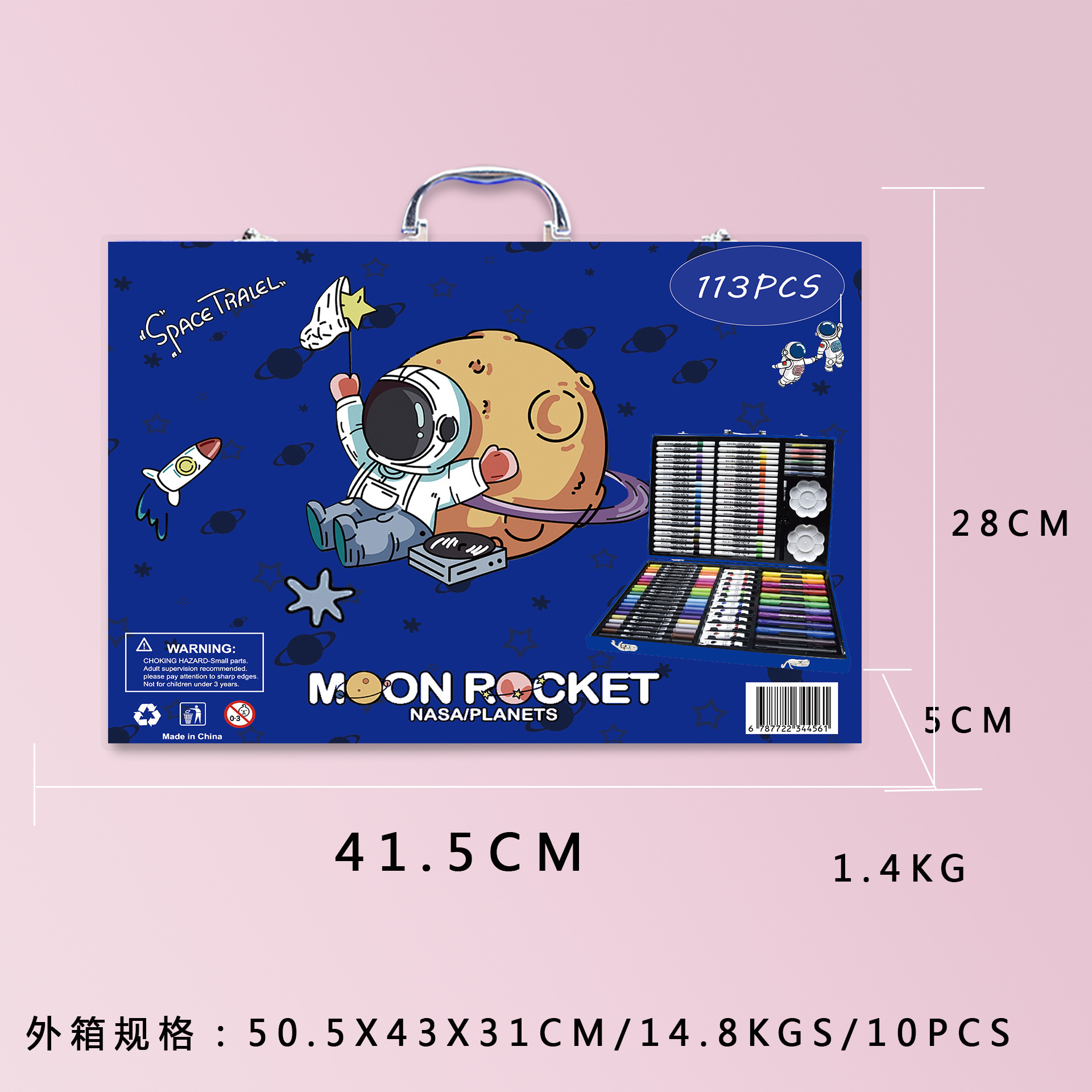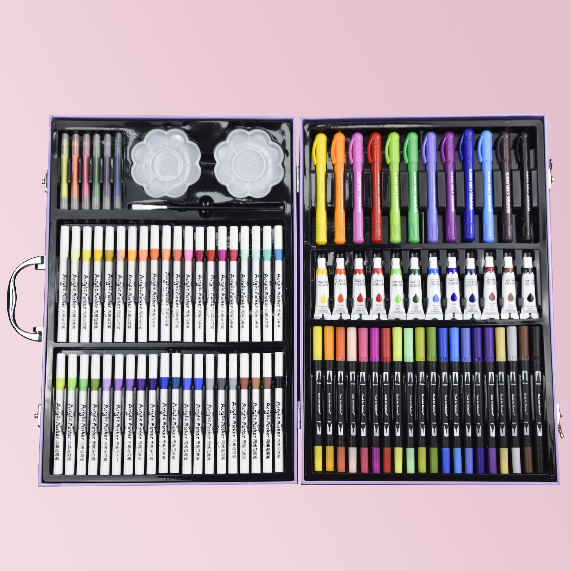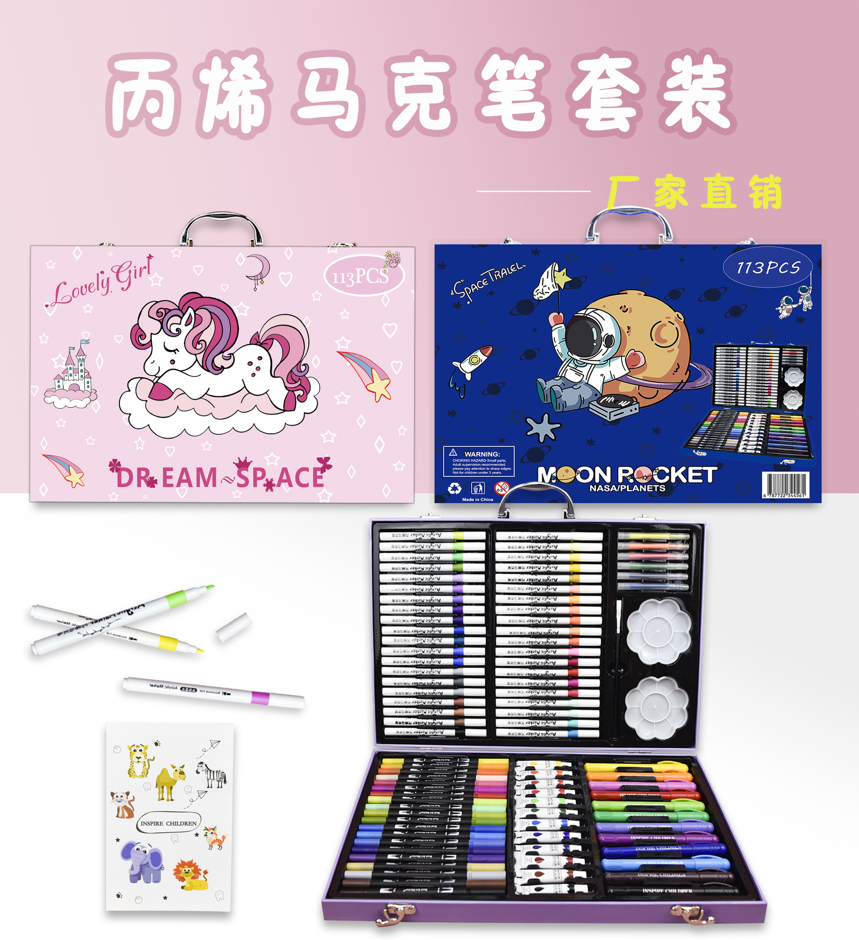 新款113PCS儿童彩色水笔学生专用套装木质礼盒丙烯马克笔文具用品