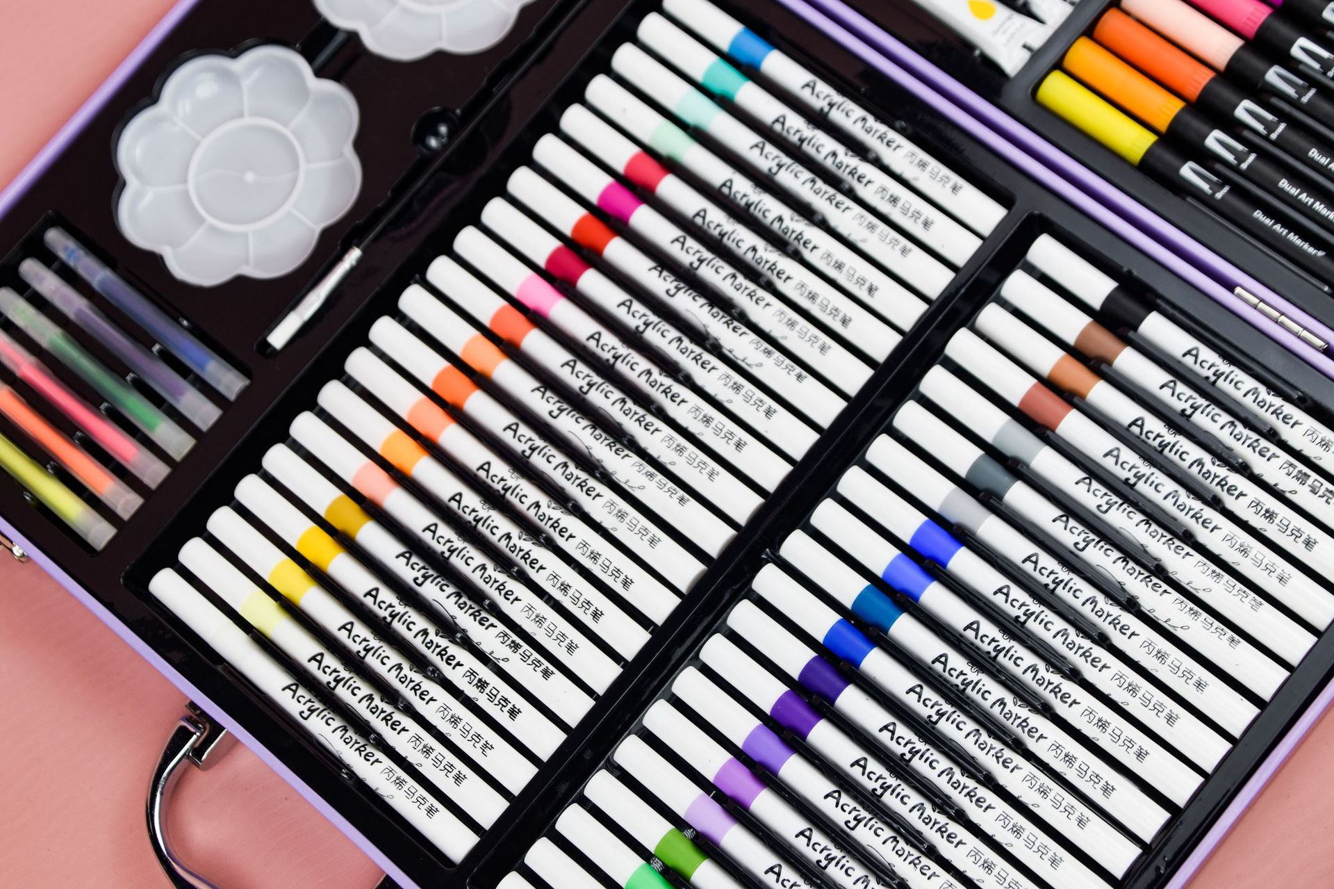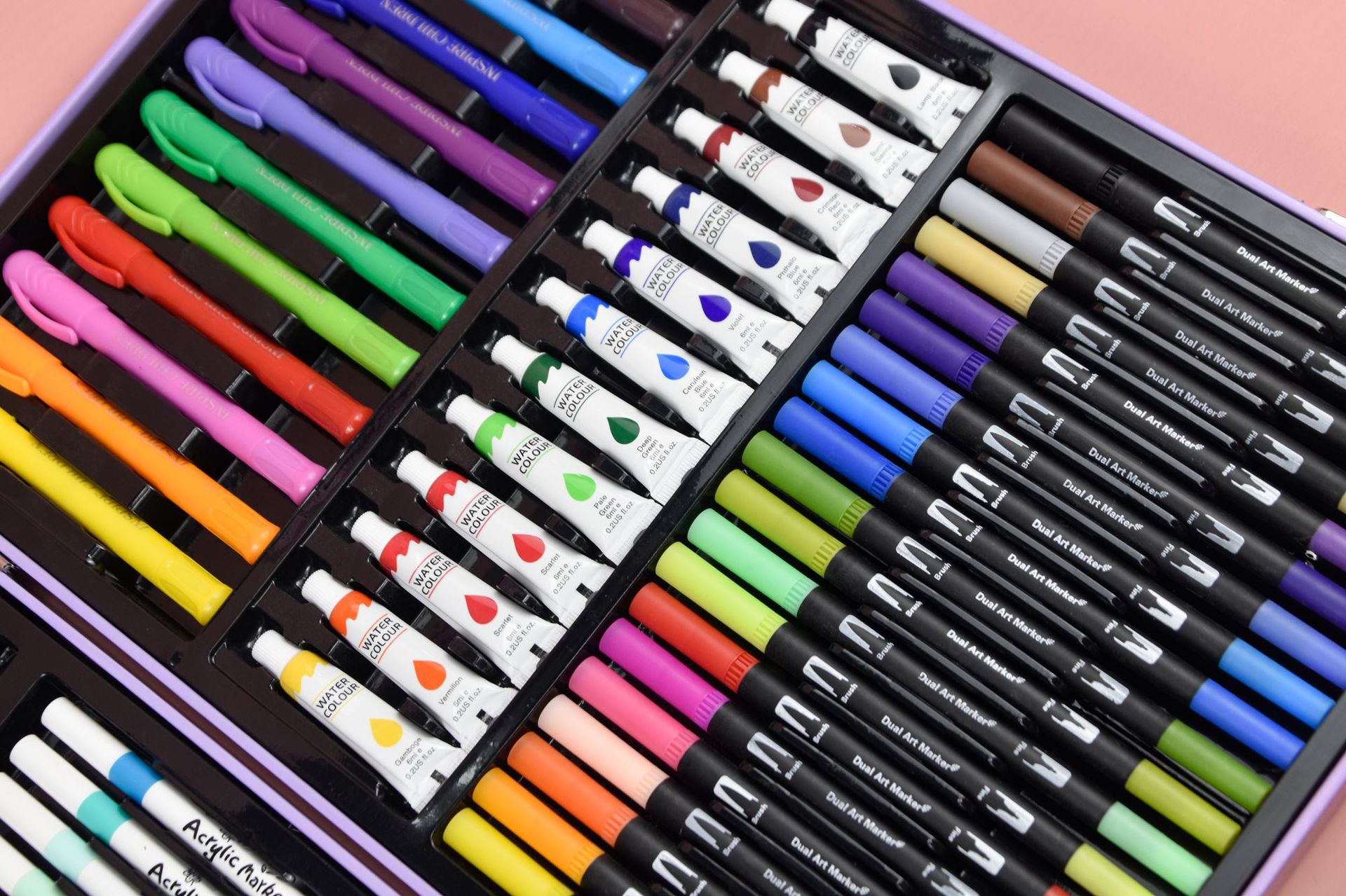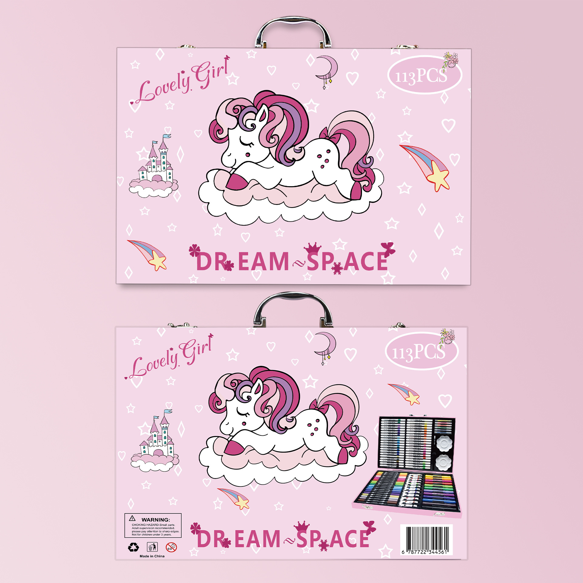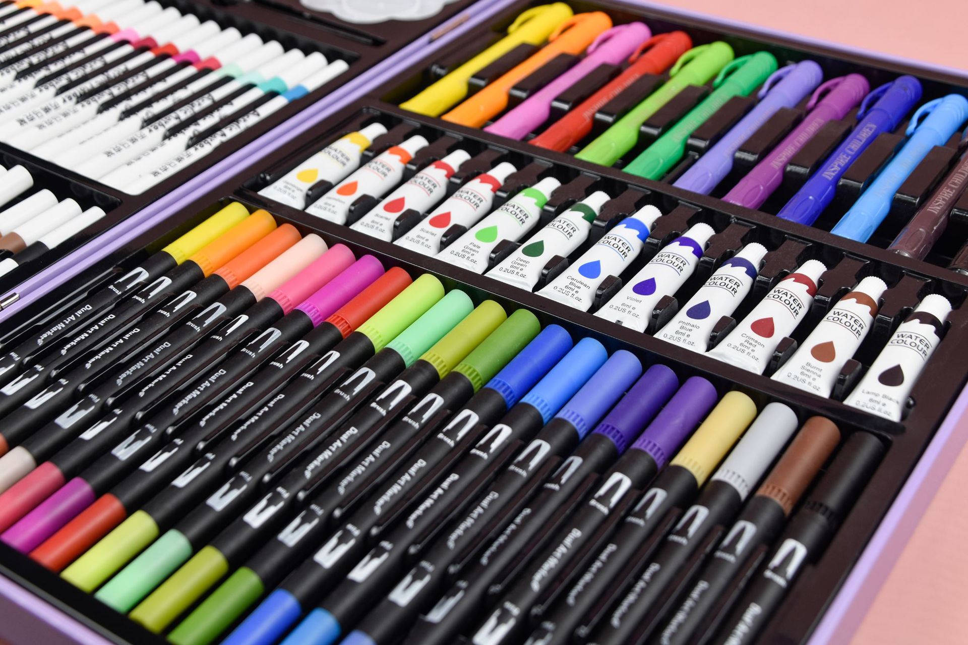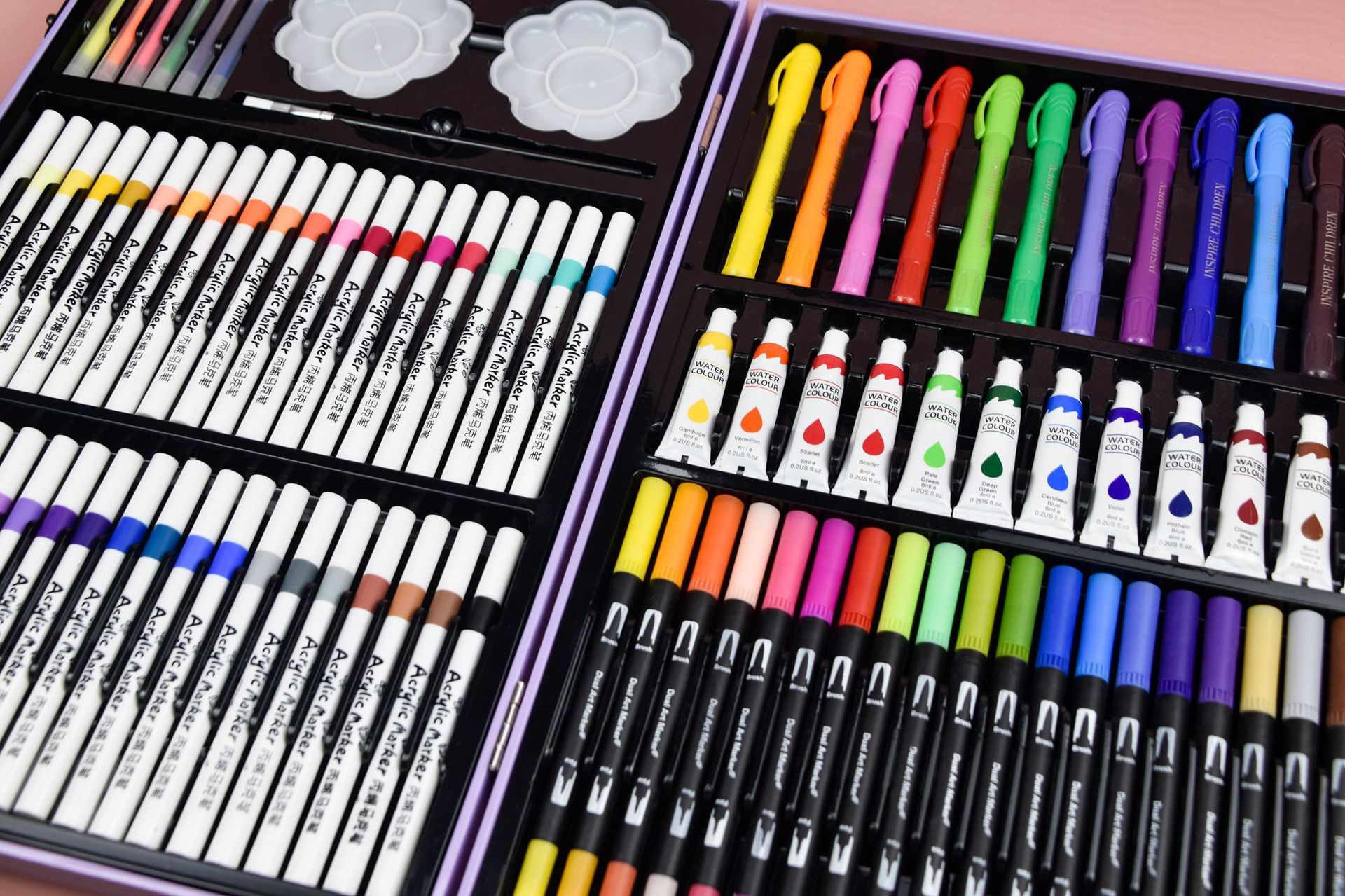 新款113PCS儿童彩色水笔学生专用套装木质礼盒丙烯马克笔文具用品