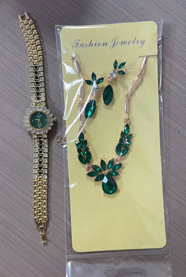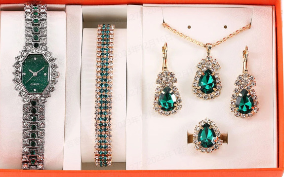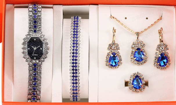 休闲潮流个性方形大表盘满钻钢带石英手表+手镯