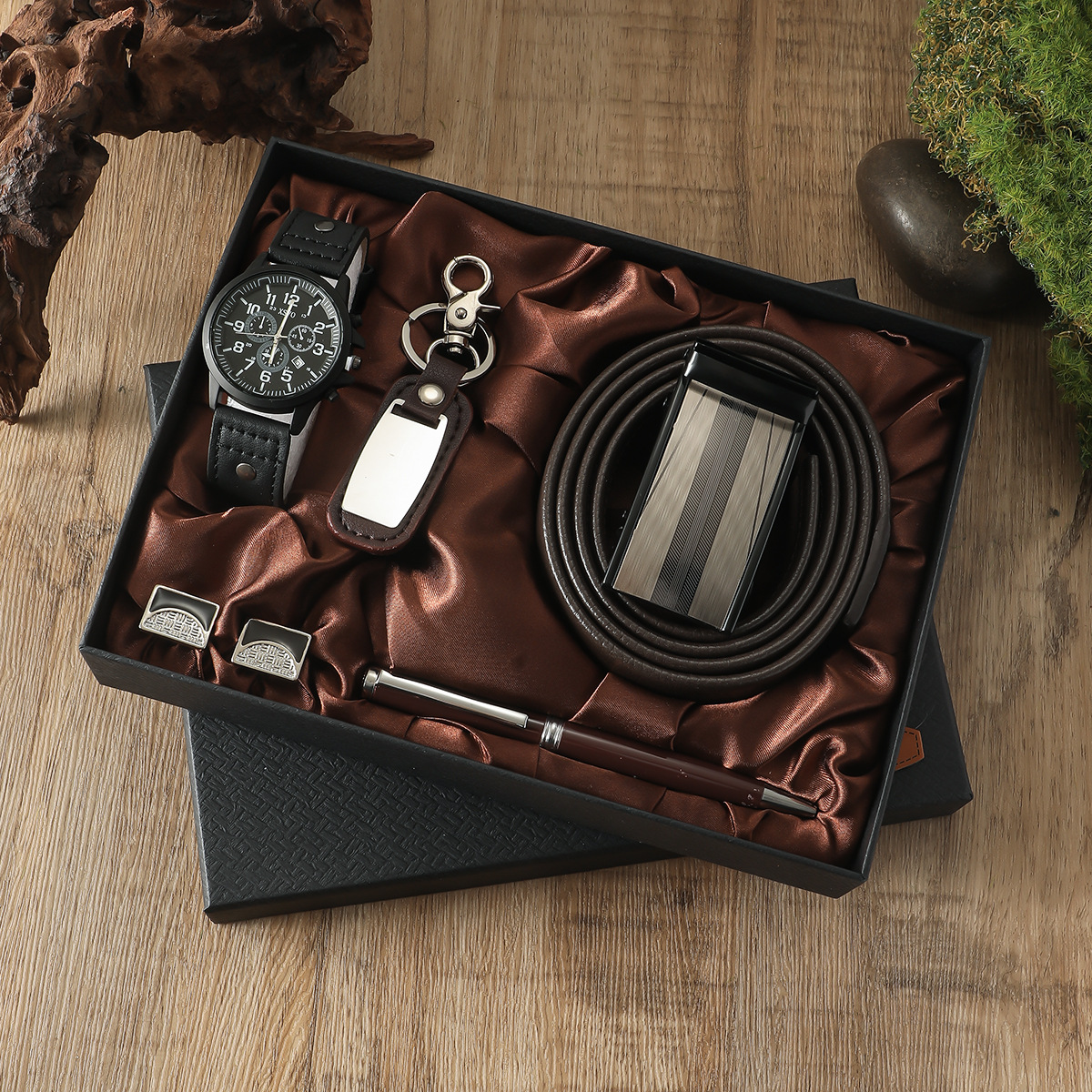 A06814精品礼品套装皮带+钱包+领带+香水+袖扣+皮带石英手表+笔