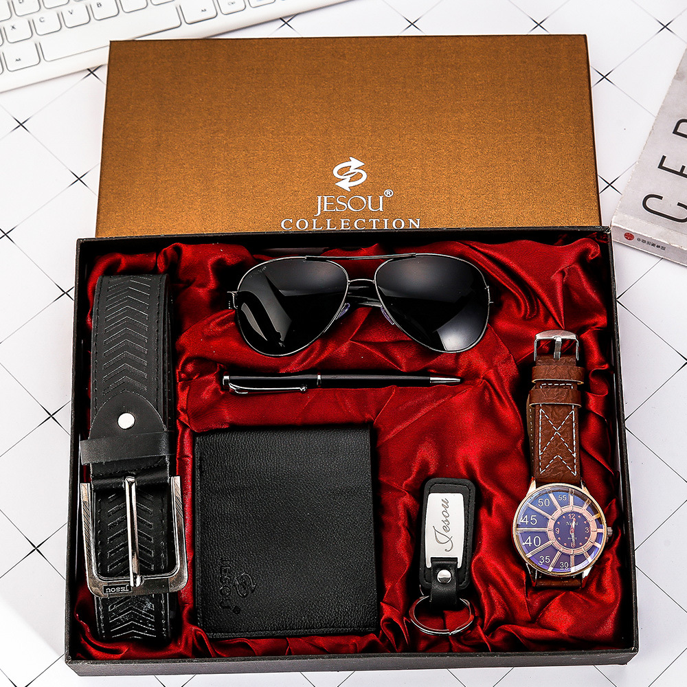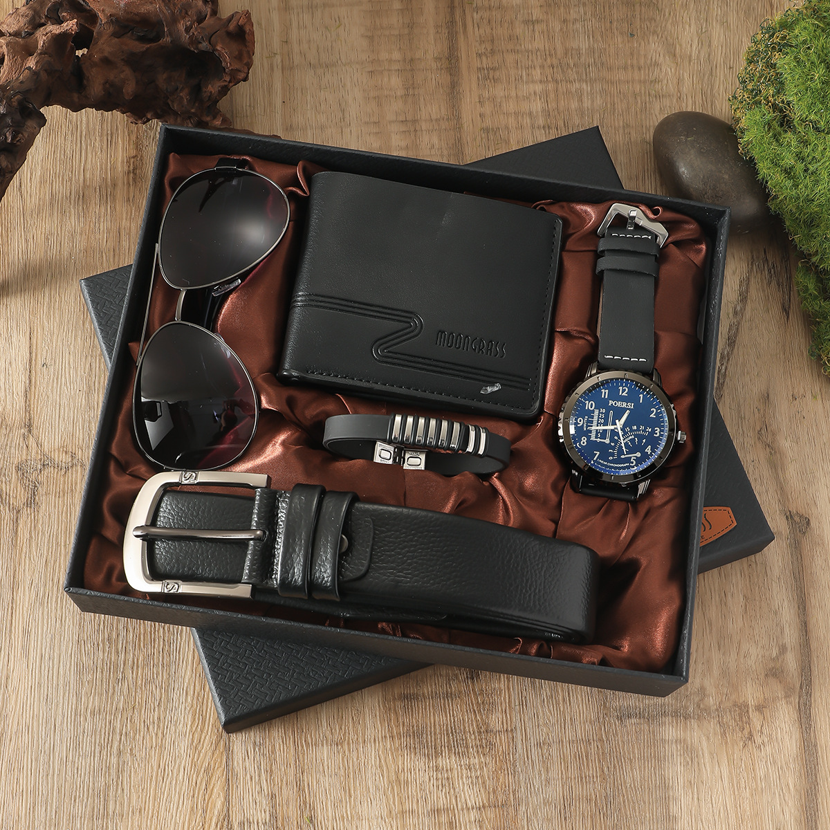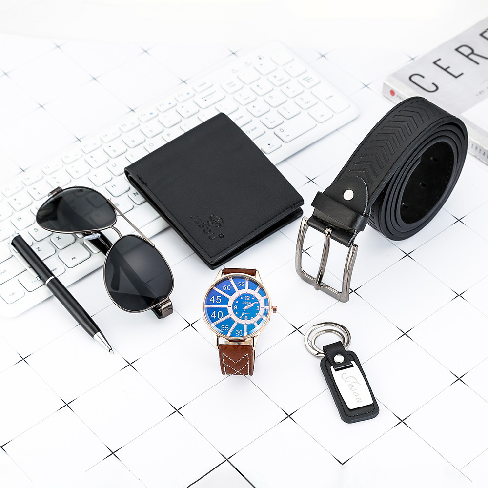 A04988男士手表皮带套装眼镜皮带钱包钥匙扣大表盘石英手表礼品