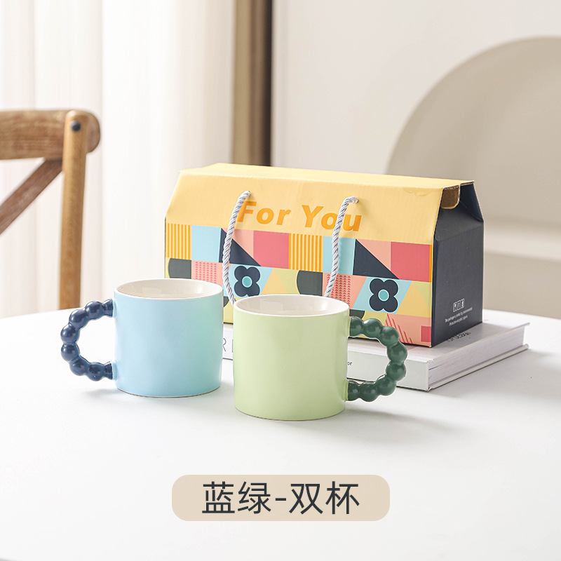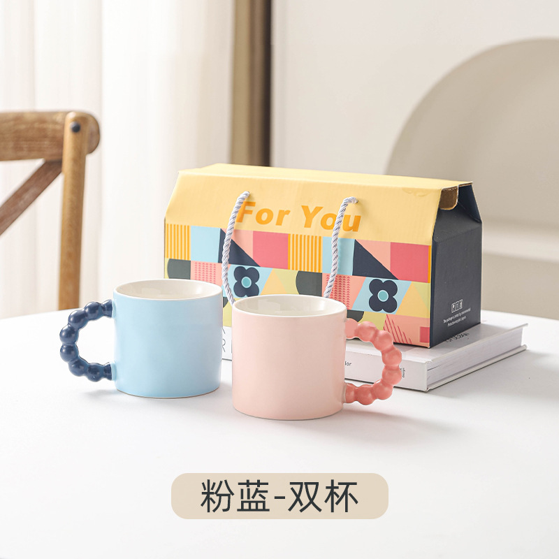 新品简约ins陶瓷水杯情侣套装咖啡杯马卡龙撞色杯伴手礼送礼家用