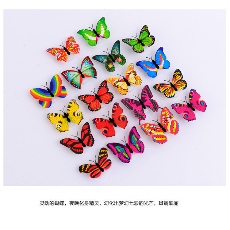 七彩LED发光蝴蝶小夜灯可粘贴仿真蝴蝶发光夜市地摊儿童批发