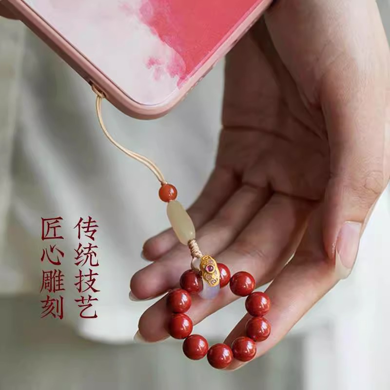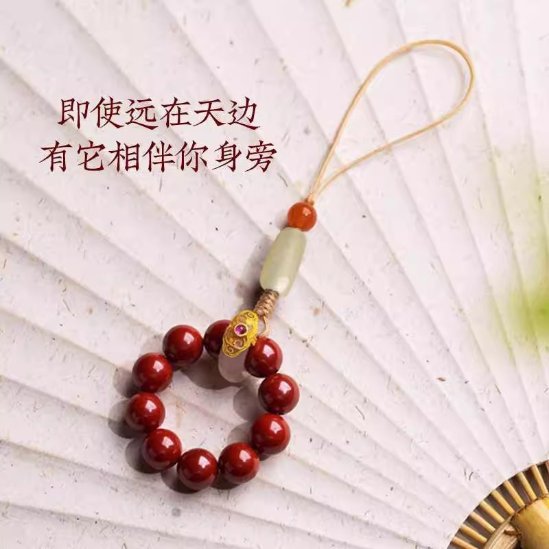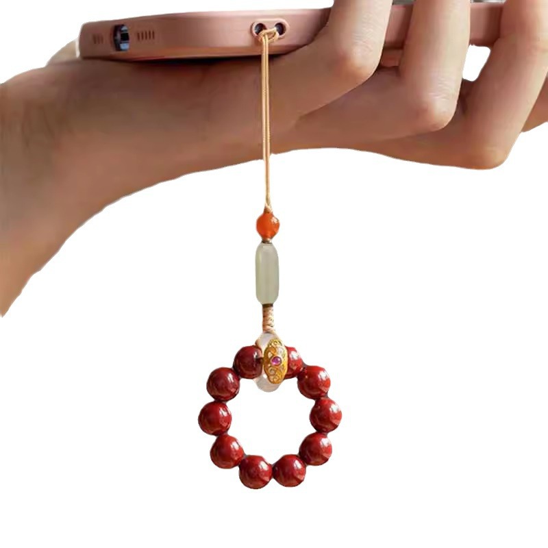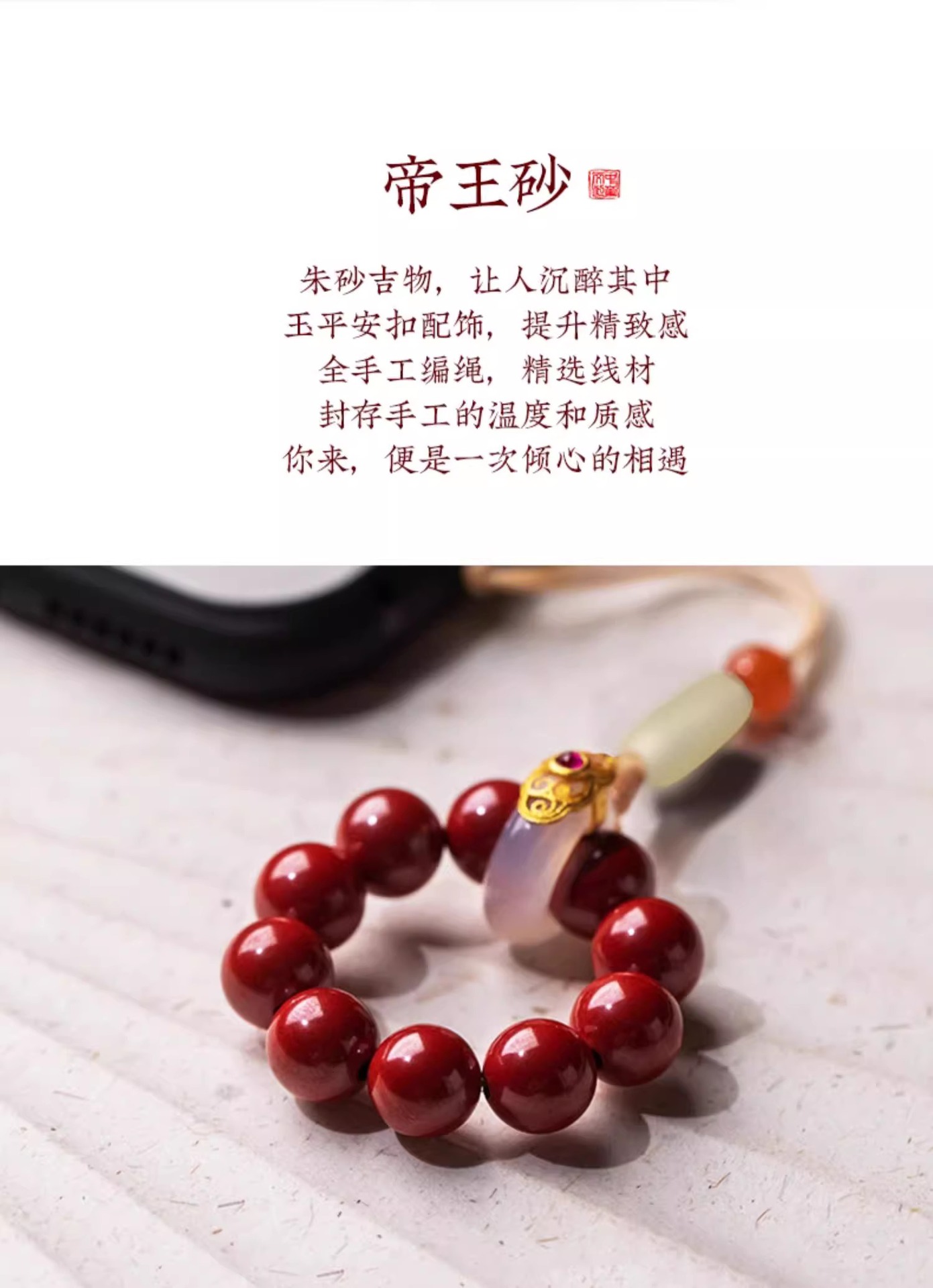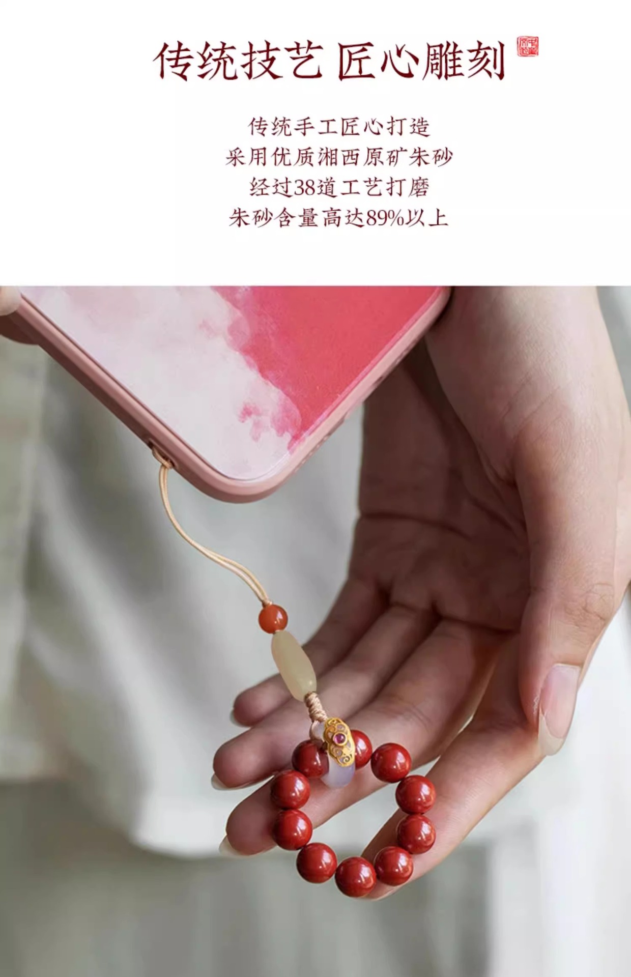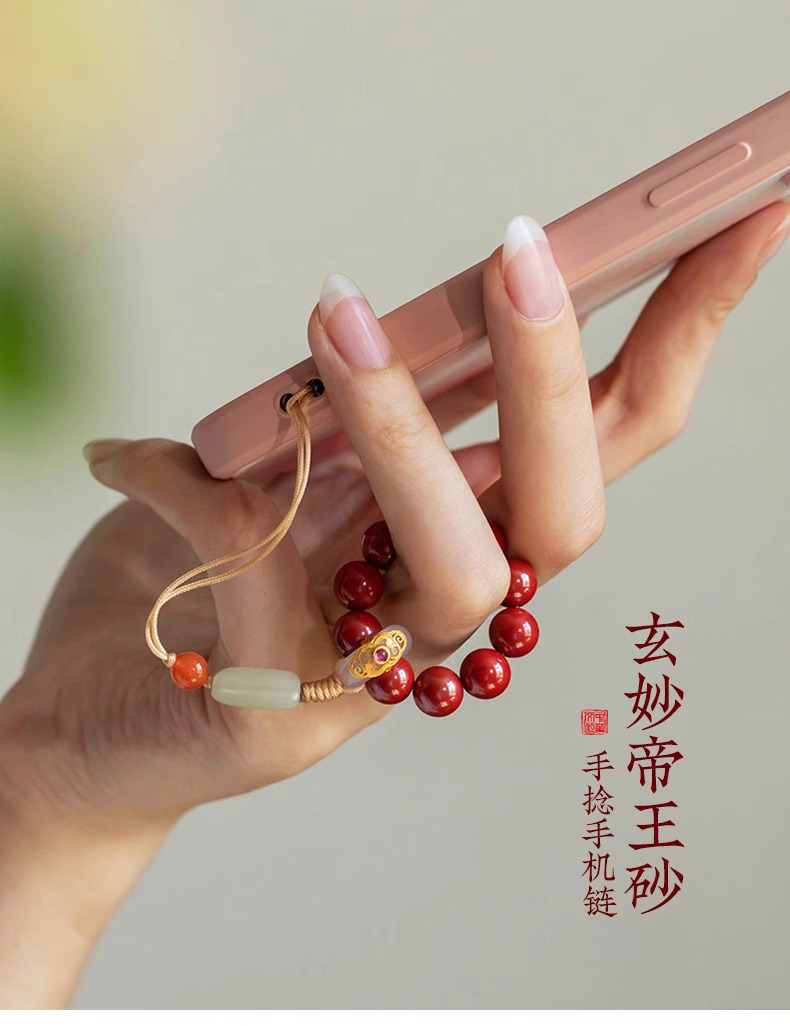 2024新款天然保真帝王砂手机链挂绳朱砂指环防摔手防丢挂饰品挂件