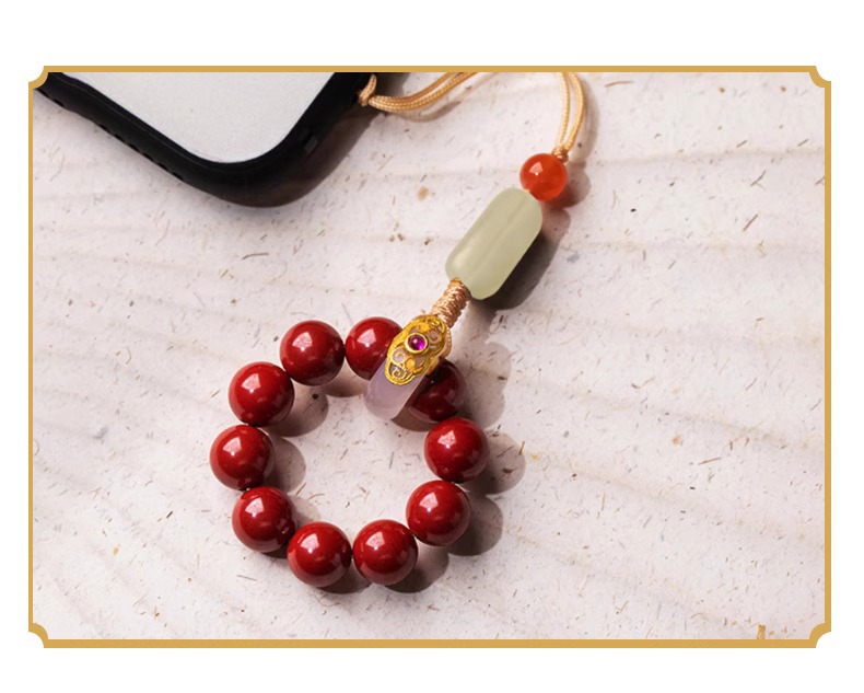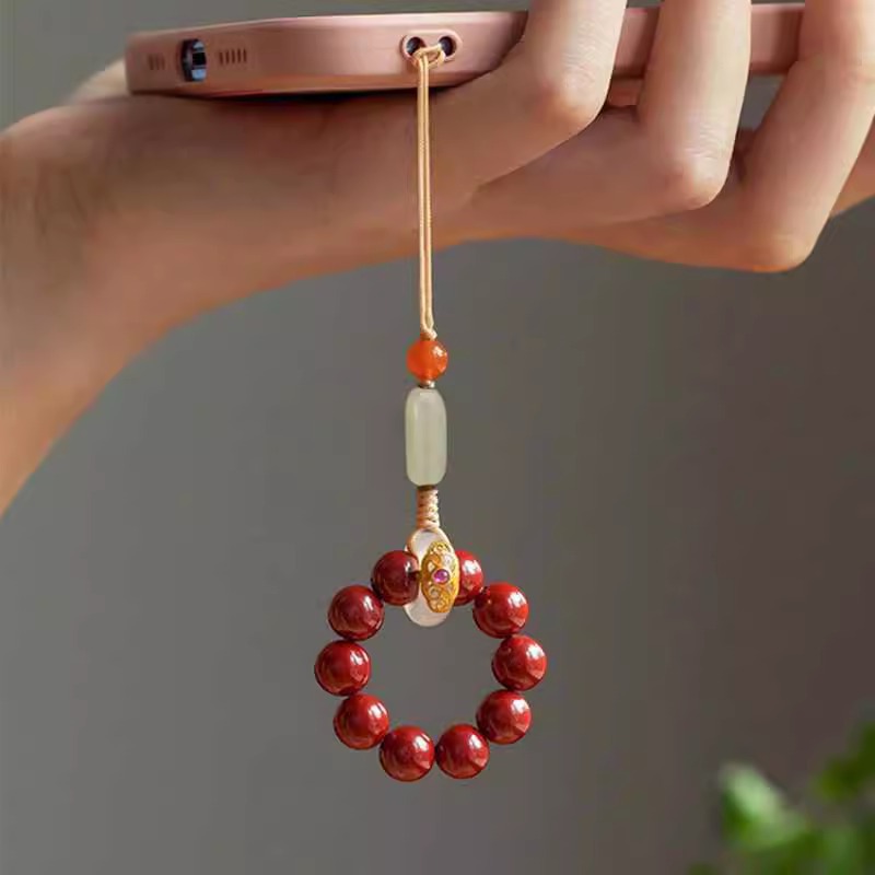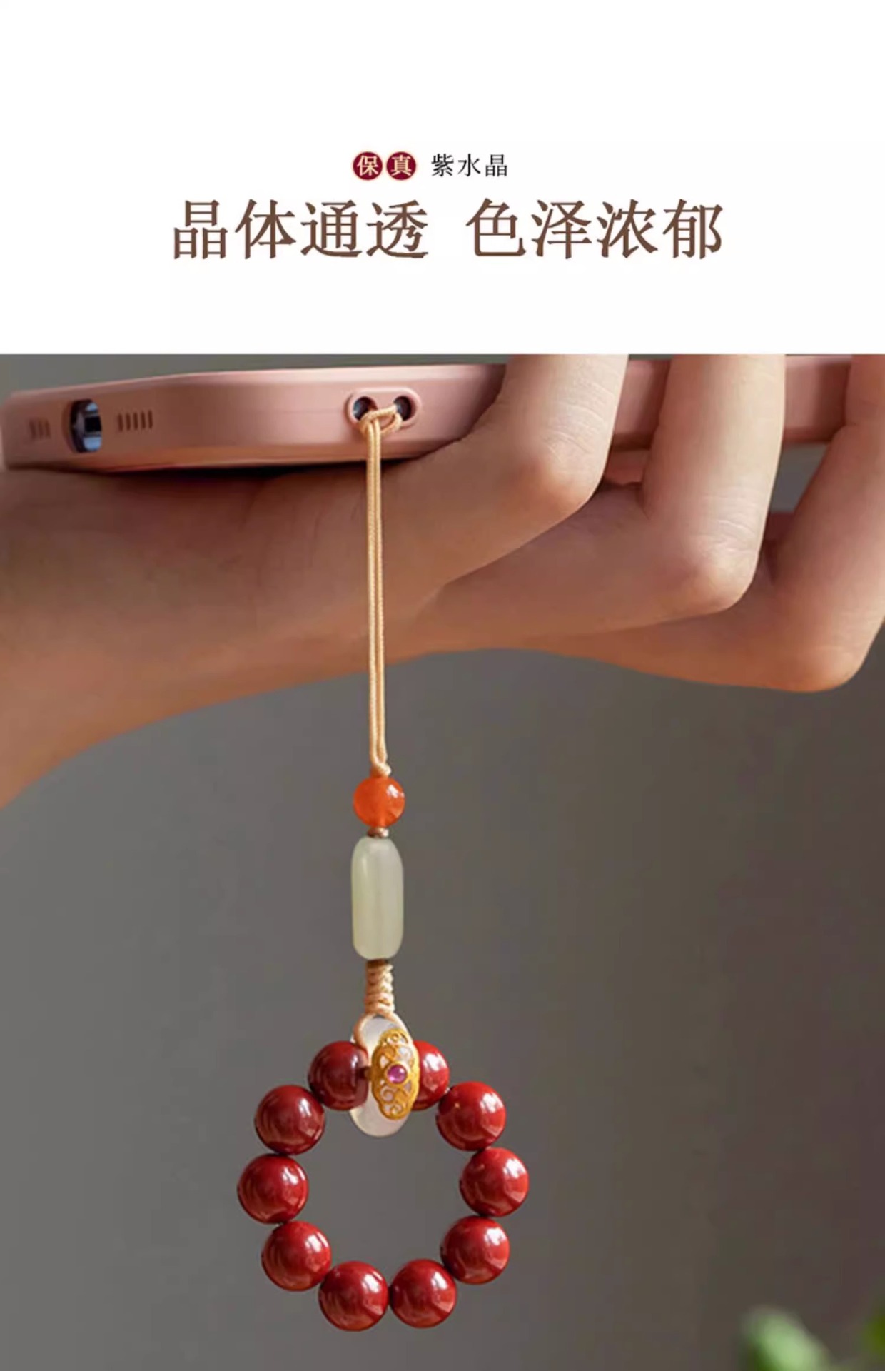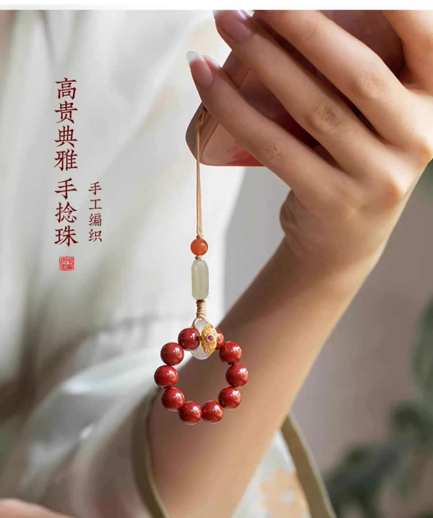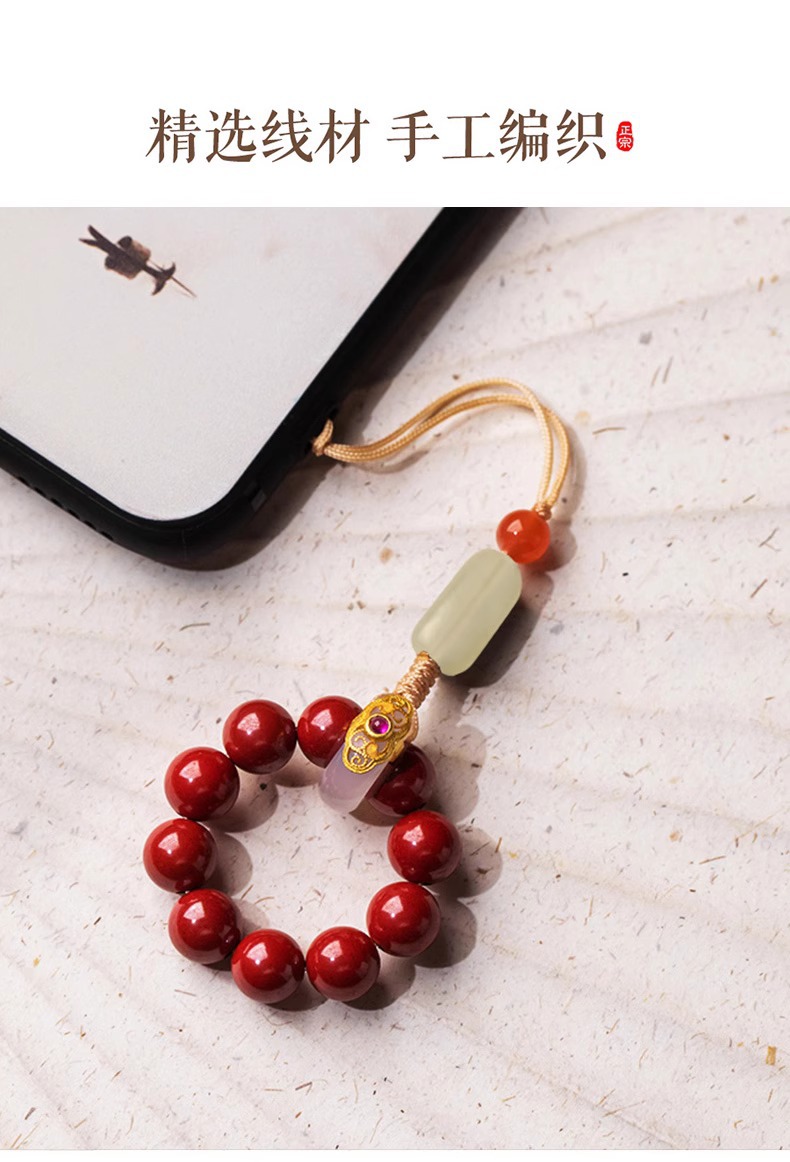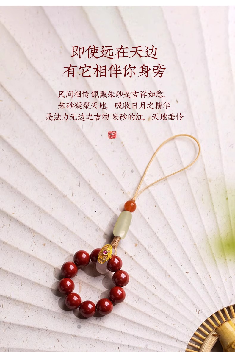 2024新款天然保真帝王砂手机链挂绳朱砂指环防摔手防丢挂饰品挂件