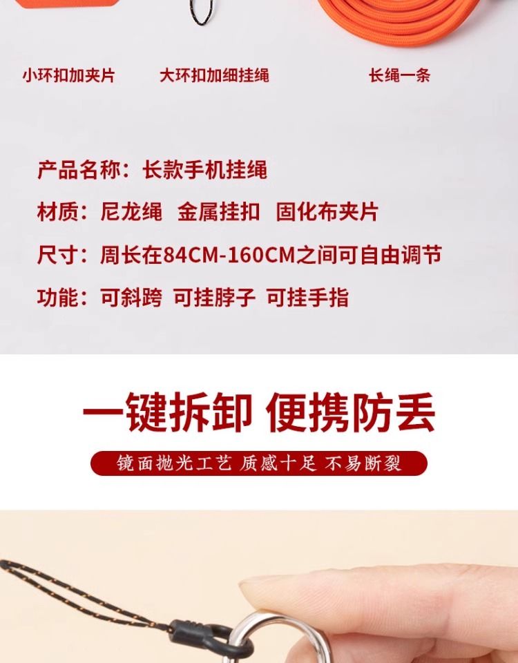 手机链挂绳挂脖斜挎可背可调节防丢万能手机壳结实耐用长款