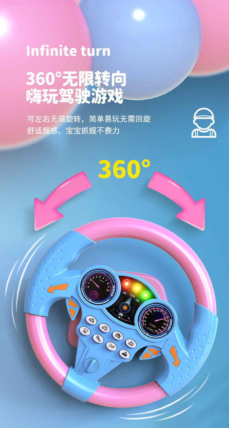 跨境副驾驶方向盘模拟器仿真汽车车载360度旋转模拟驾驶儿童玩具