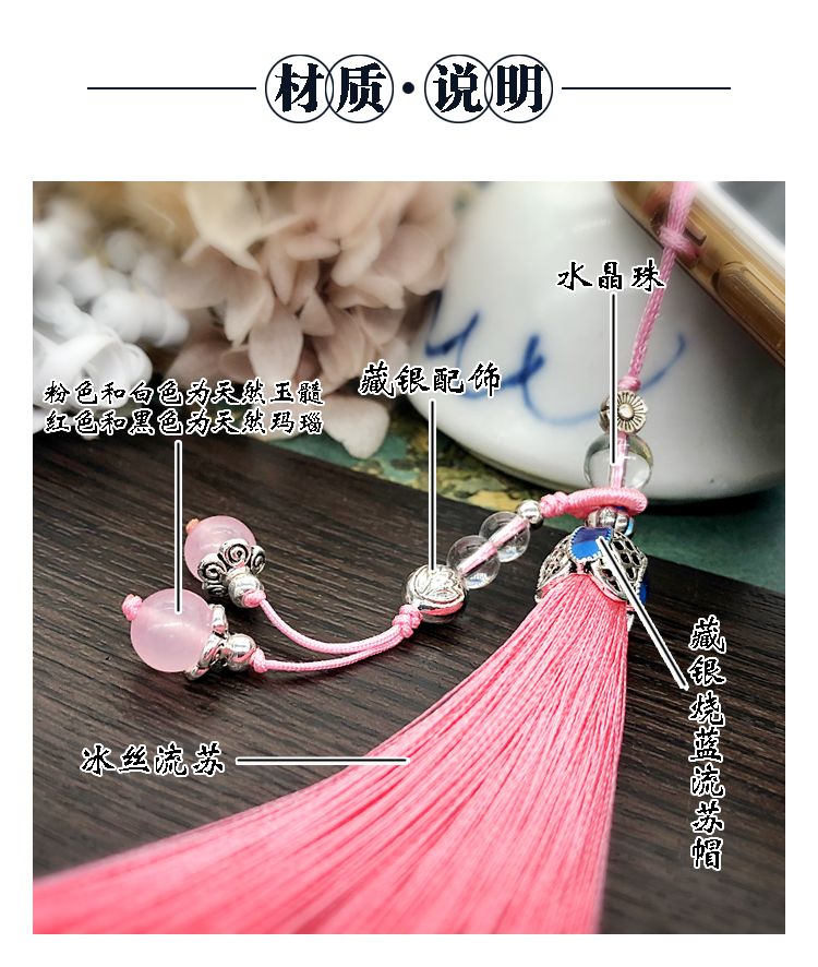 手机短绳流苏挂件饰品配件手机链个性压胸襟吊坠中国古风男女短绳