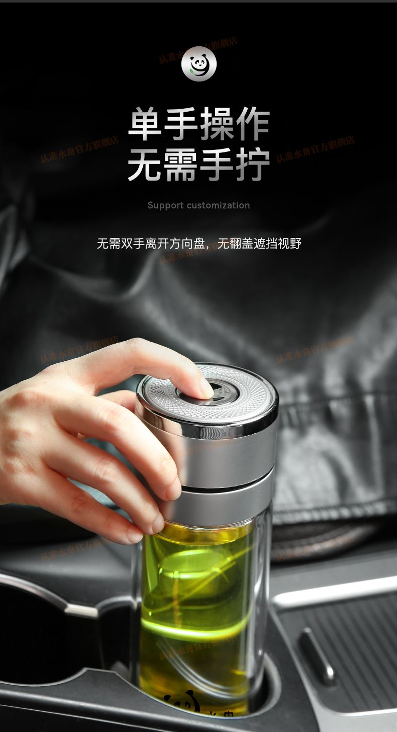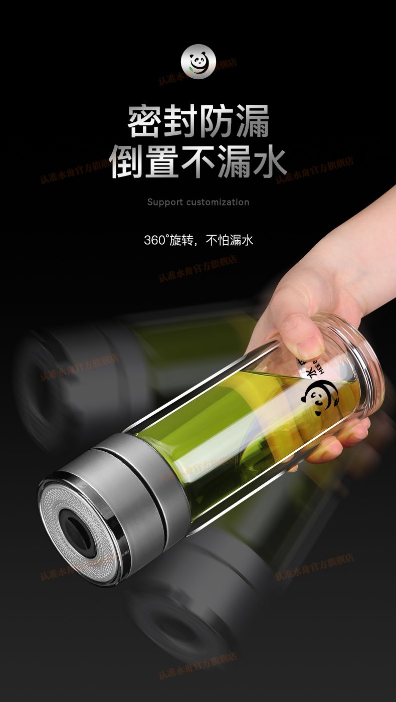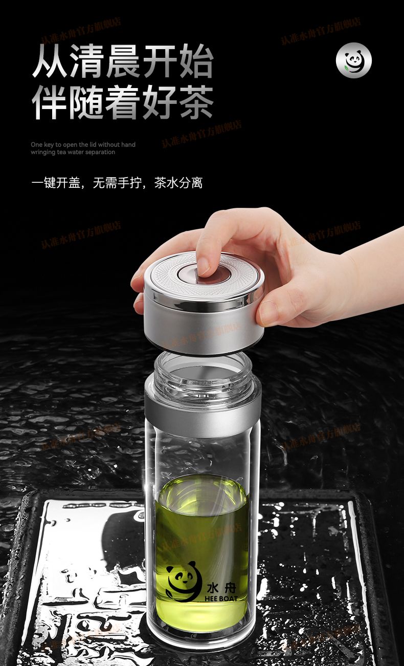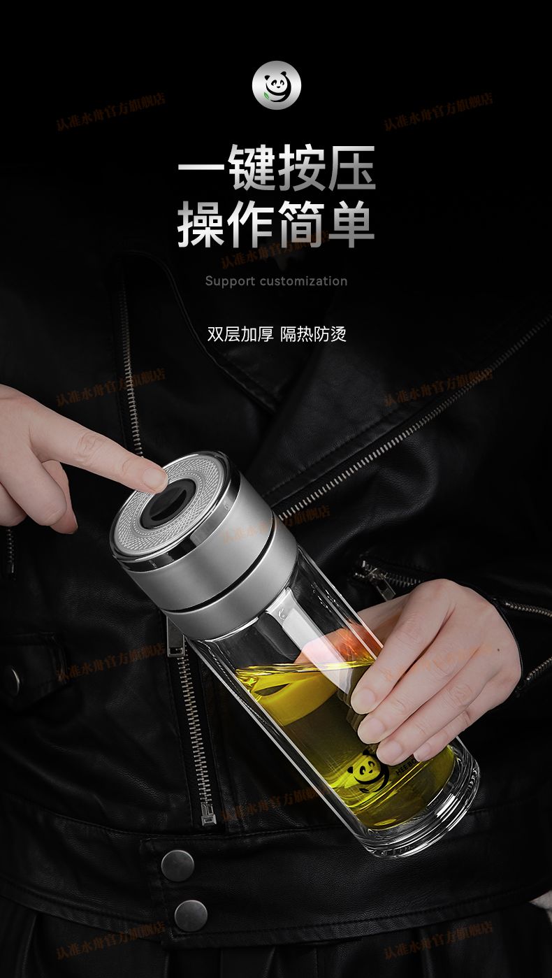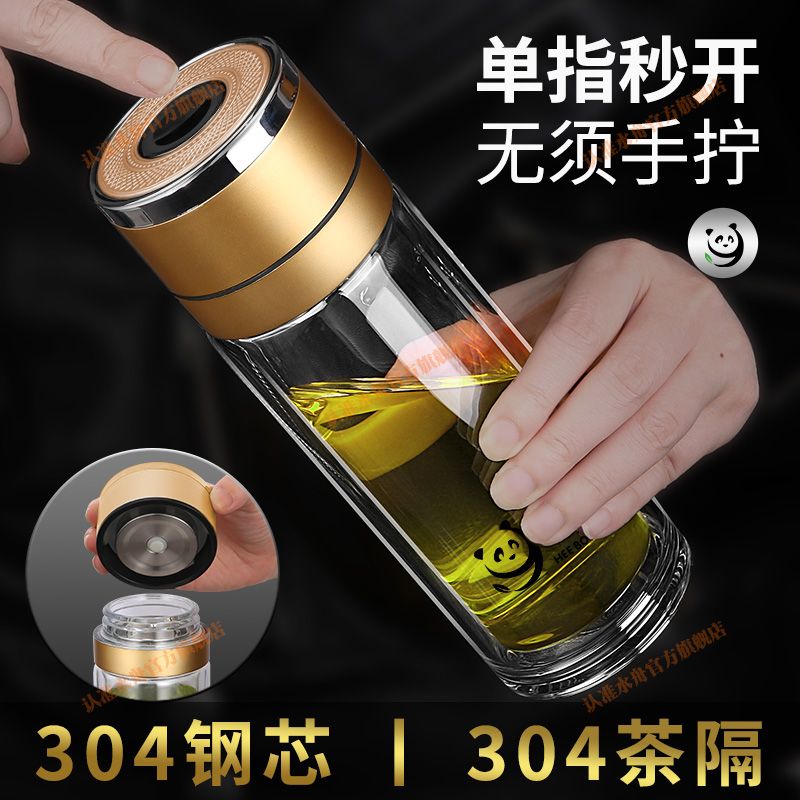 按压式玻璃杯双层男士全自动旋转式茶水分离杯机械旋转杯盖水杯子