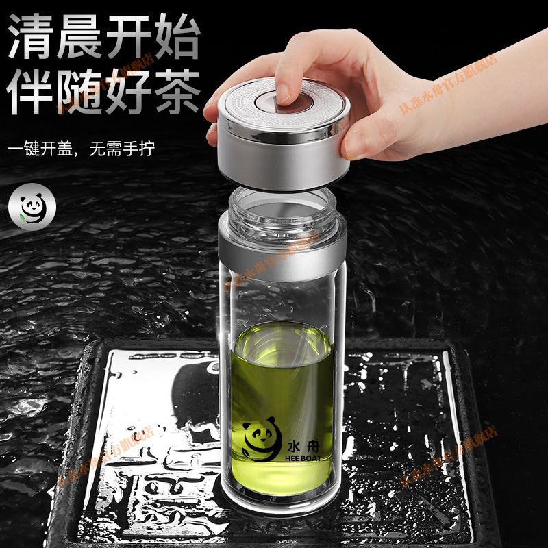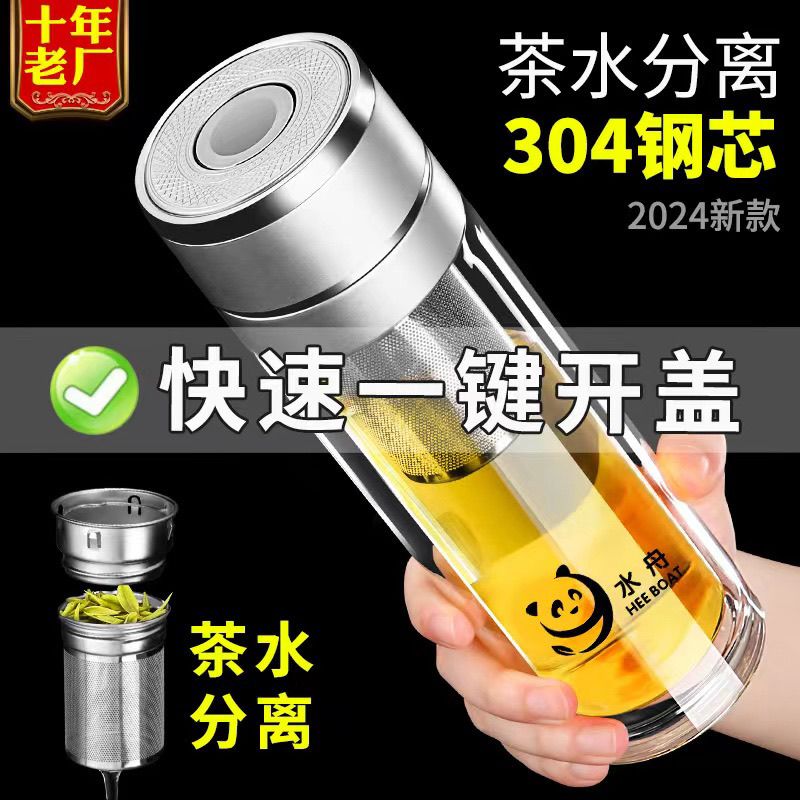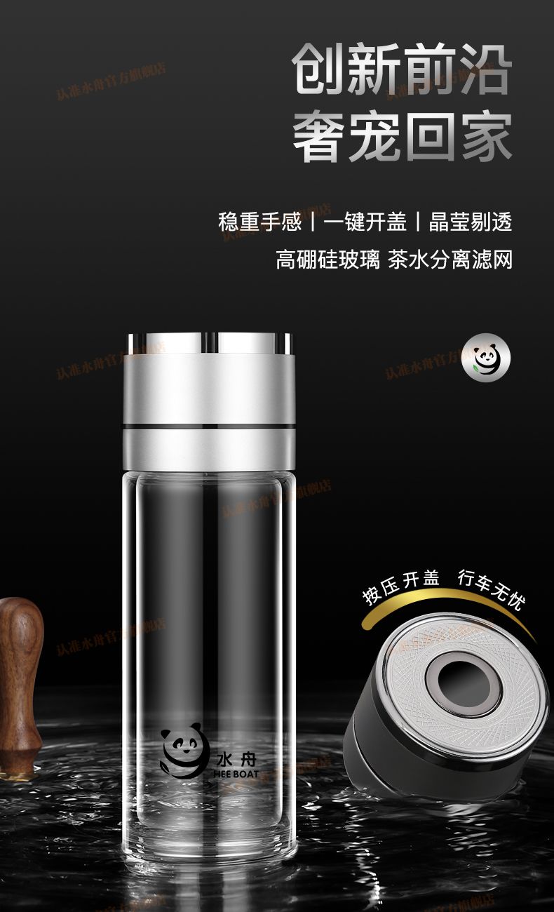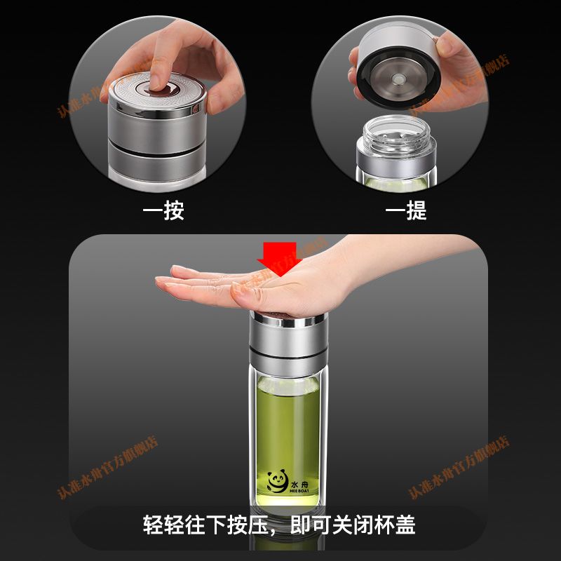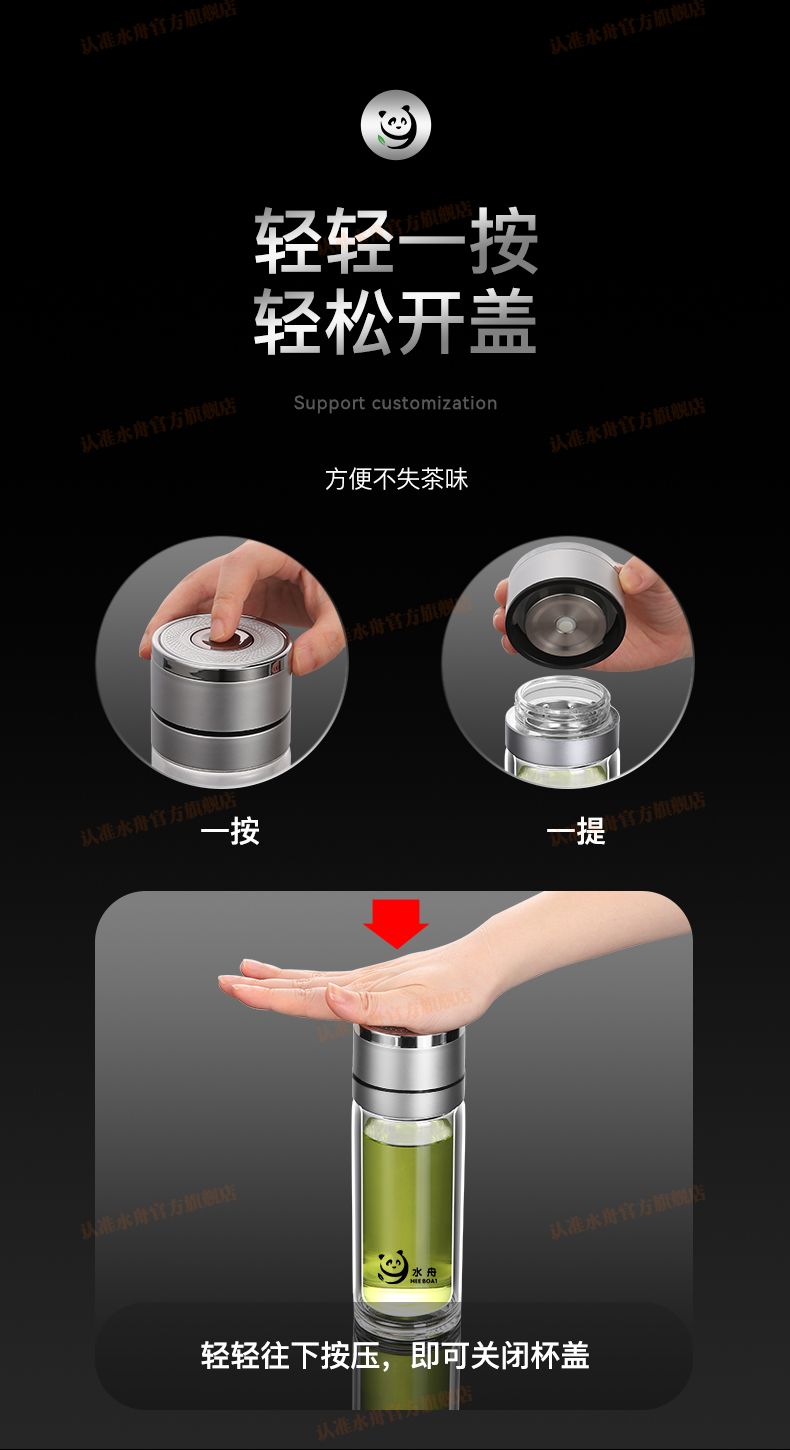 按压式玻璃杯双层男士全自动旋转式茶水分离杯机械旋转杯盖水杯子