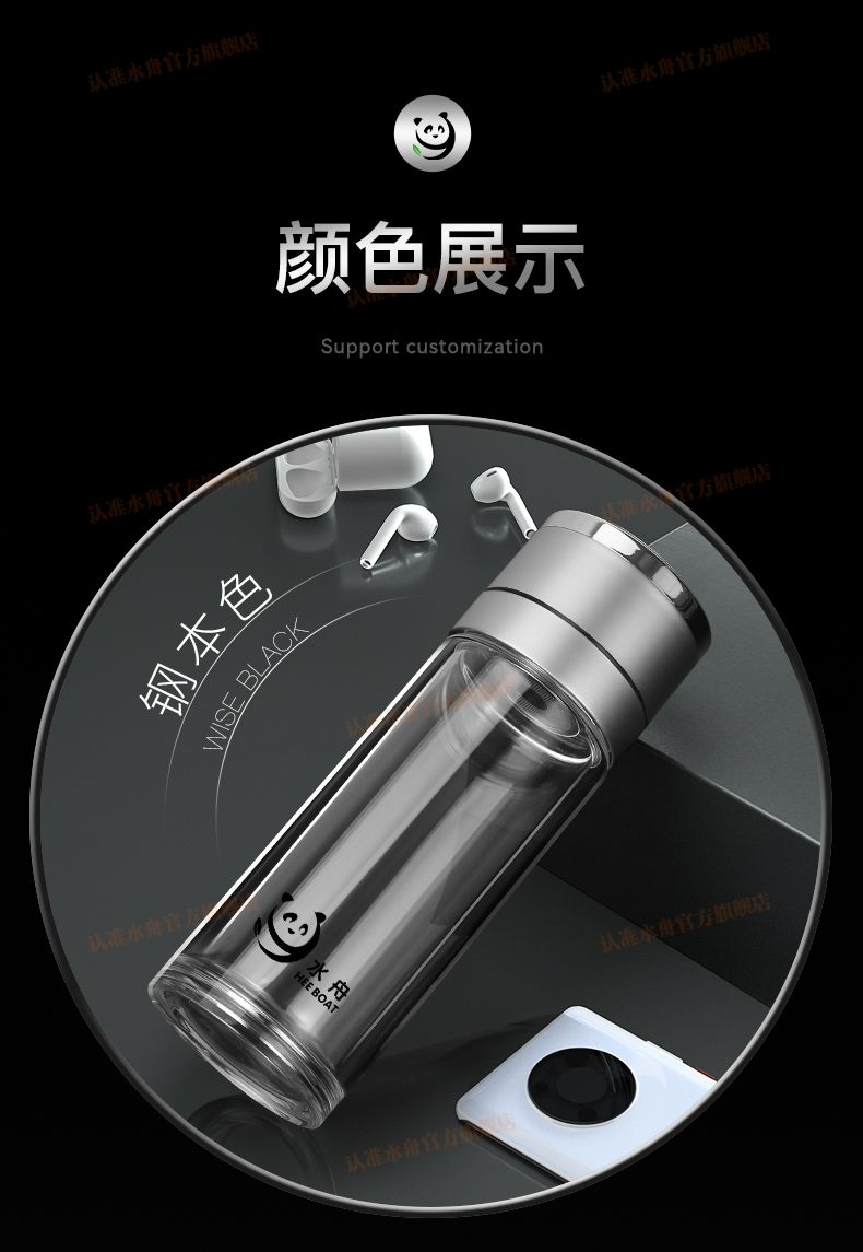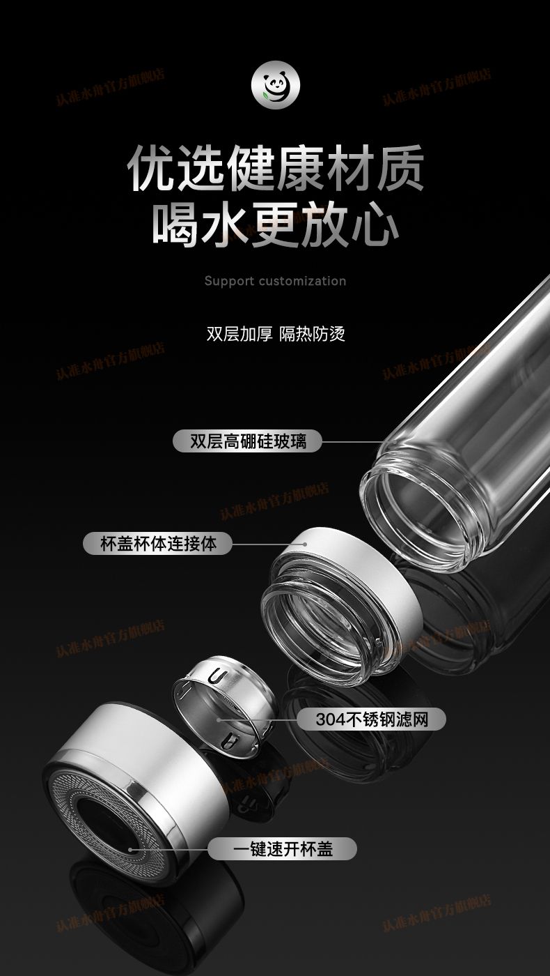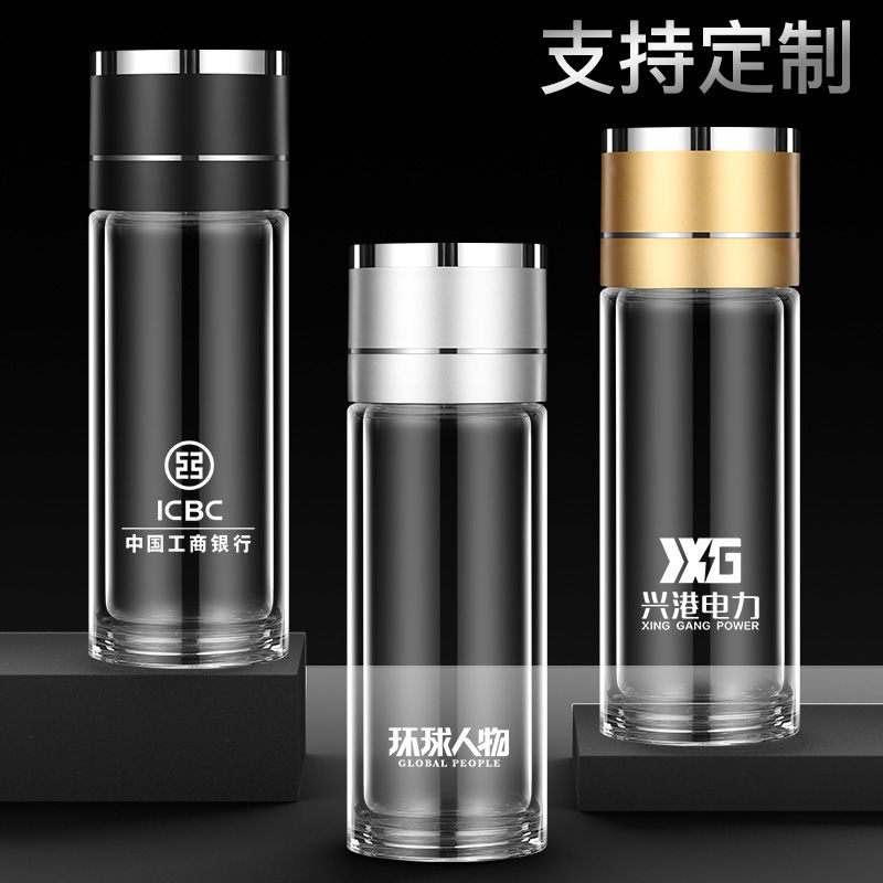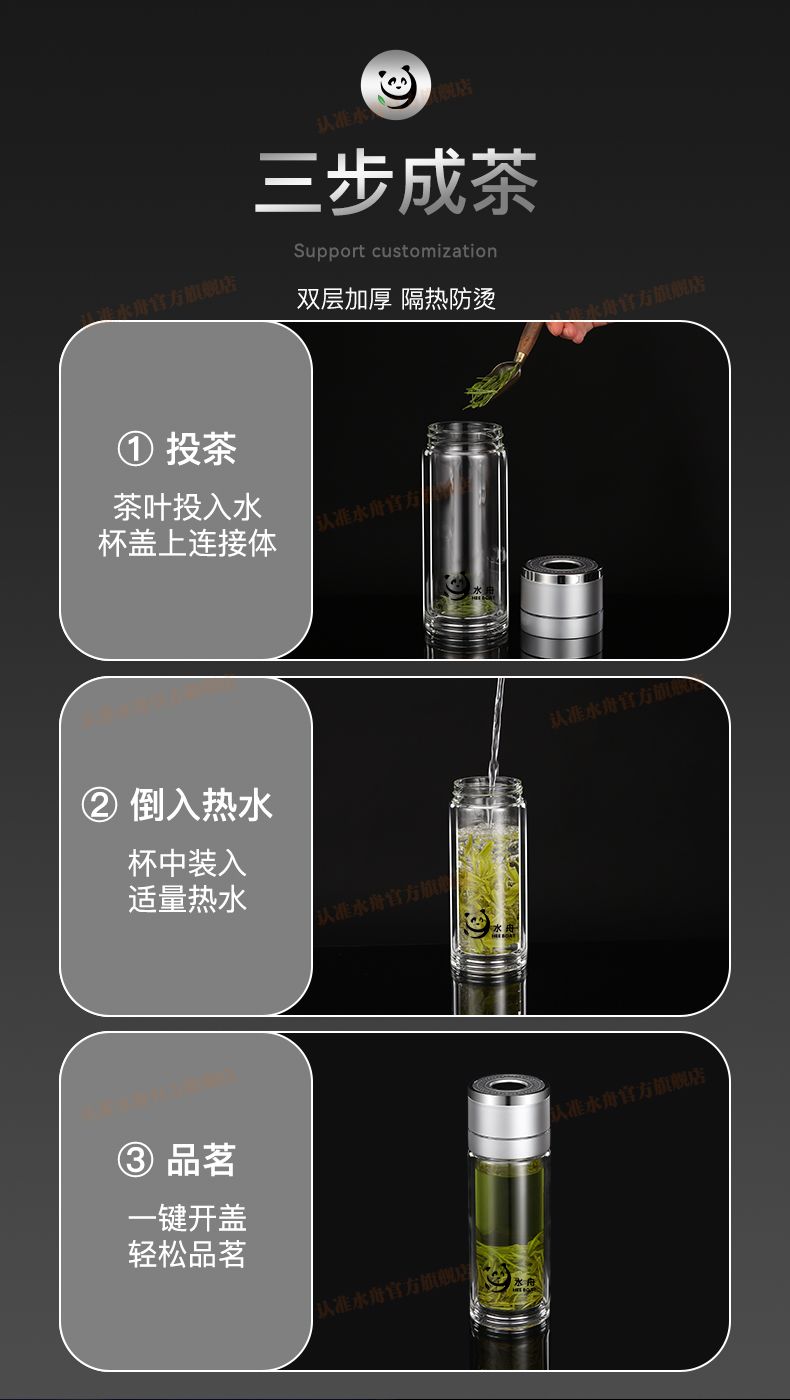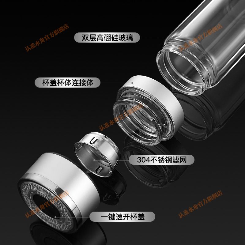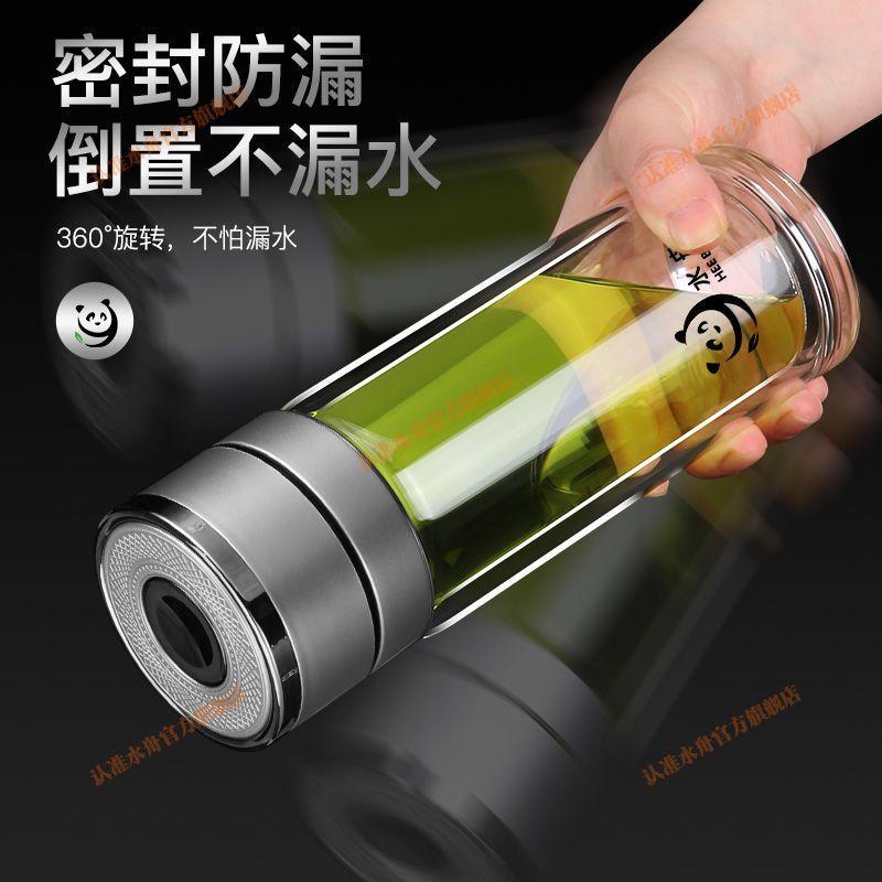 按压式玻璃杯双层男士全自动旋转式茶水分离杯机械旋转杯盖水杯子