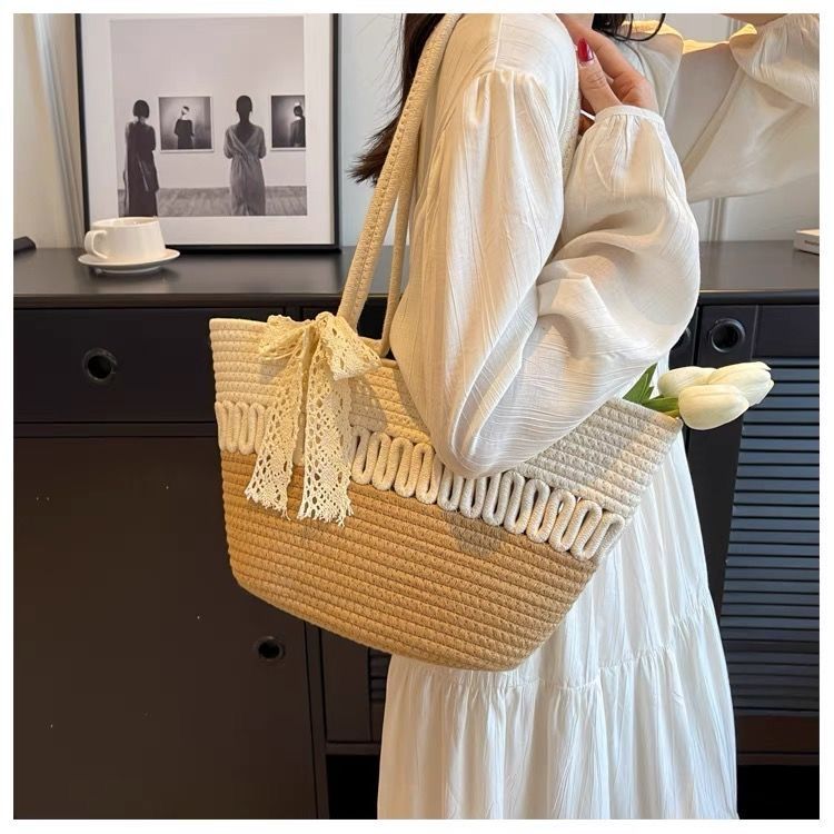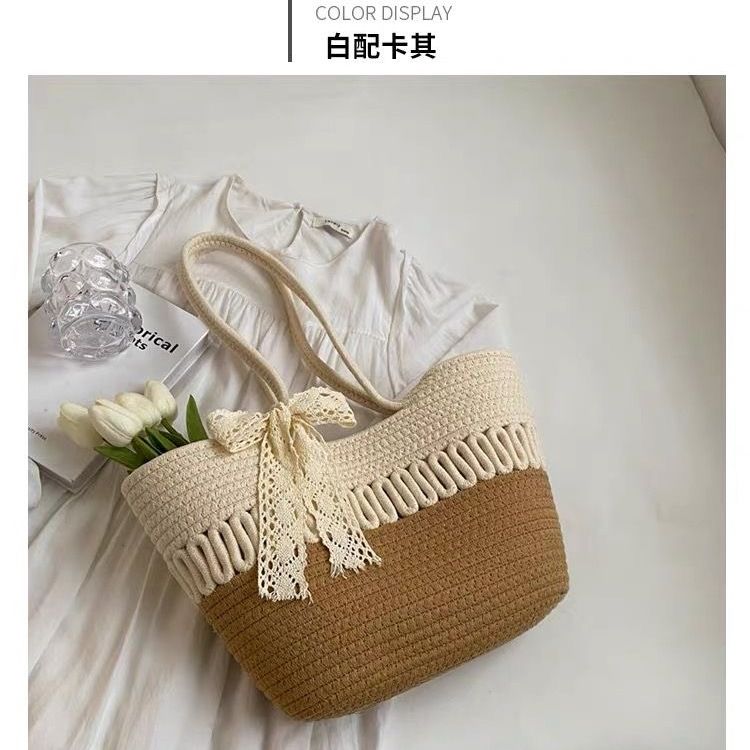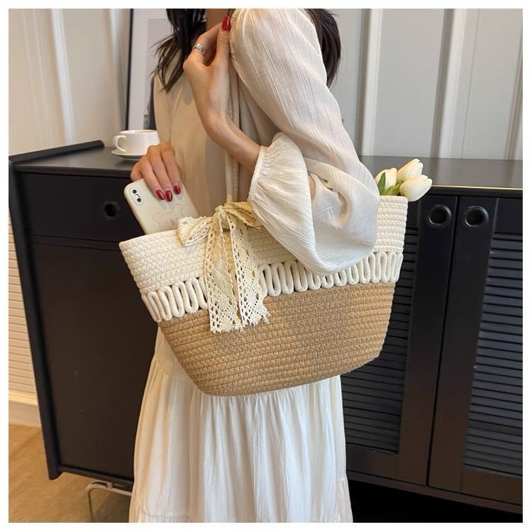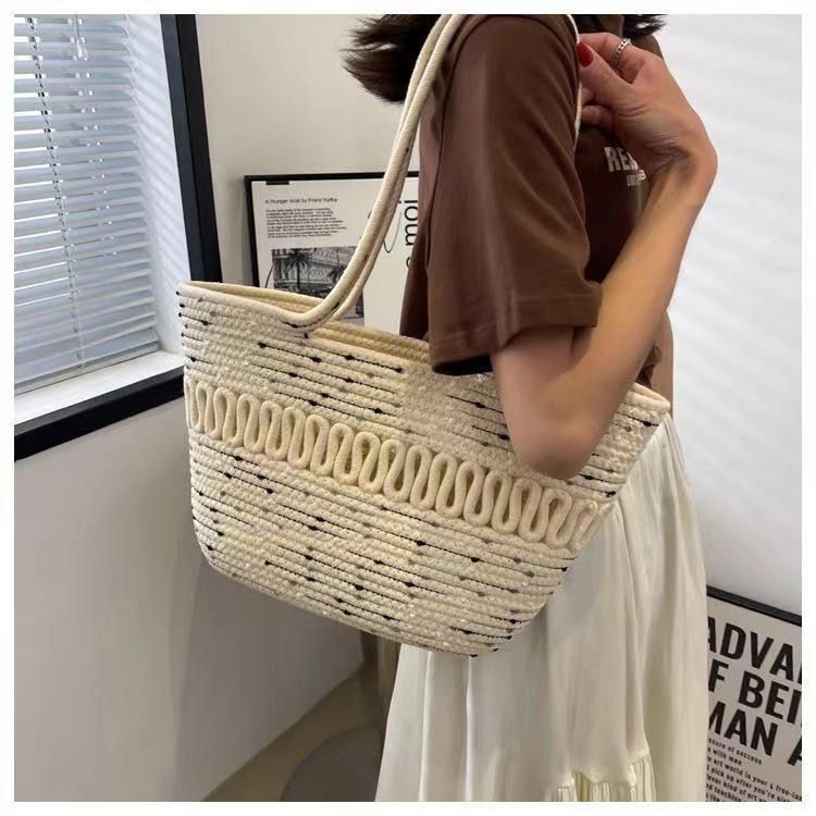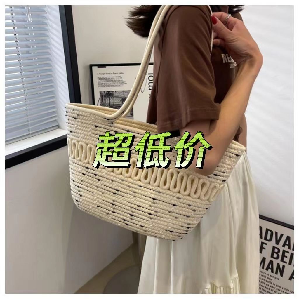 大容量新款夏季时尚镂空沙滩草编百搭单肩手提法式编织包托特包