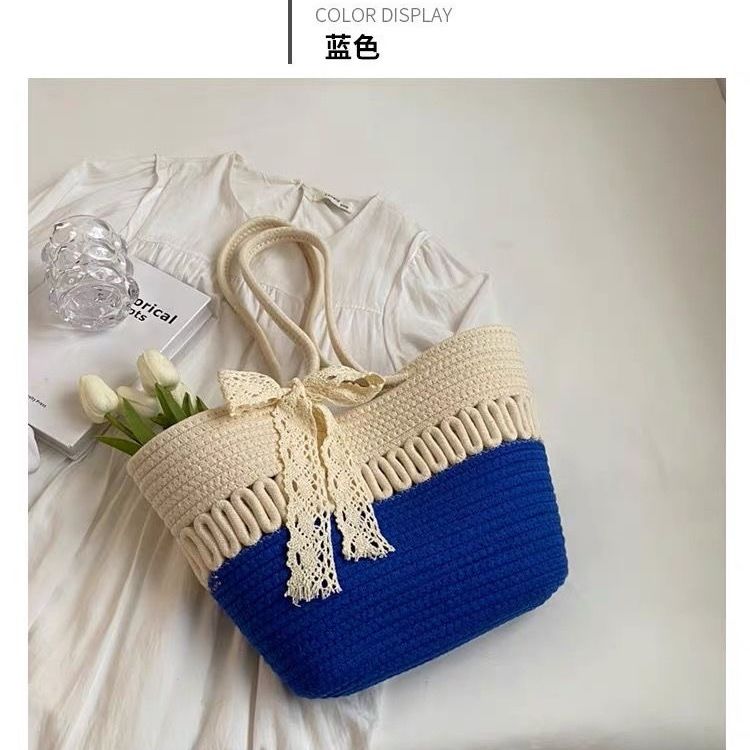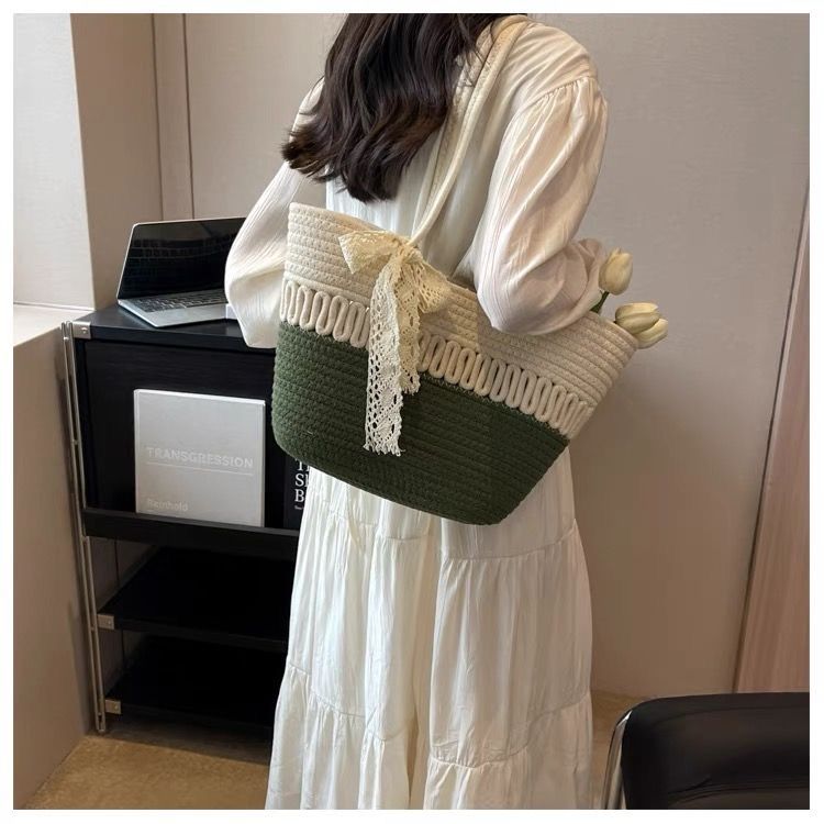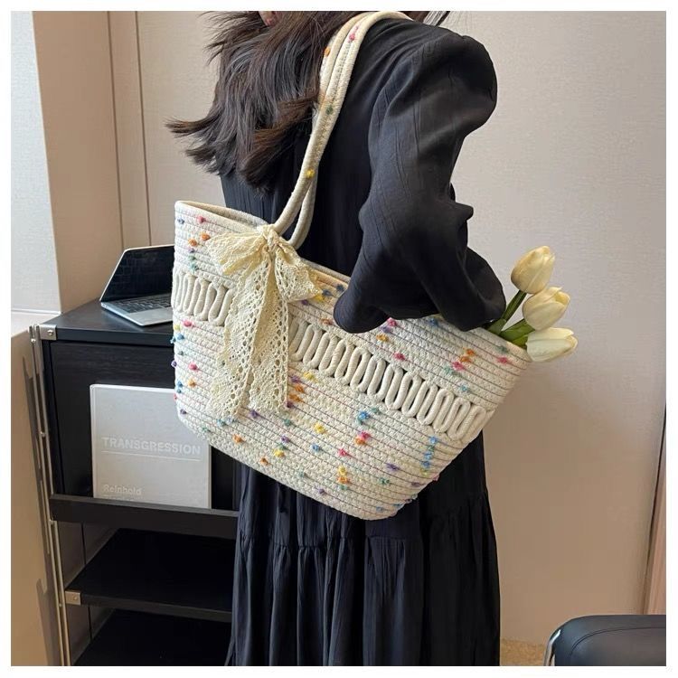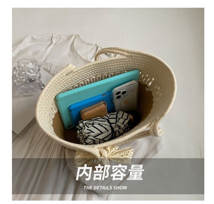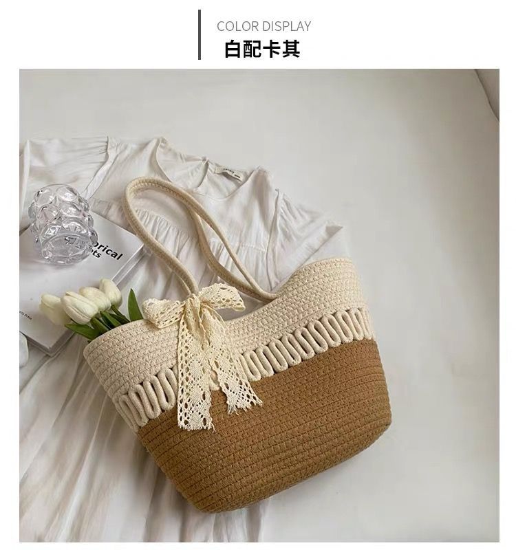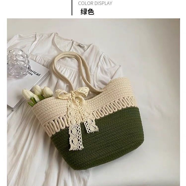 大容量新款夏季时尚镂空沙滩草编百搭单肩手提法式编织包托特包