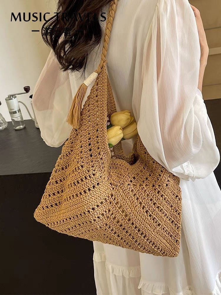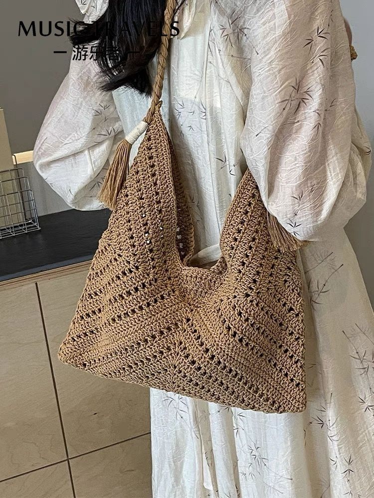 店长推荐精美草编包手工编织小众镂空三角包通勤单肩包海边度假包
