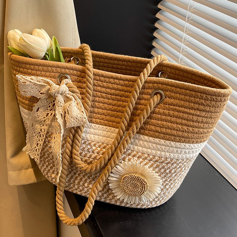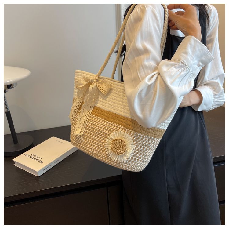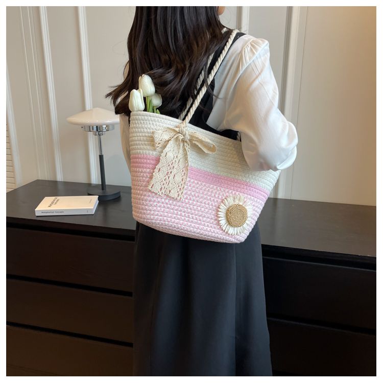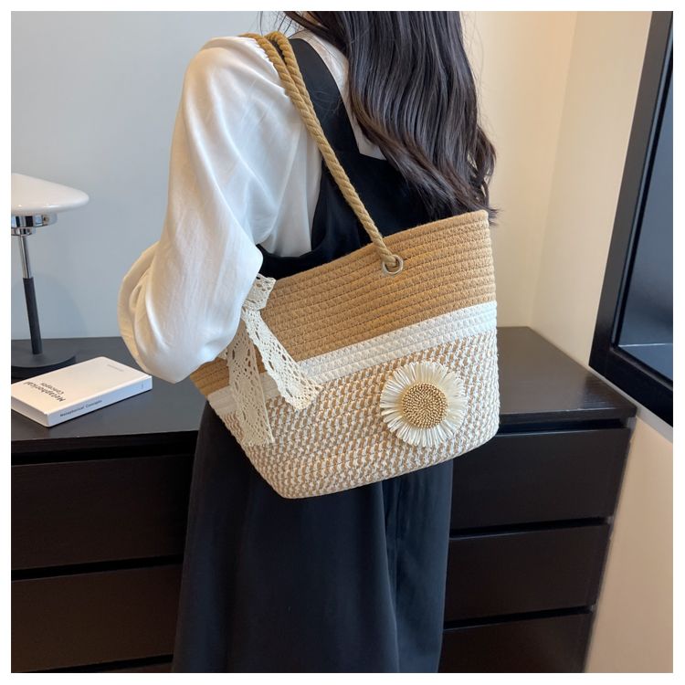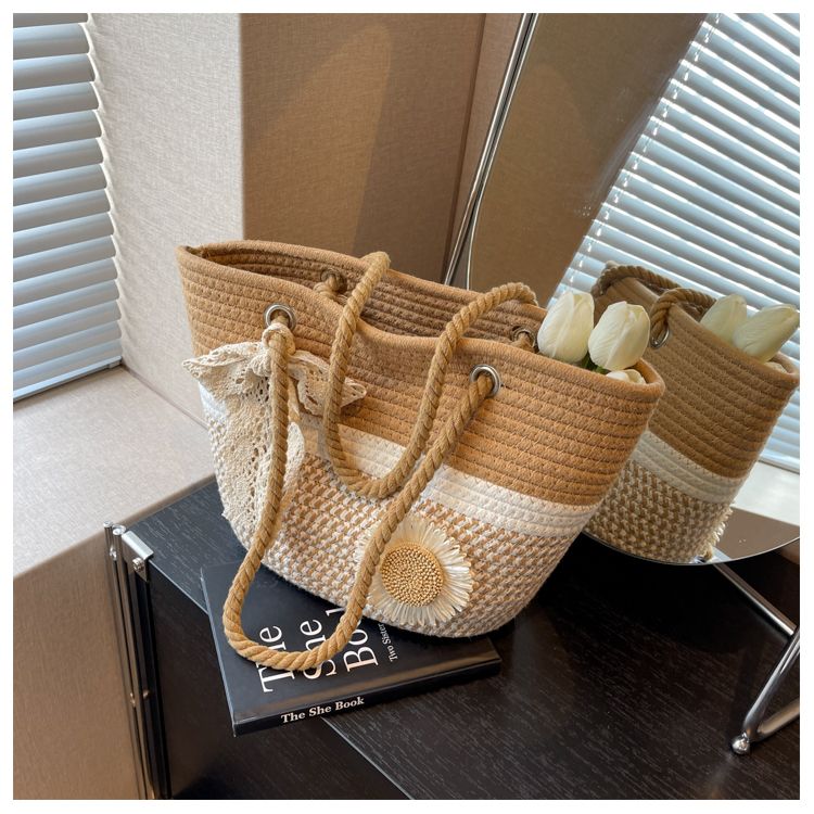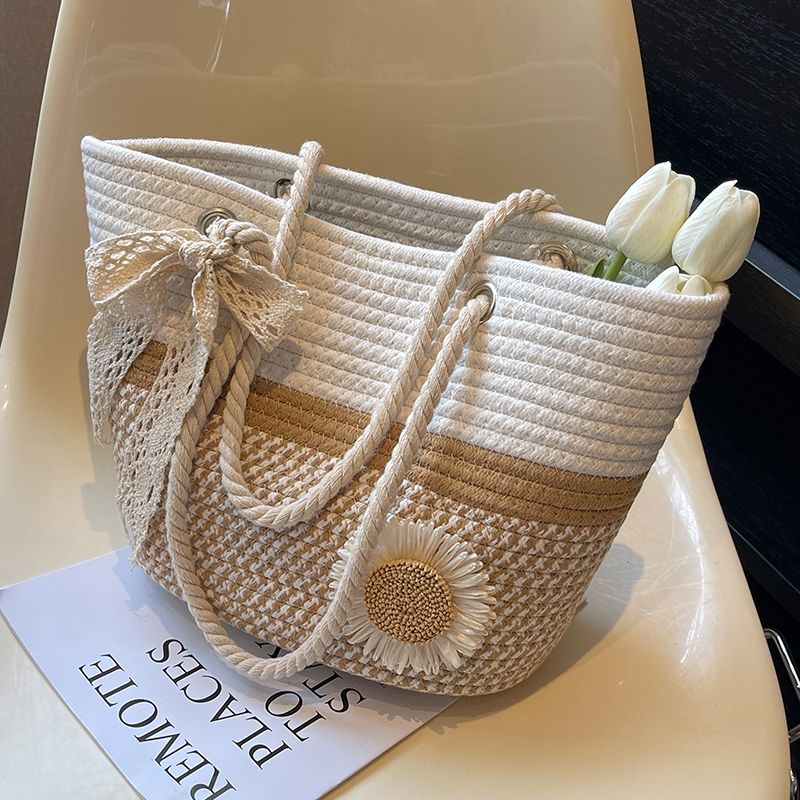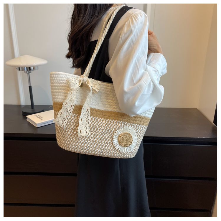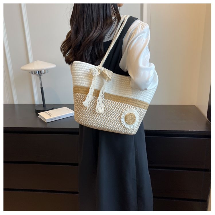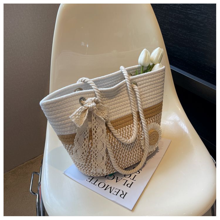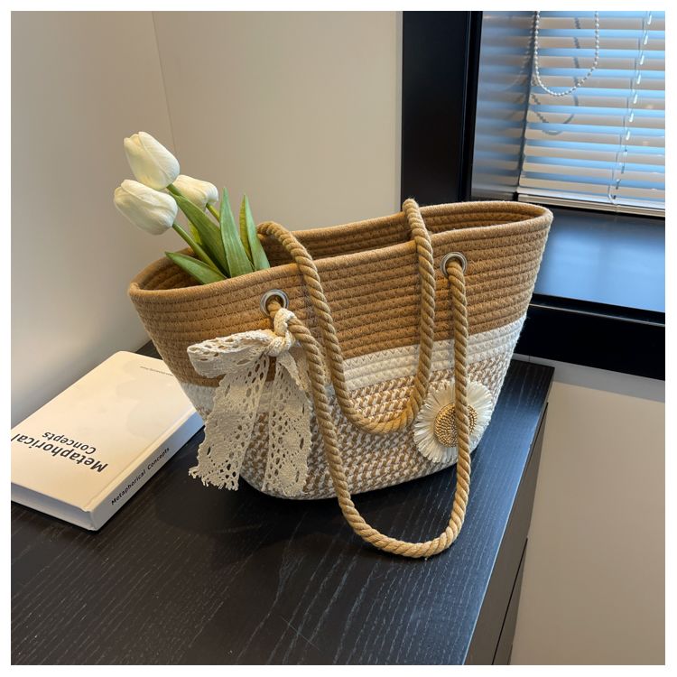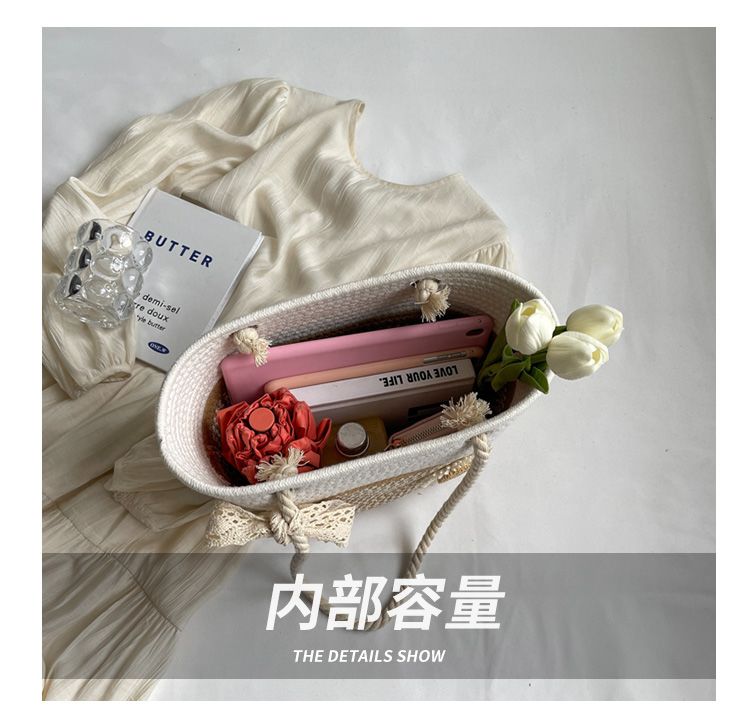 大容量包包女2025夏天编织包森系夏季手提包大学生上课通勤托特包