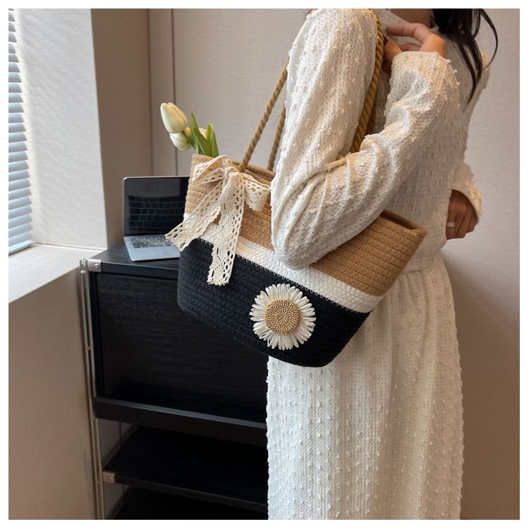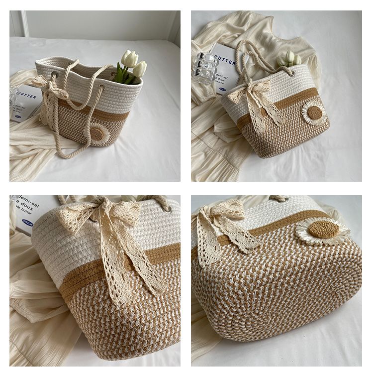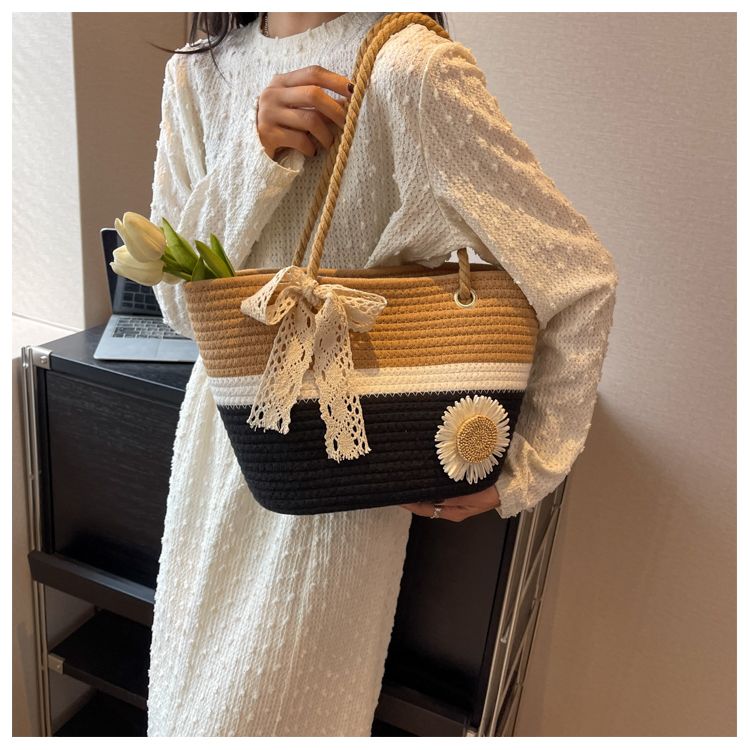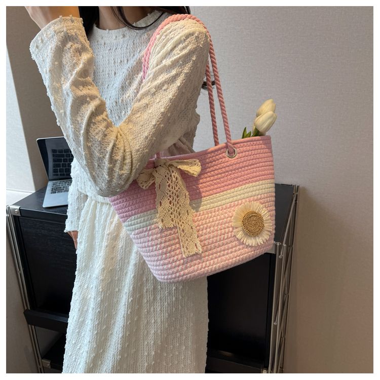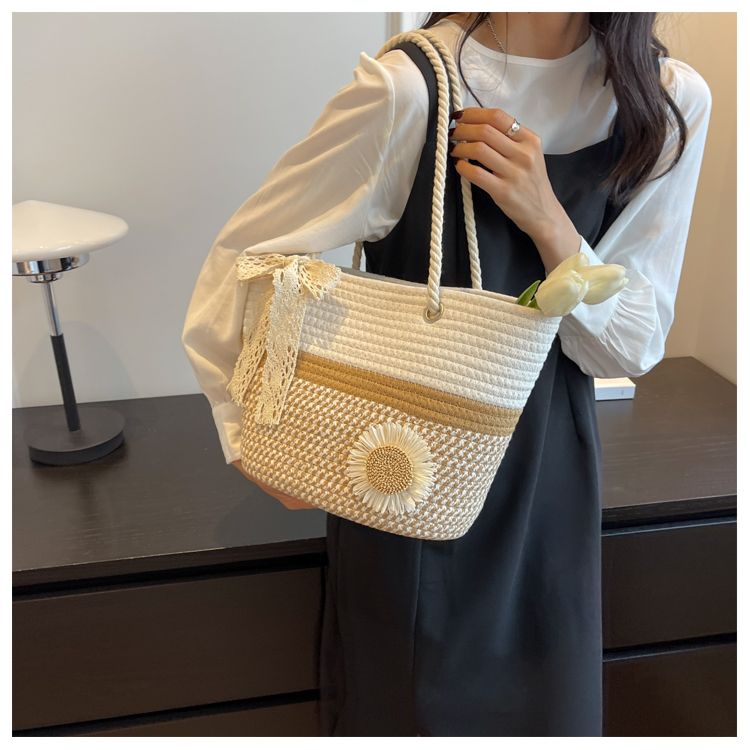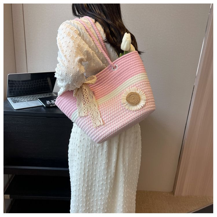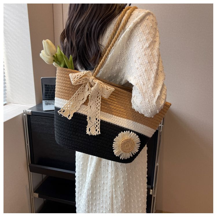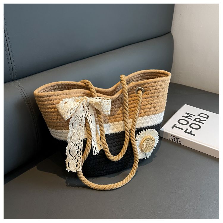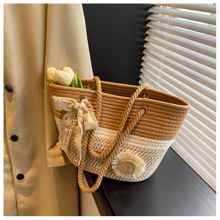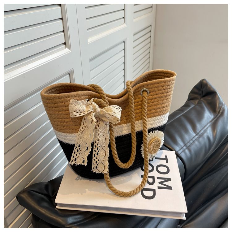 大容量包包女2025夏天编织包森系夏季手提包大学生上课通勤托特包