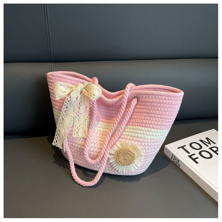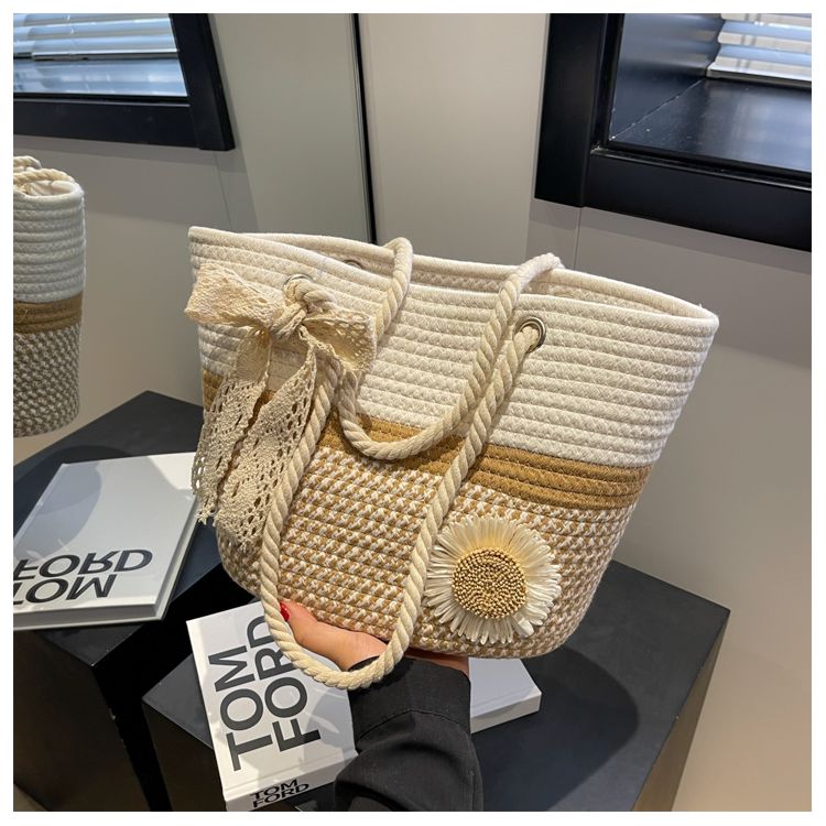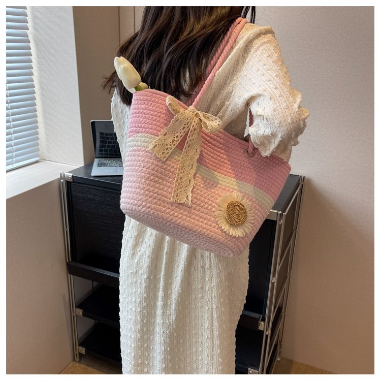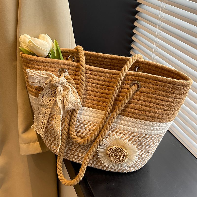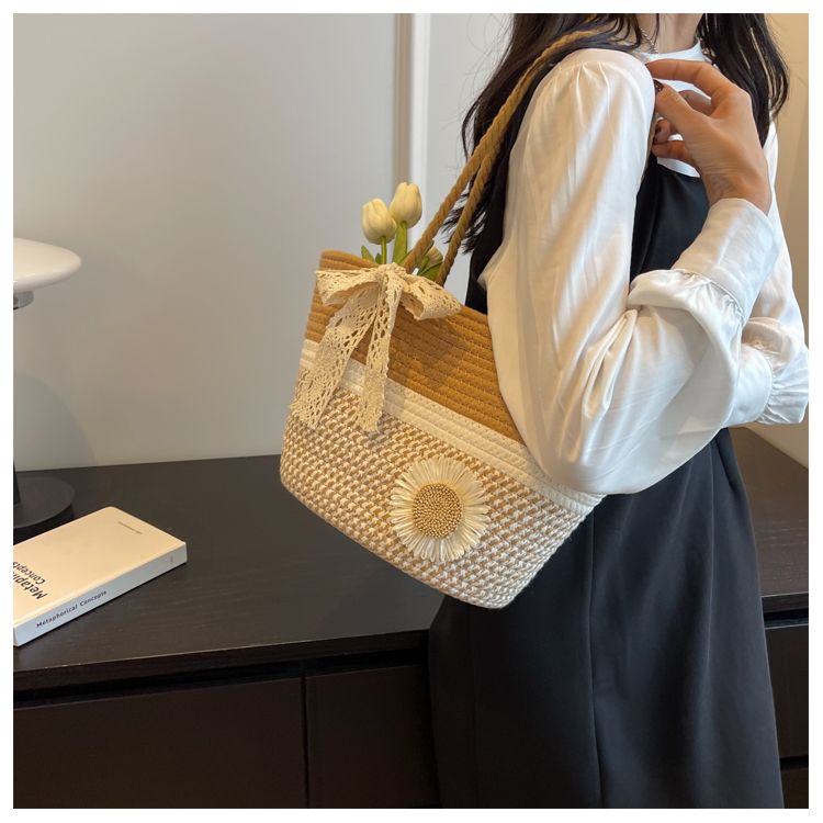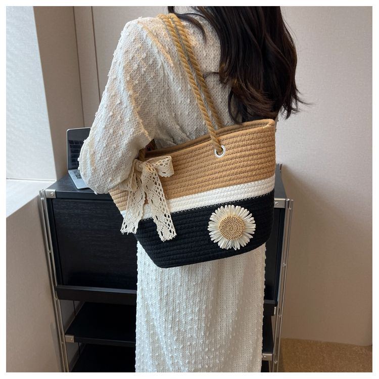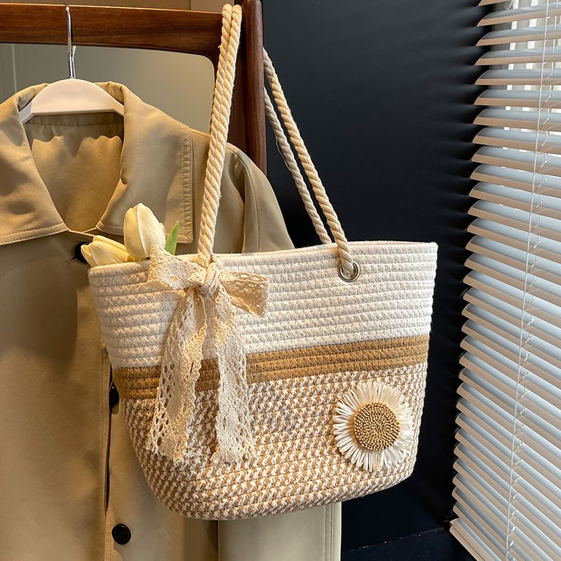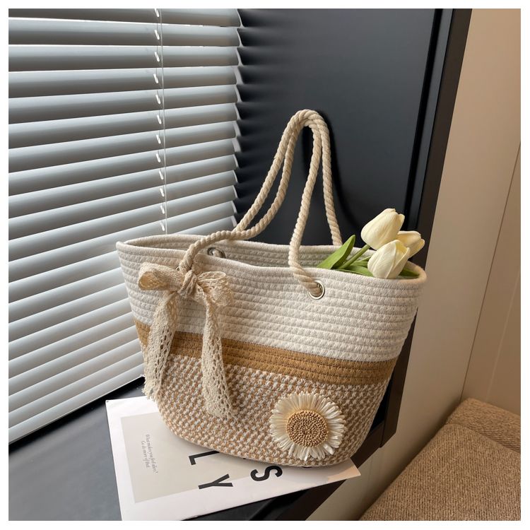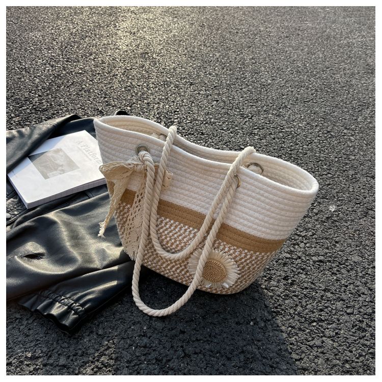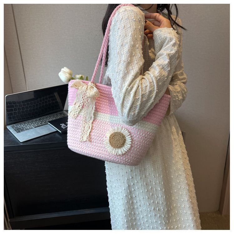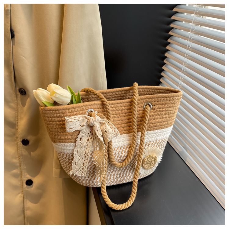 大容量包包女2025夏天编织包森系夏季手提包大学生上课通勤托特包