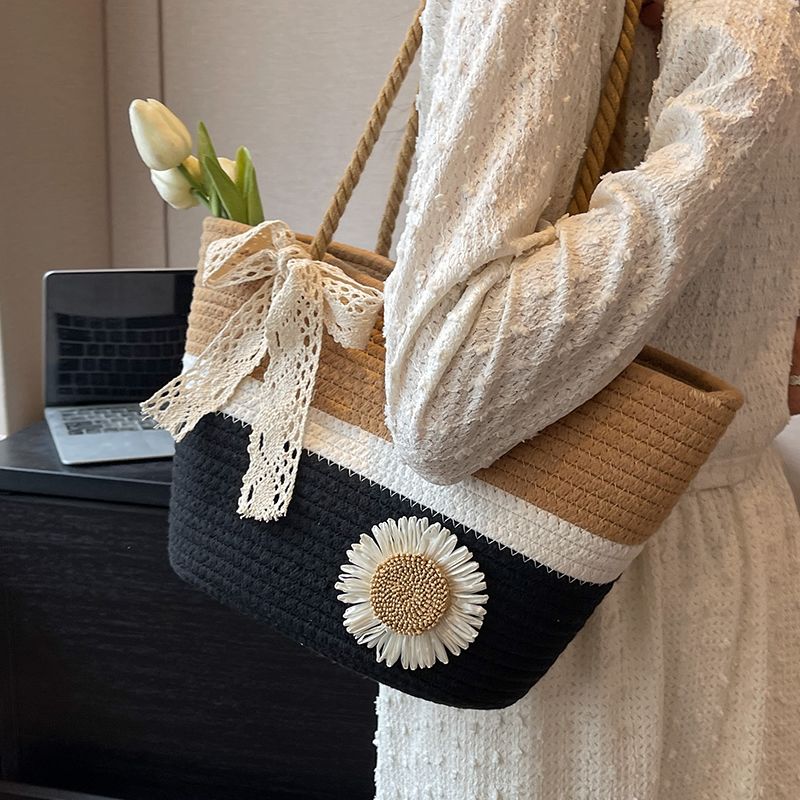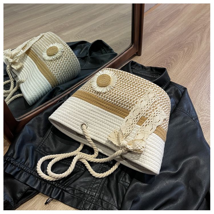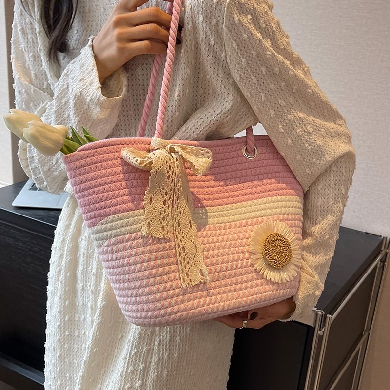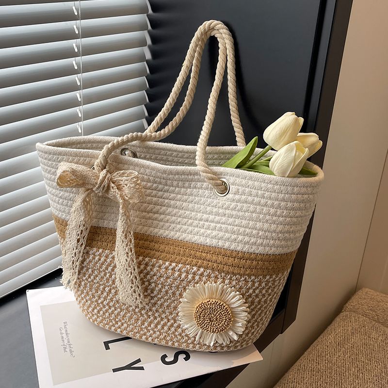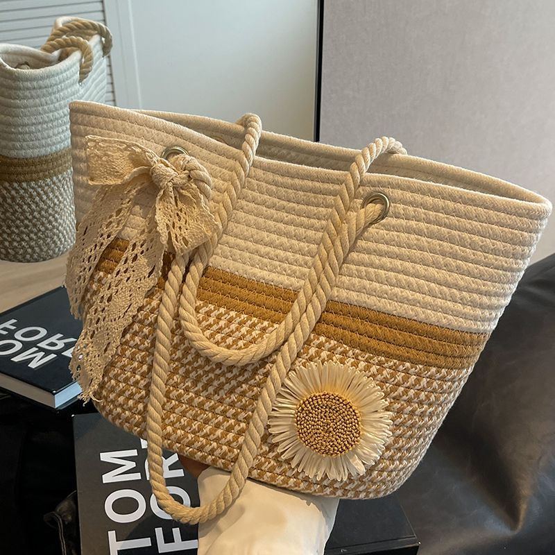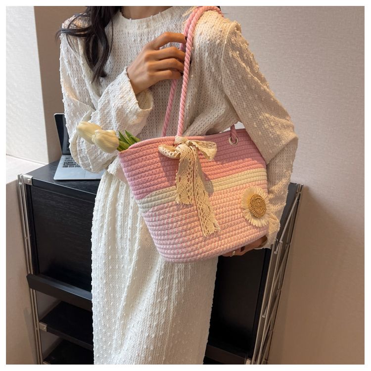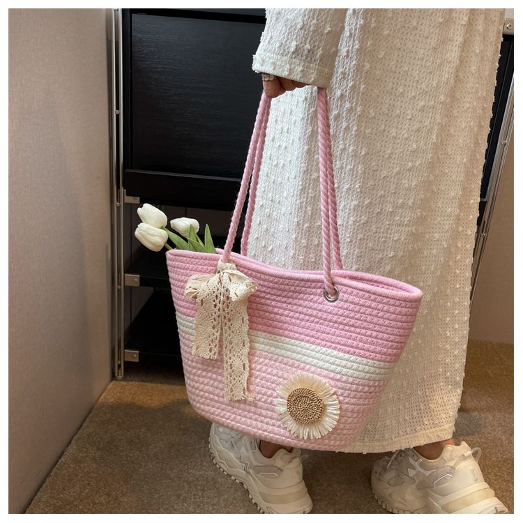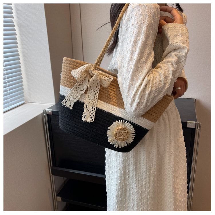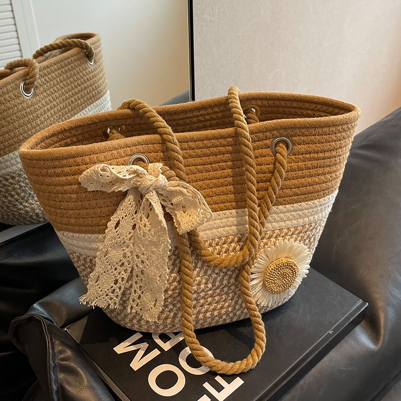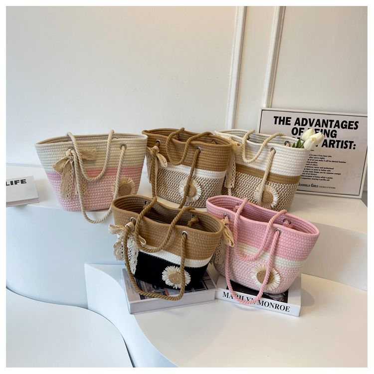 大容量包包女2025夏天编织包森系夏季手提包大学生上课通勤托特包