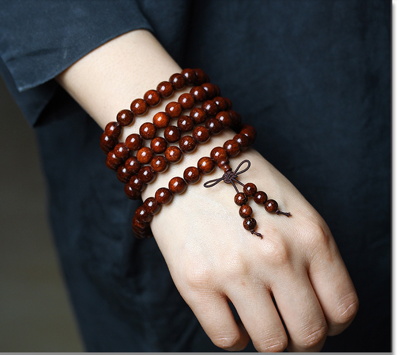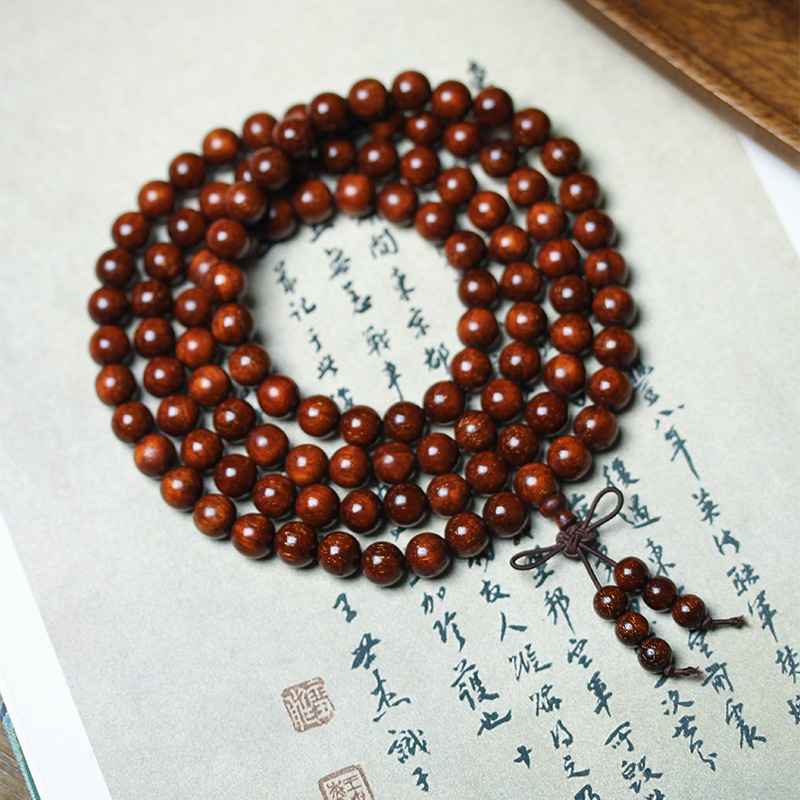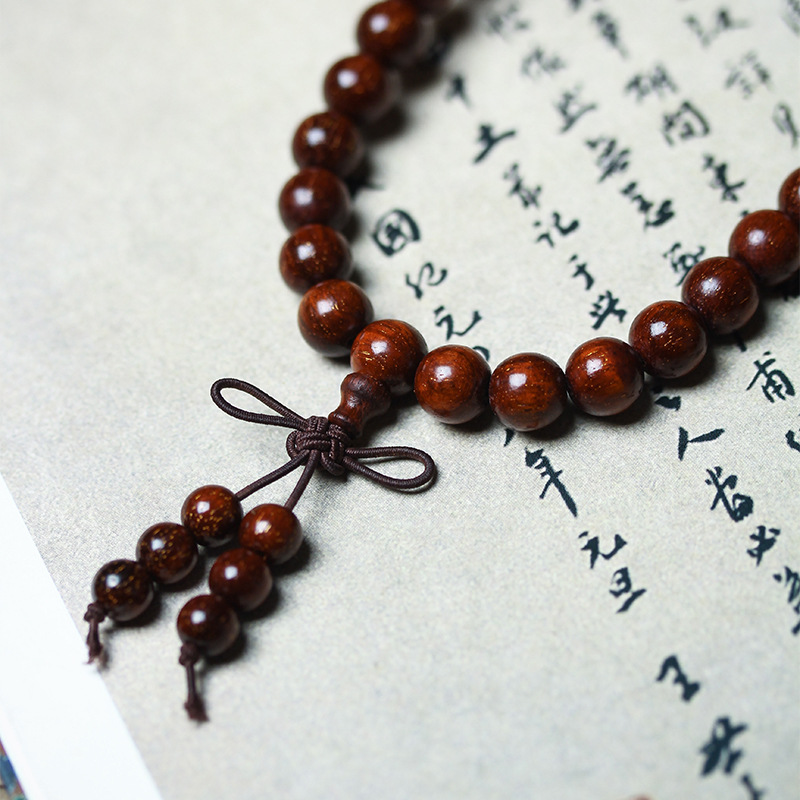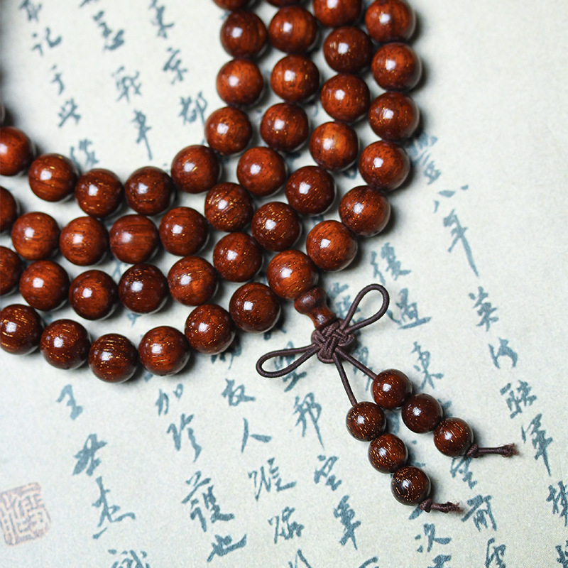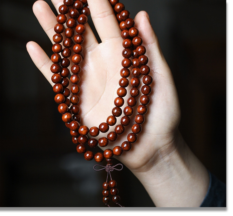 天然印尼真金星小叶紫檀木高密沉水血檀108盘文玩男女士手串