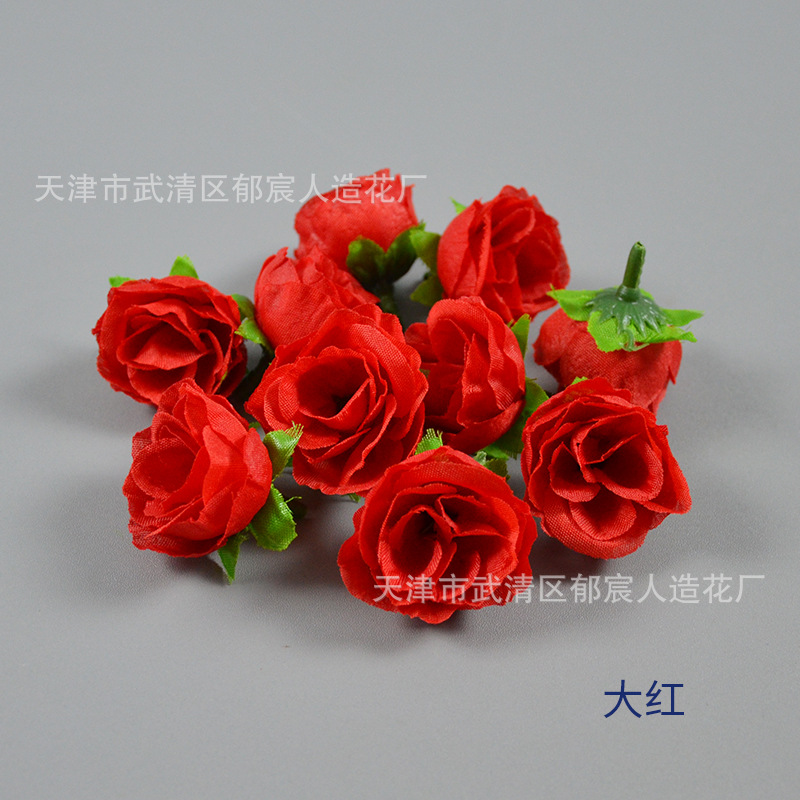 仿真玫瑰花苞批发喜糖盒伴手礼装饰小玫瑰花蕾胸花头饰花绢布假花