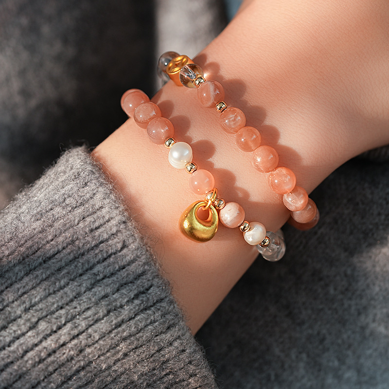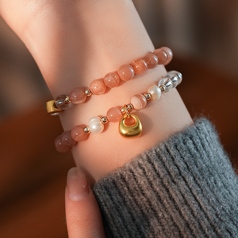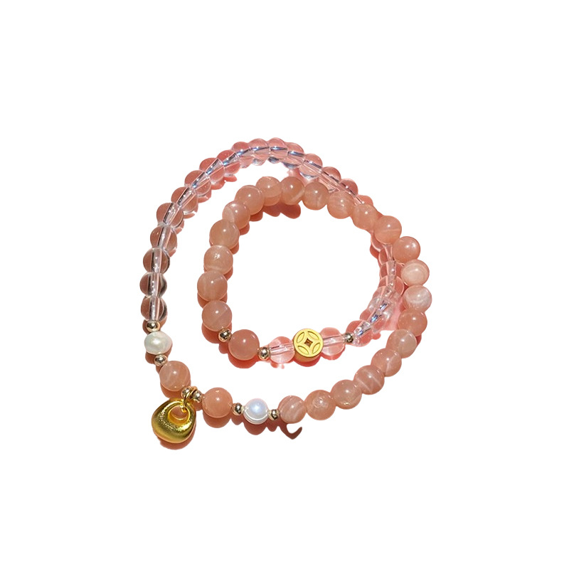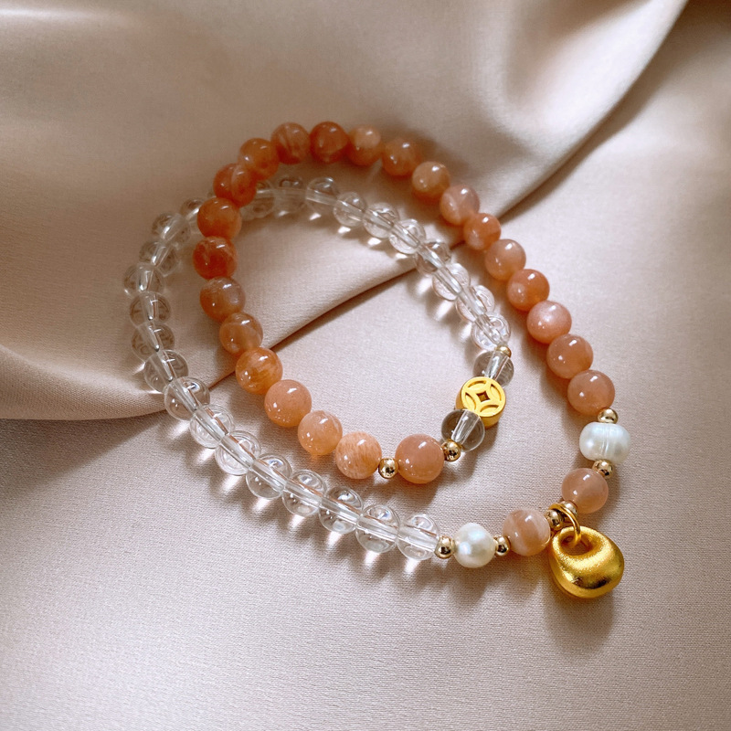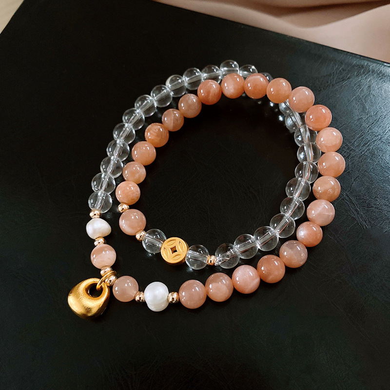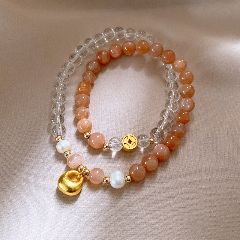 新中式铜钱福包金太阳水晶水晶手链可叠戴手串国潮复古高级感手饰