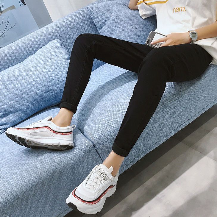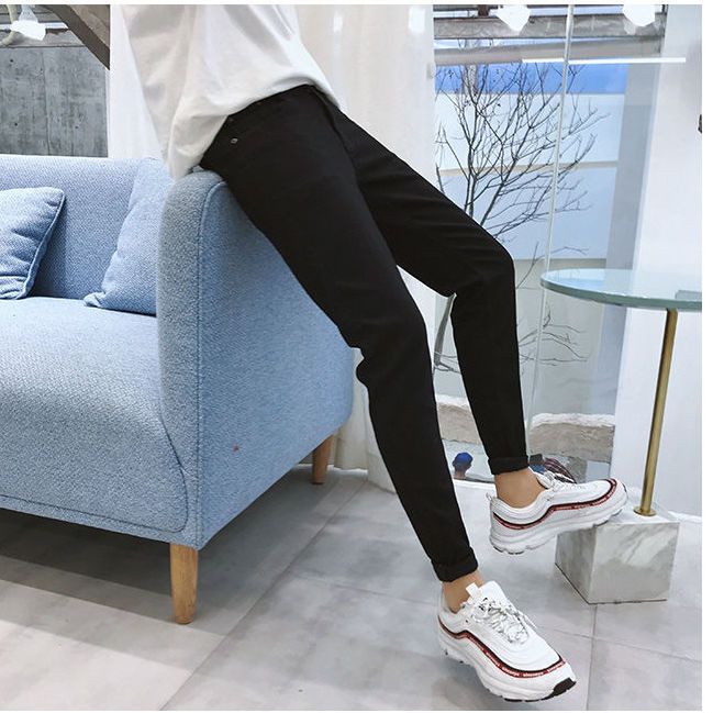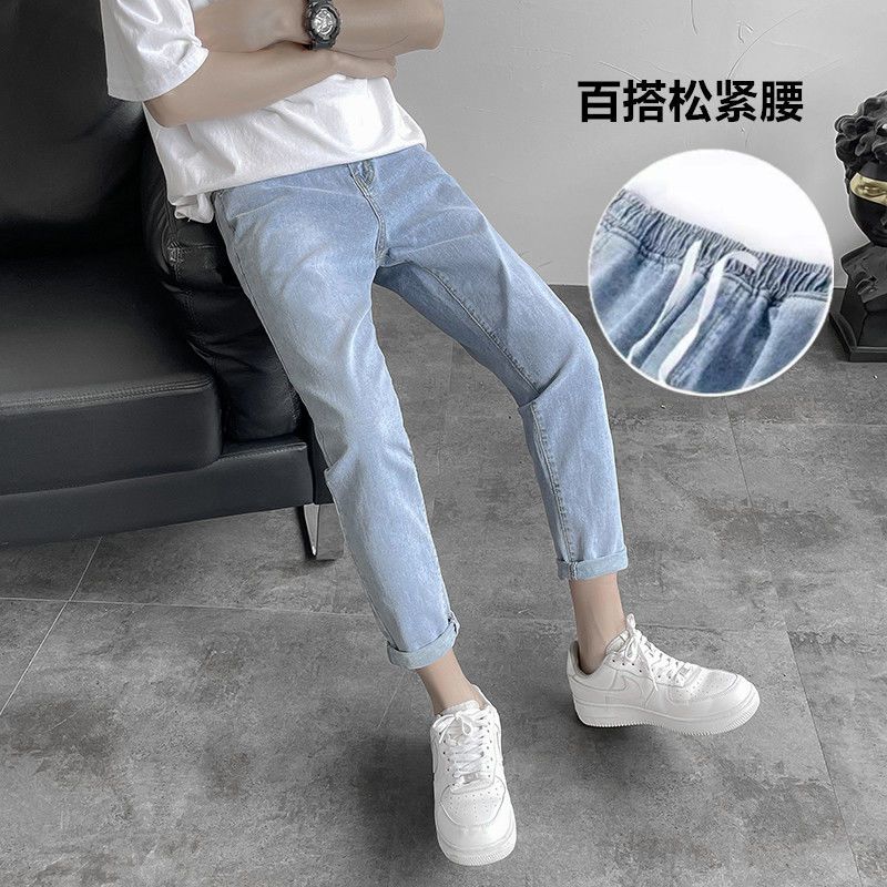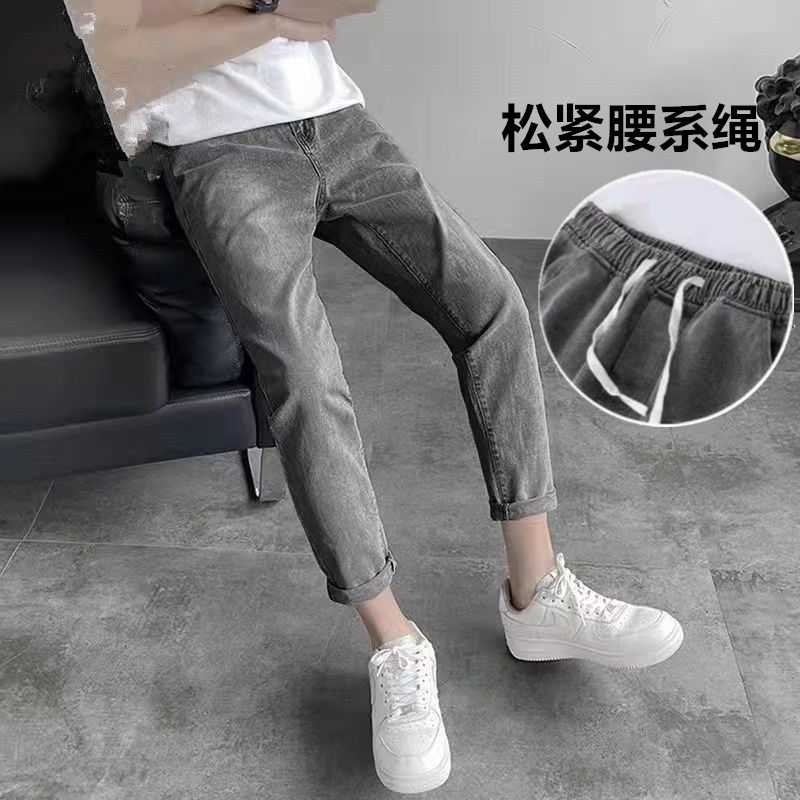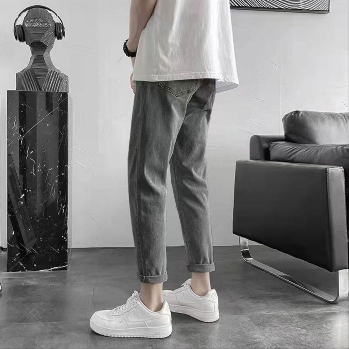 黑灰色百搭小直筒牛仔裤男修身港风宽松春夏季薄款痞帅休闲九分裤