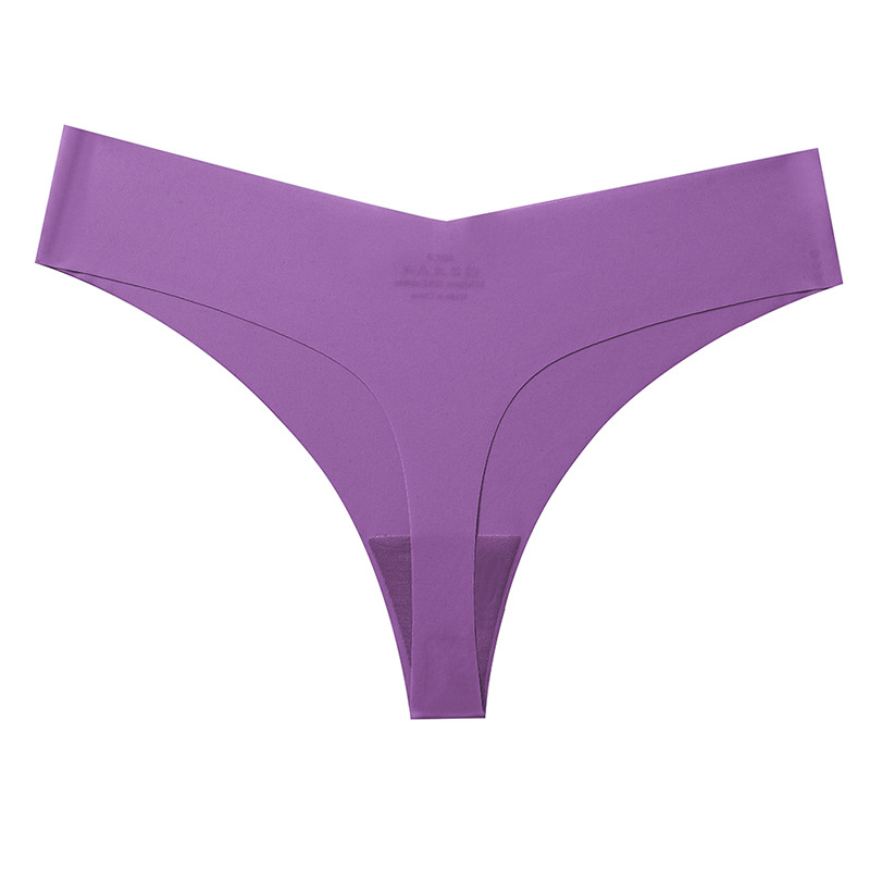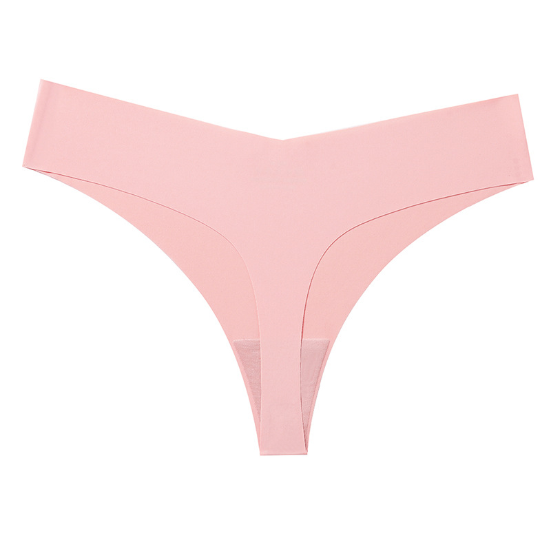 新款纯色冰丝无痕丁字裤V剪裁时尚内裤女大码裤头柔软舒适性感T裤
