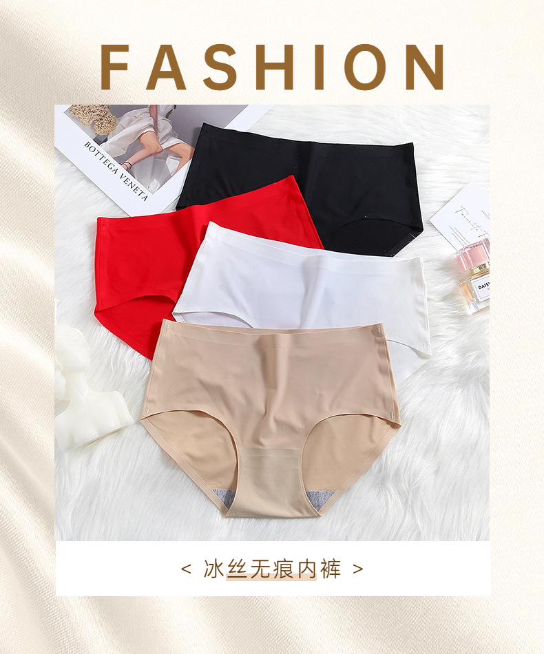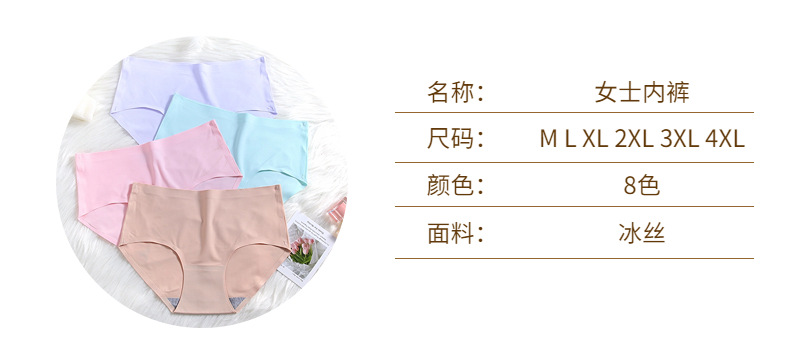 跨境舒适无痕内裤女士冰丝三角裤纯色透气大码裤头3XL4XL欧美爆款