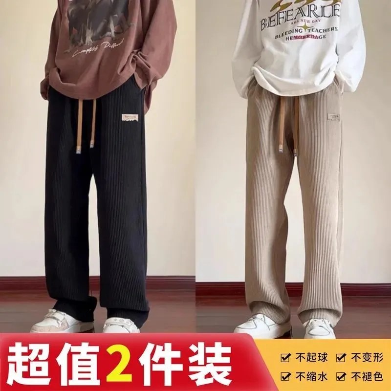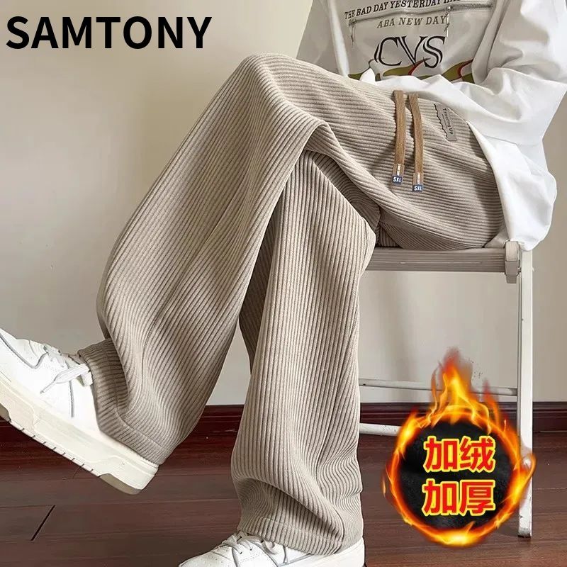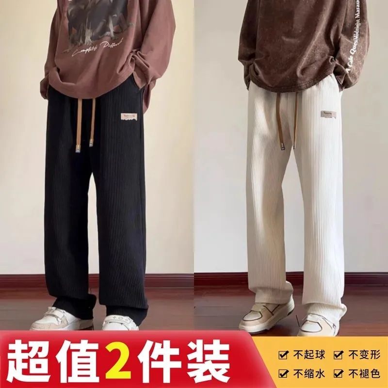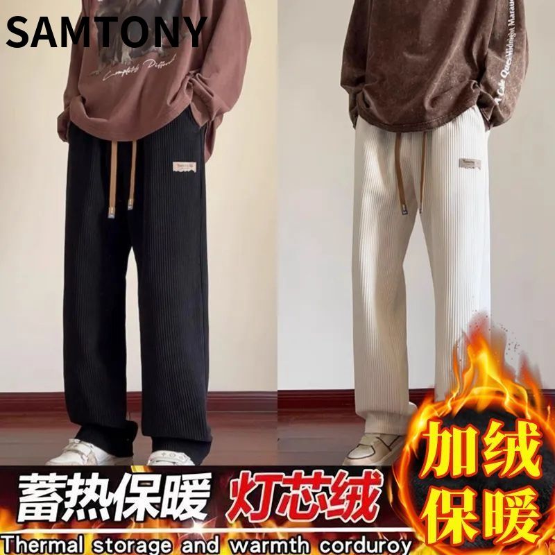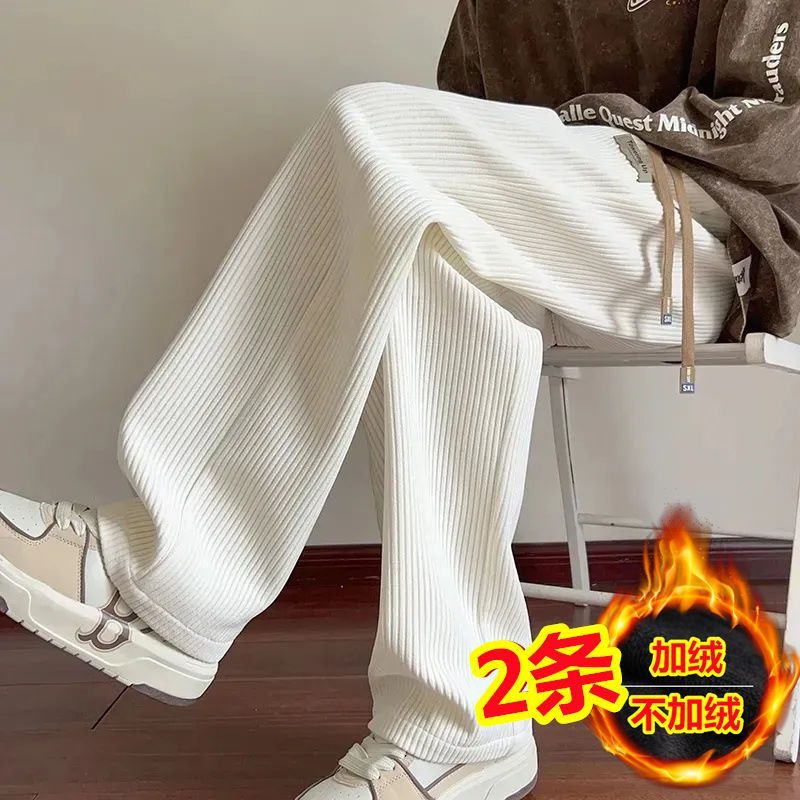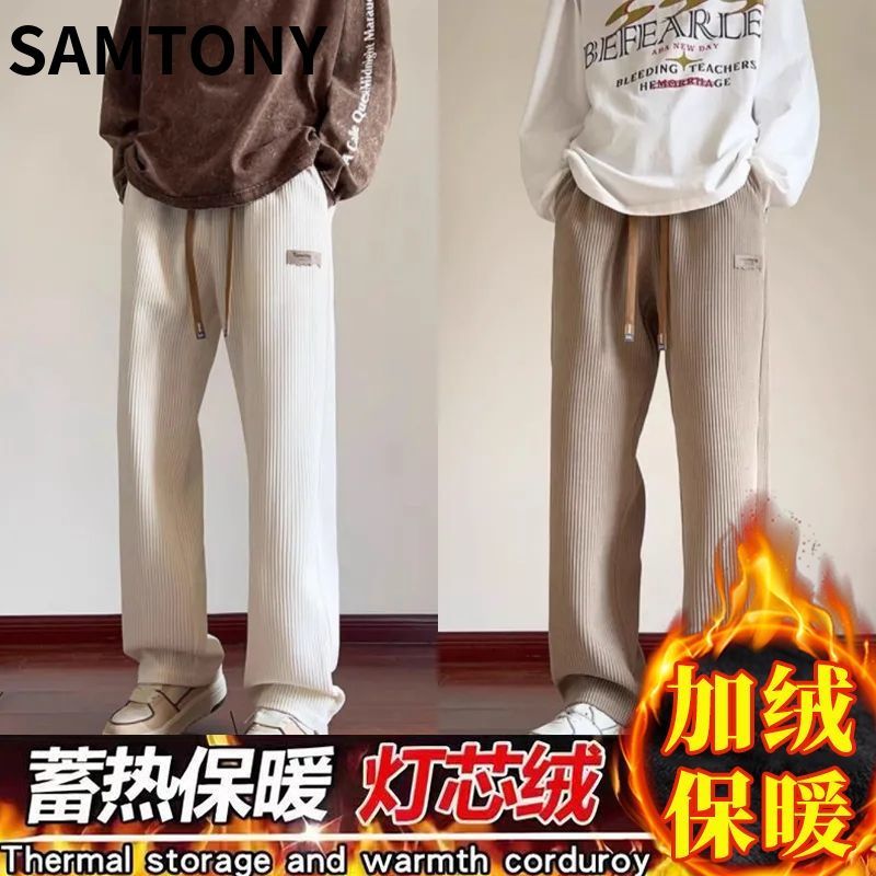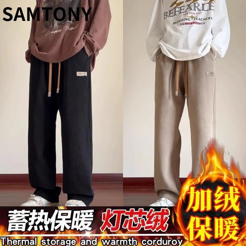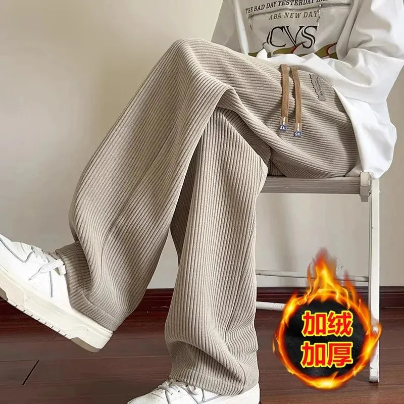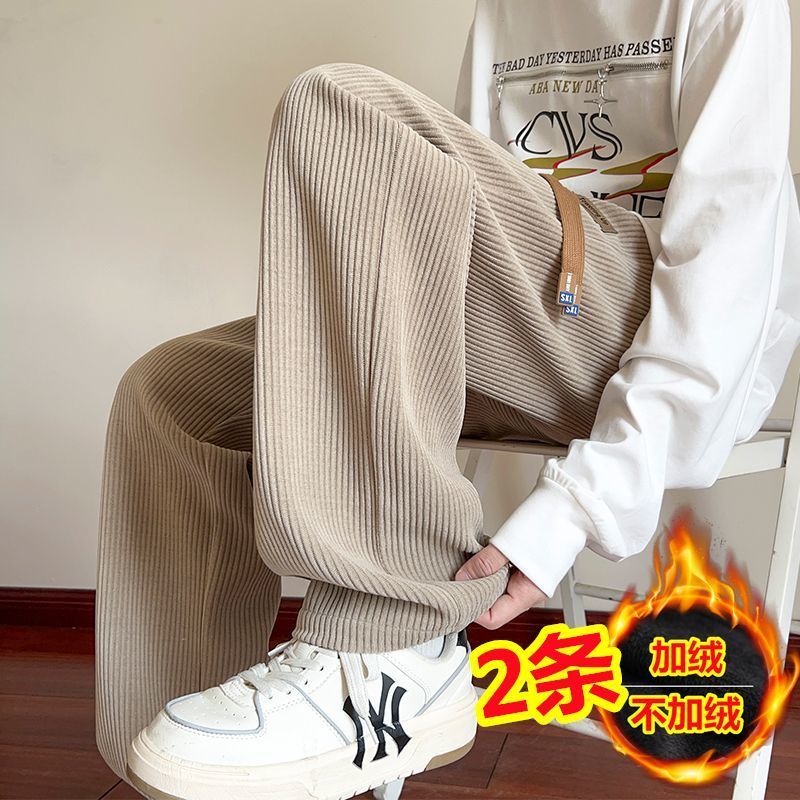 灯芯绒运动裤子男秋冬加绒阔腿休闲卫裤宽松直筒长裤春秋