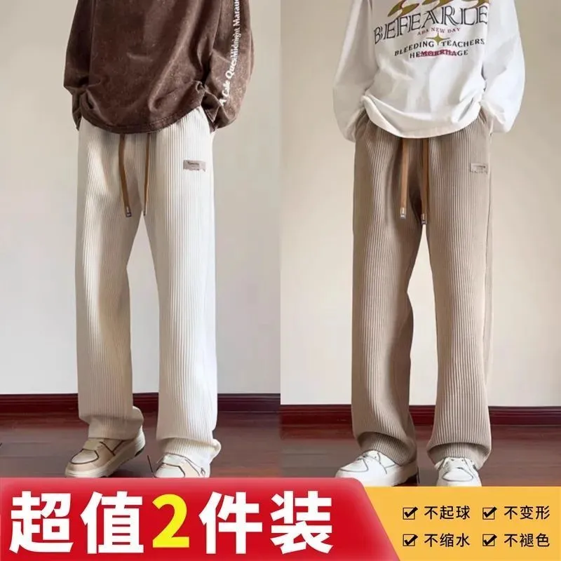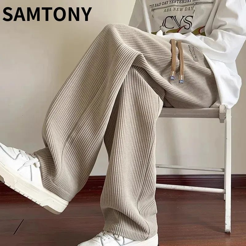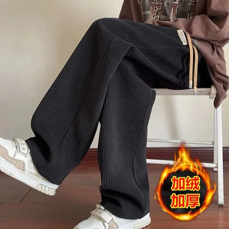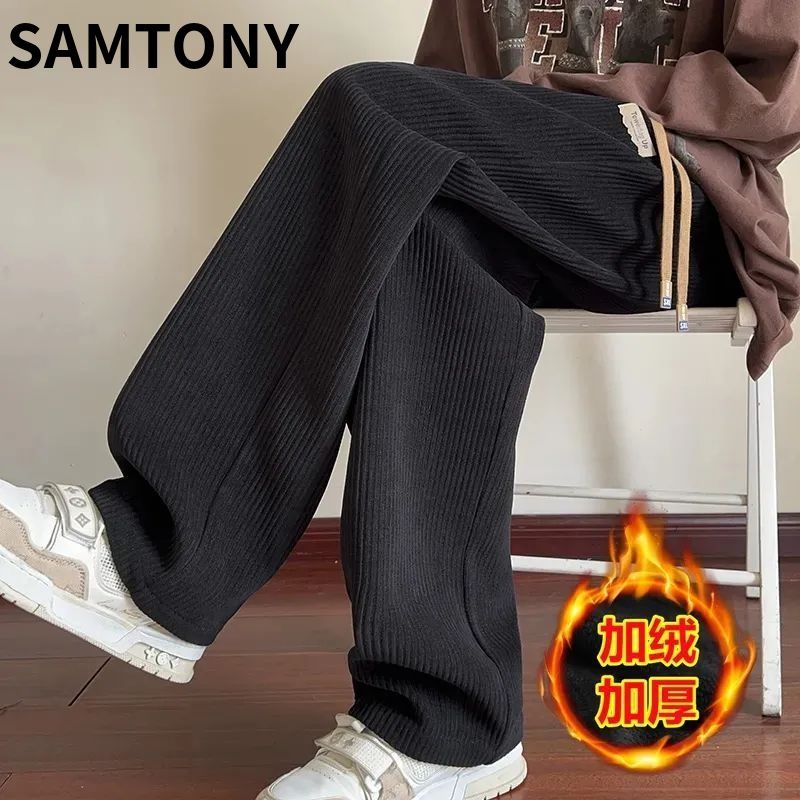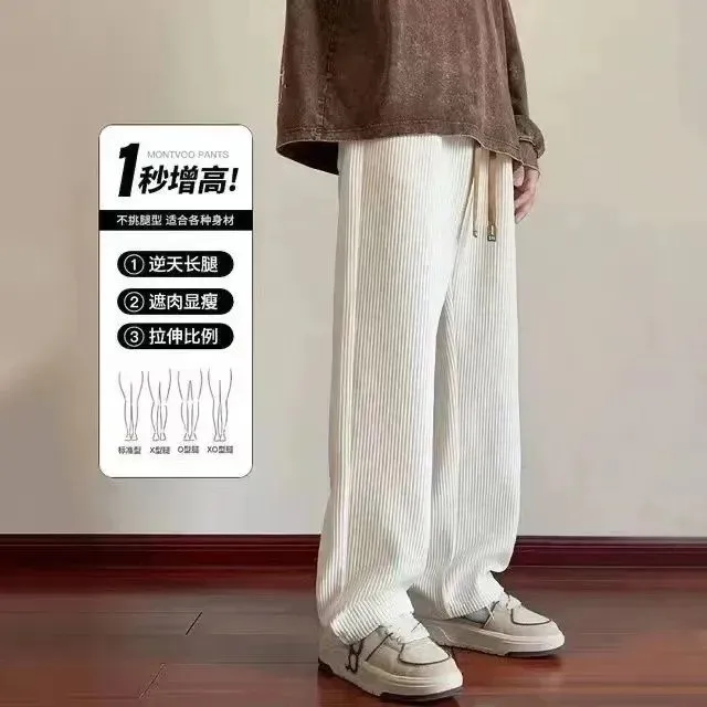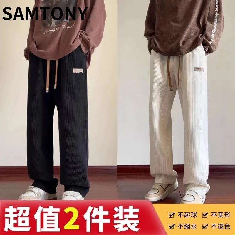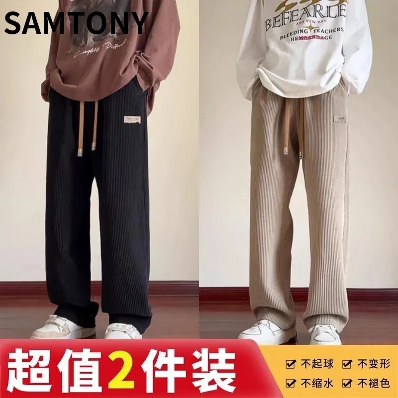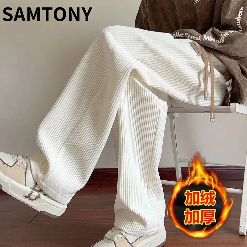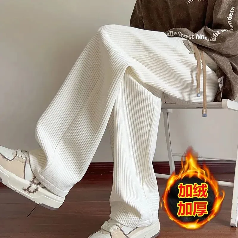 灯芯绒运动裤子男秋冬加绒阔腿休闲卫裤宽松直筒长裤春秋