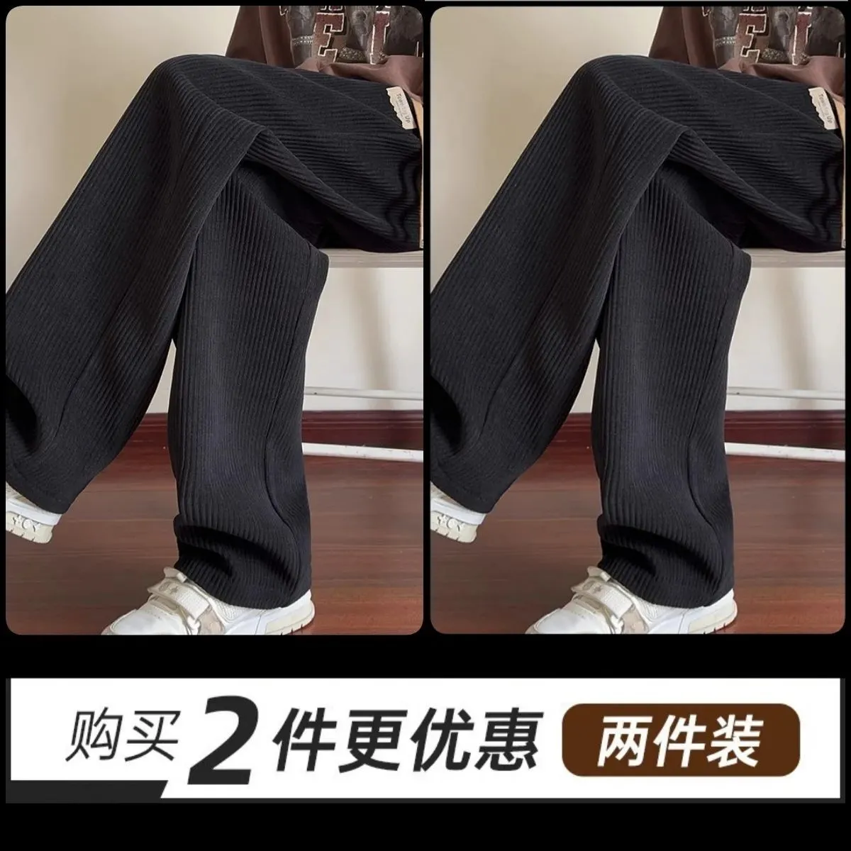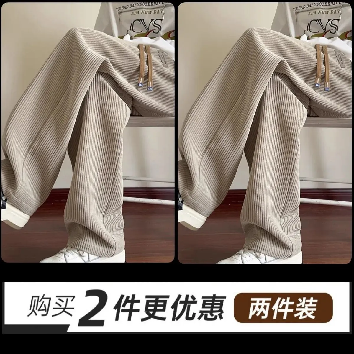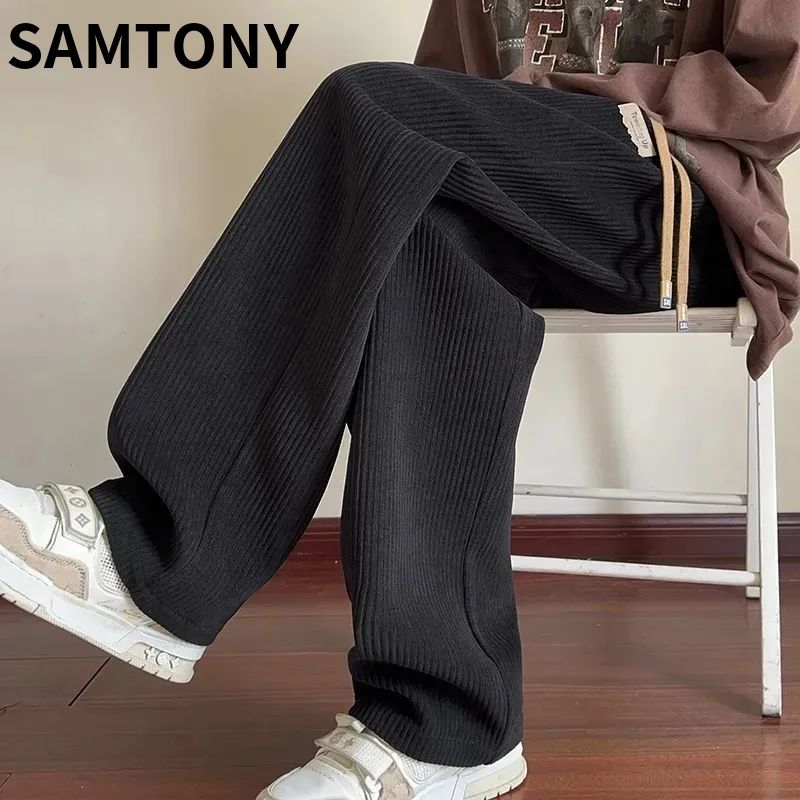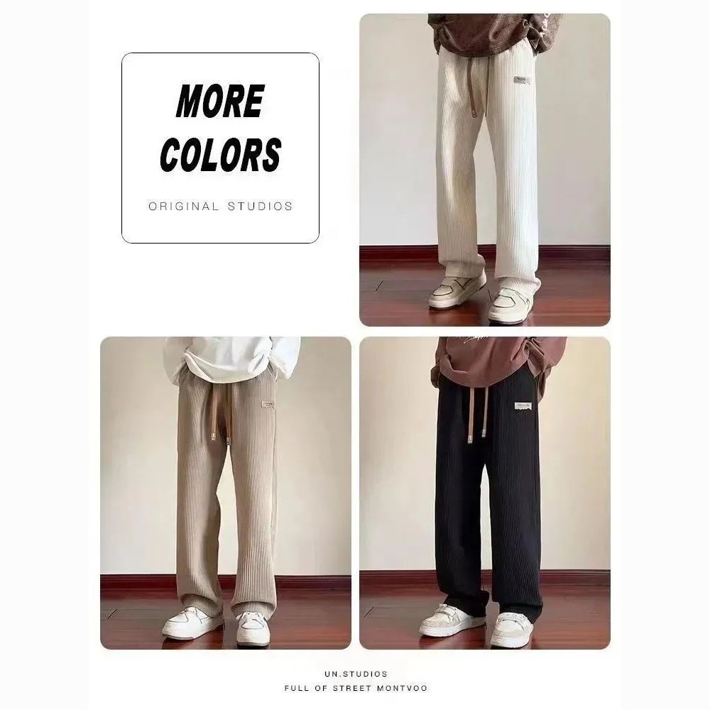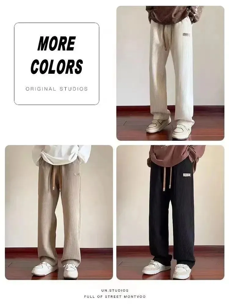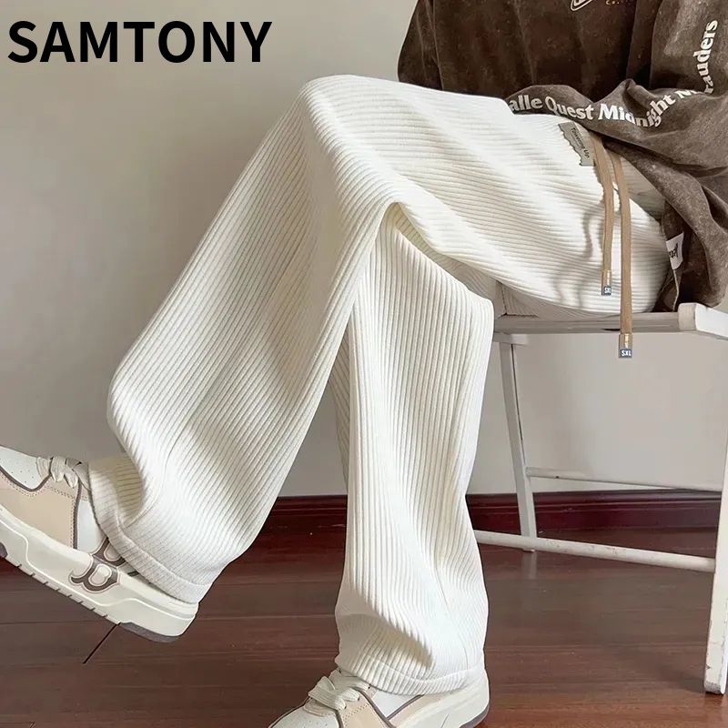 灯芯绒运动裤子男秋冬加绒阔腿休闲卫裤宽松直筒长裤春秋