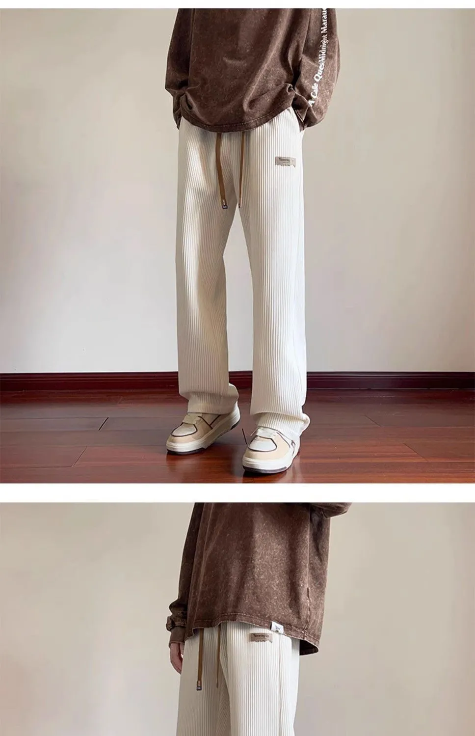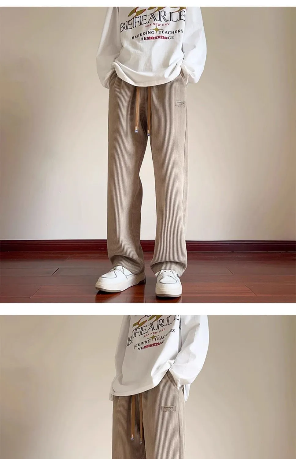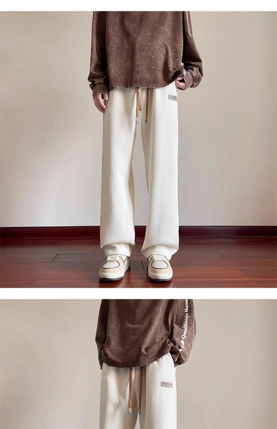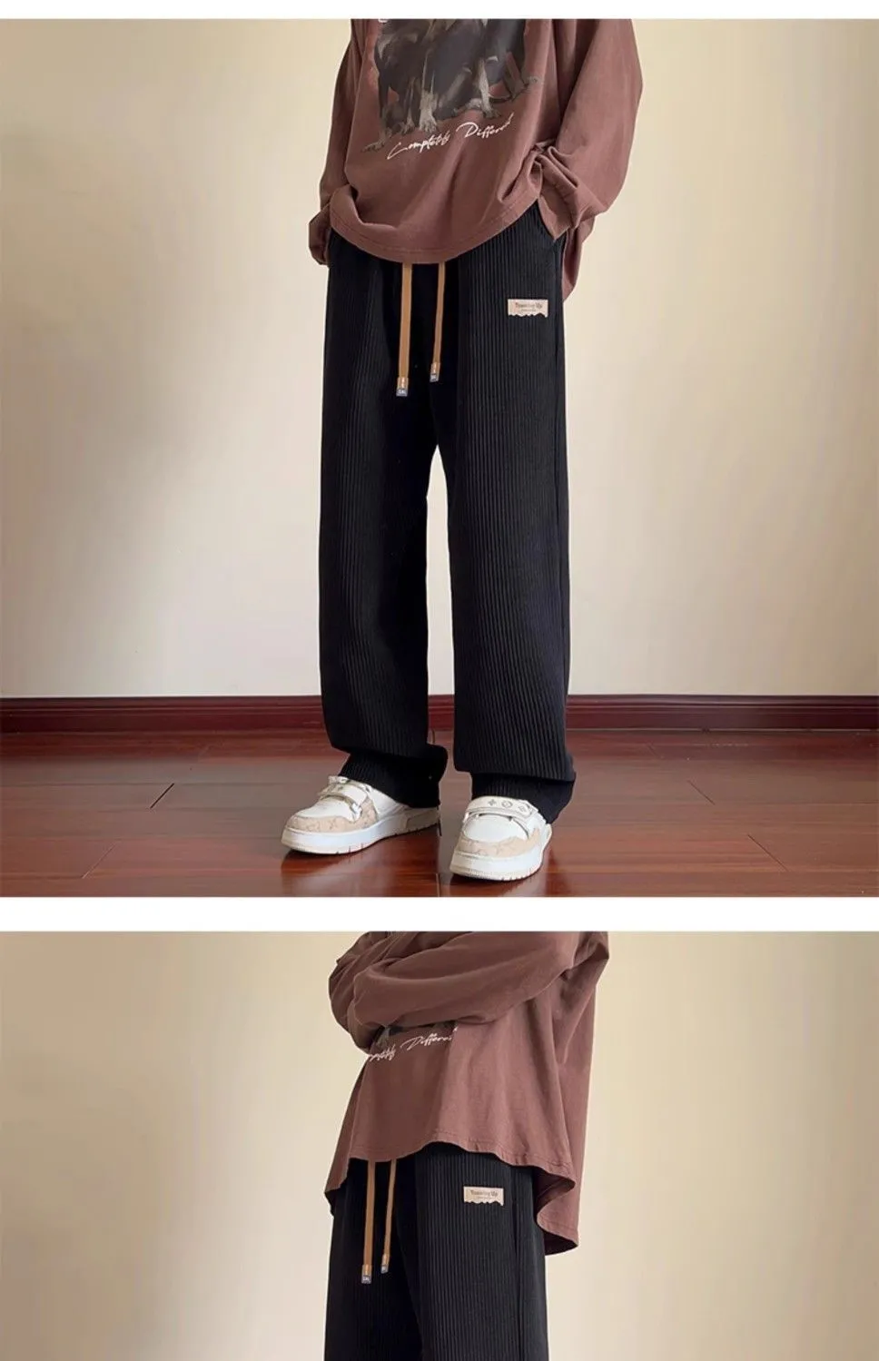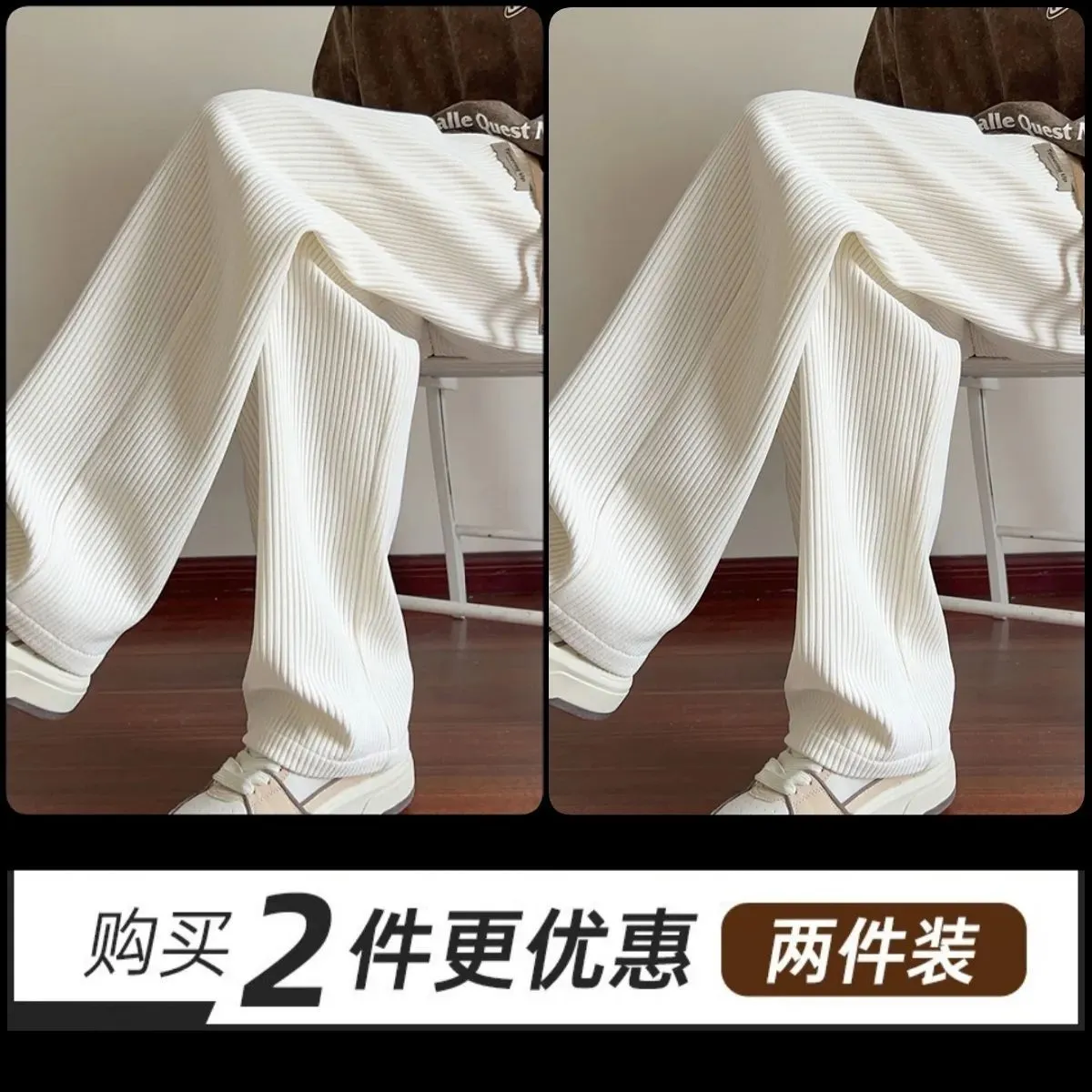 灯芯绒运动裤子男秋冬加绒阔腿休闲卫裤宽松直筒长裤春秋