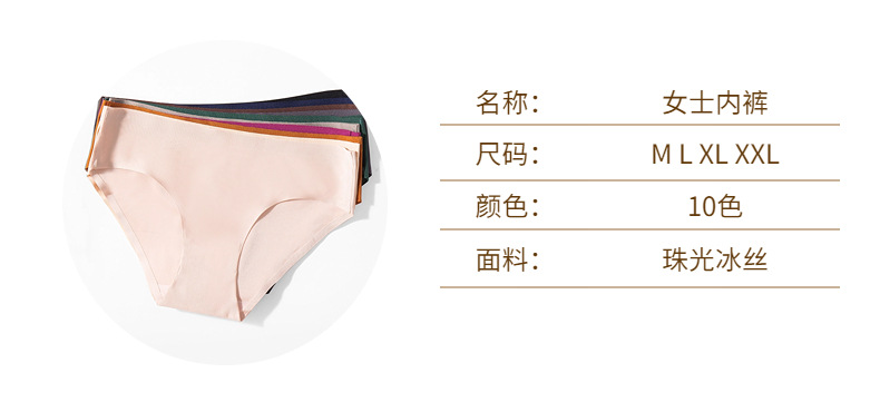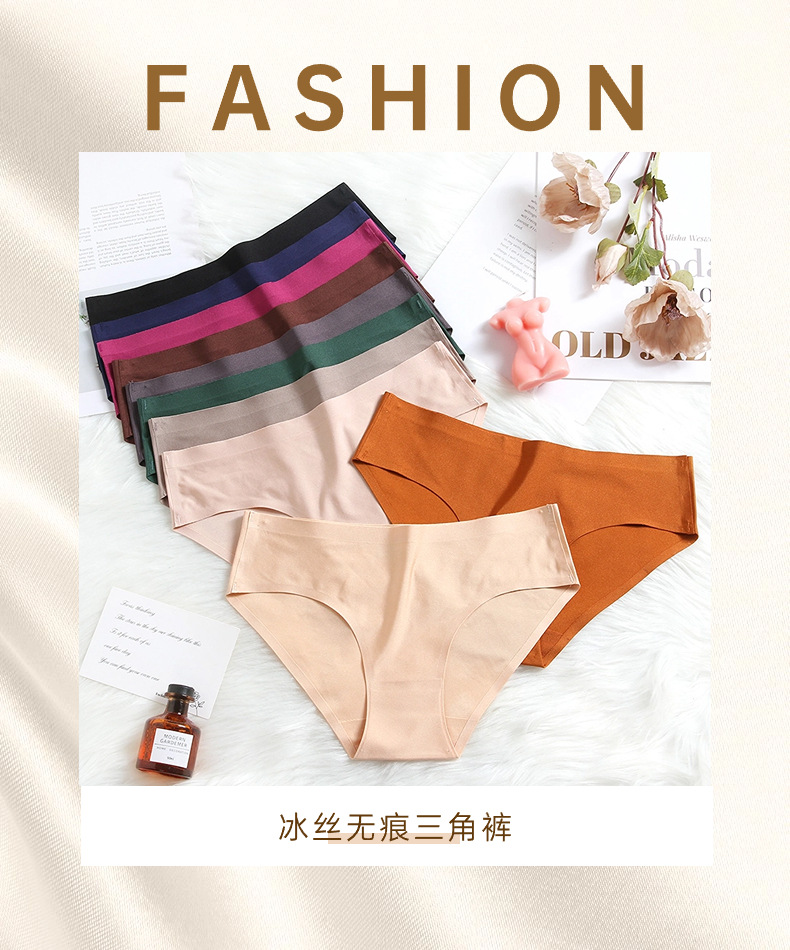 跨境运动舒适女士三角裤珠光冰丝无痕内裤女透气简约裤头欧美新款
