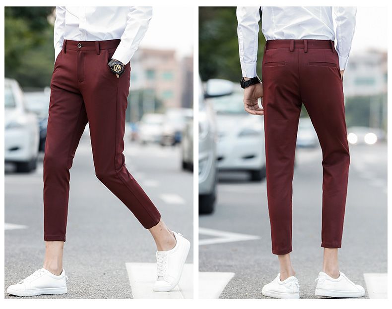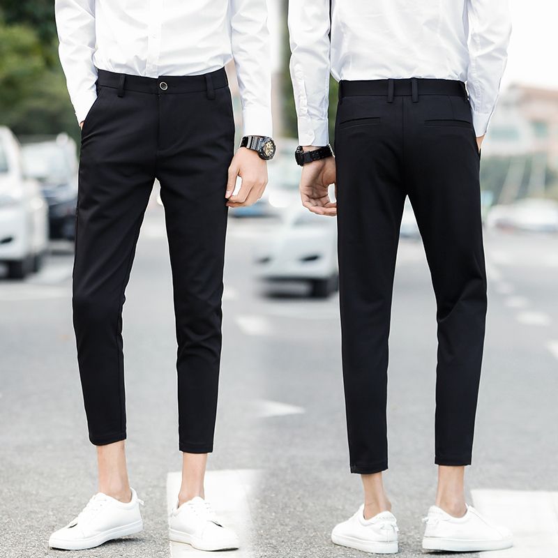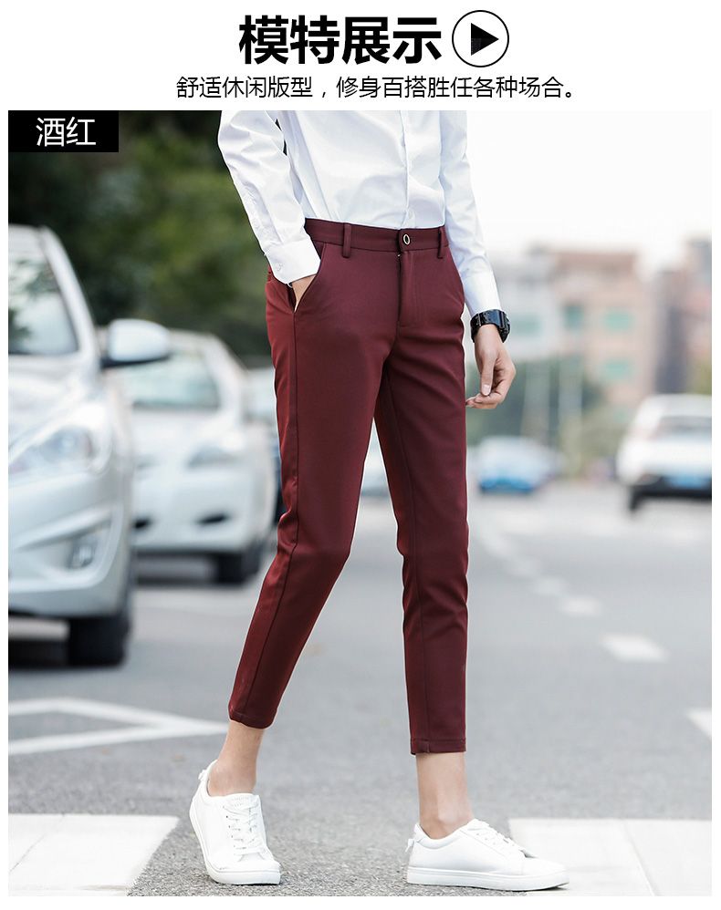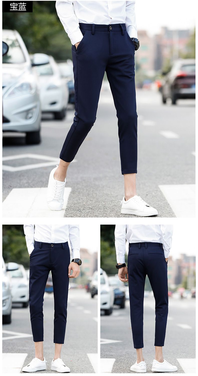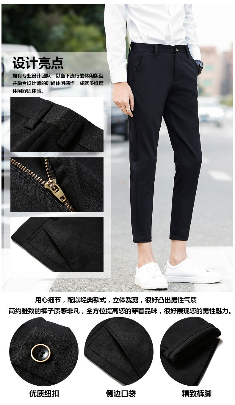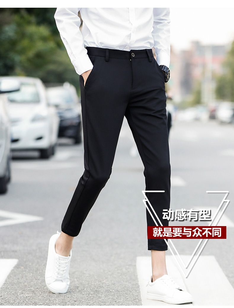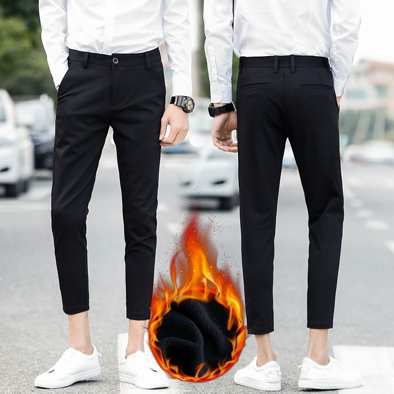 秋冬季九分裤男士休闲裤小脚修身西裤长裤子男款学生韩版西装裤厚