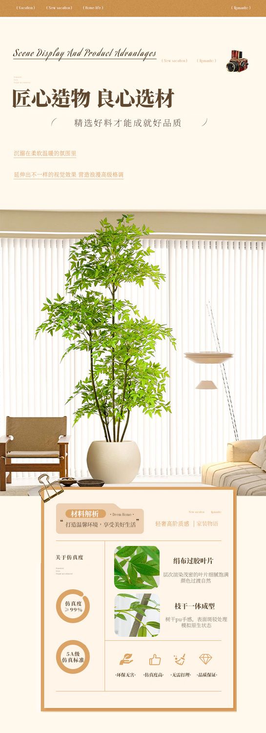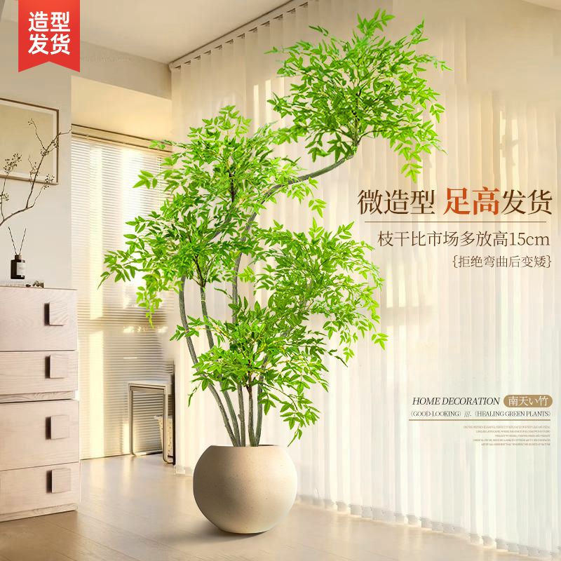 南天竹仿真绿植高端轻奢室内大型落地盆栽客厅装饰摆件仿生假花树
