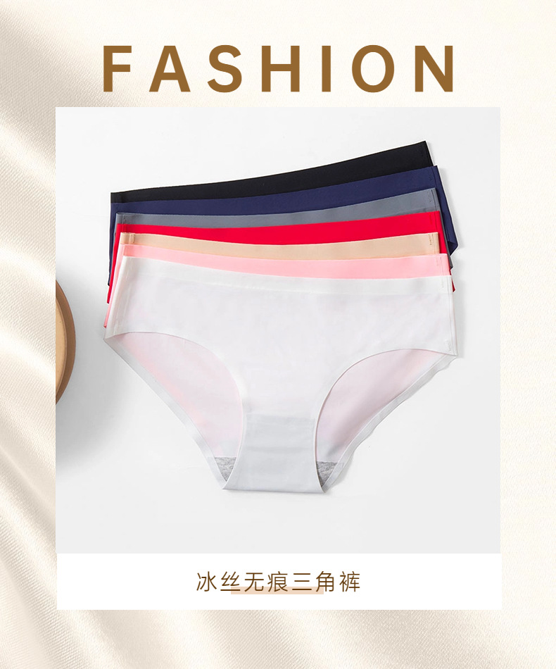 跨境冰丝无痕内裤女柔软舒适女式三角裤运动透气大码裤头简约爆款